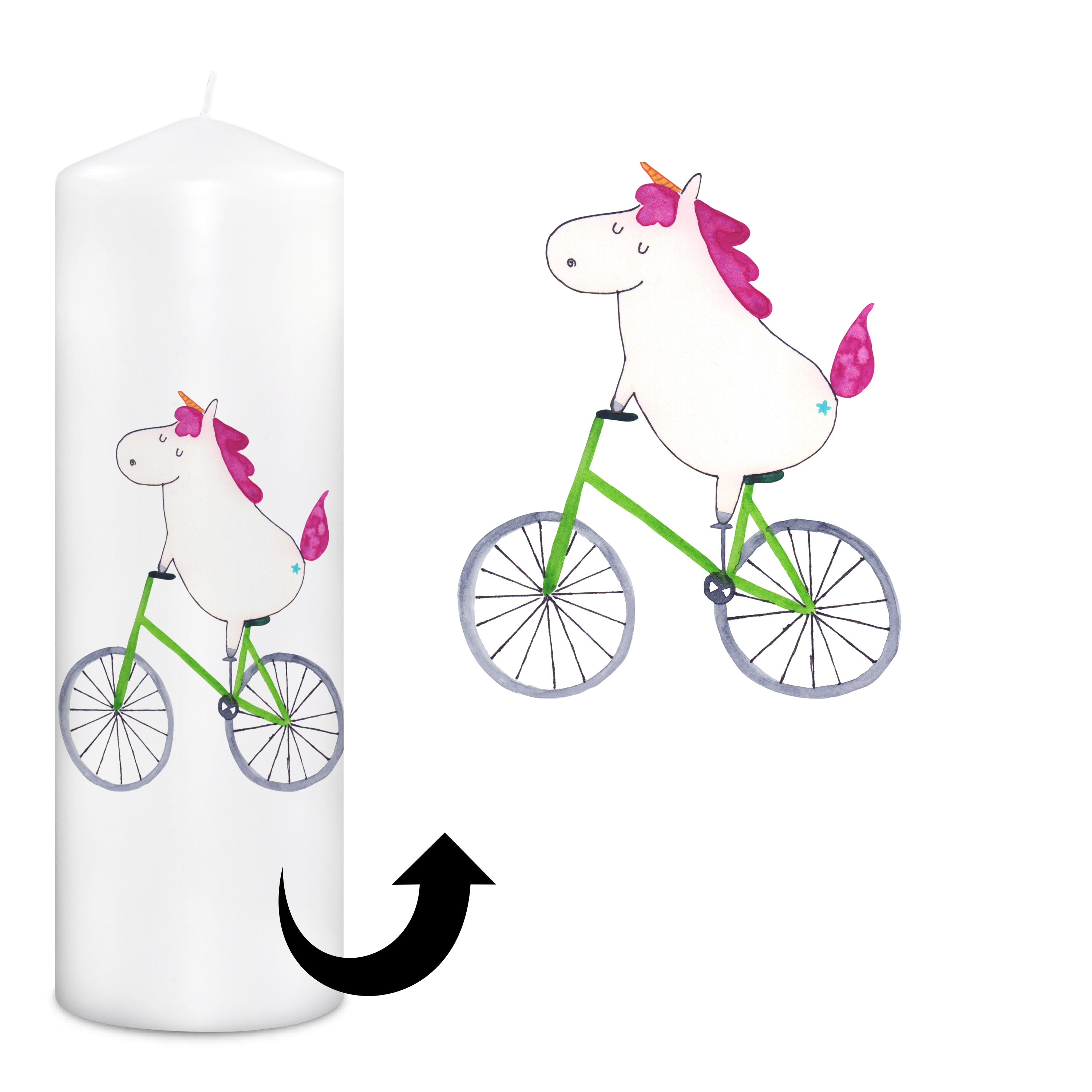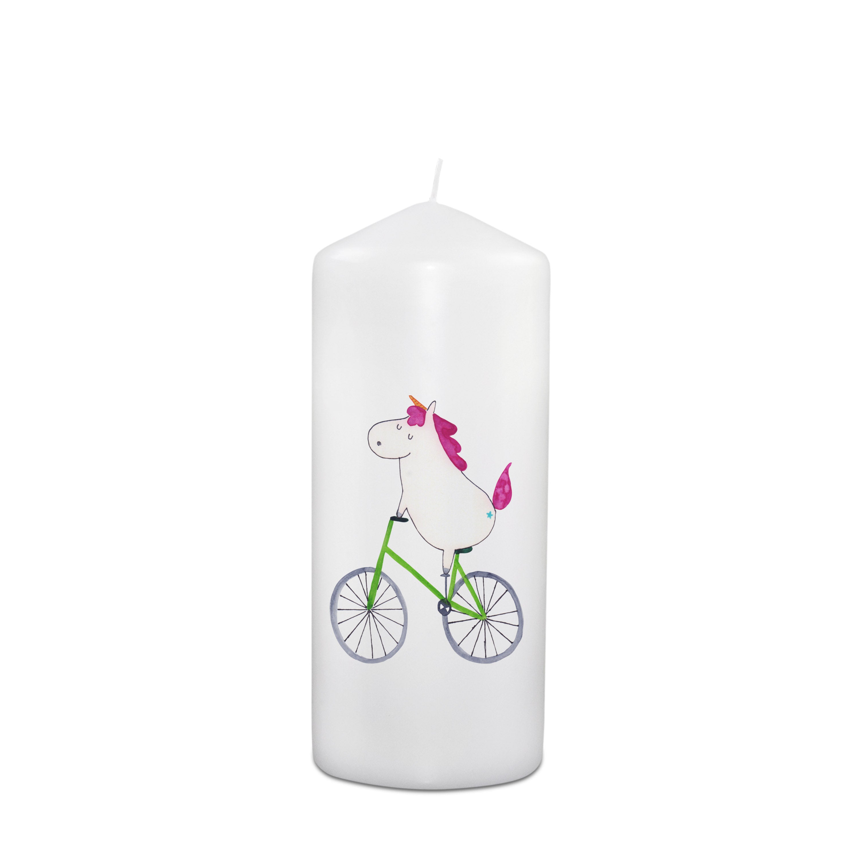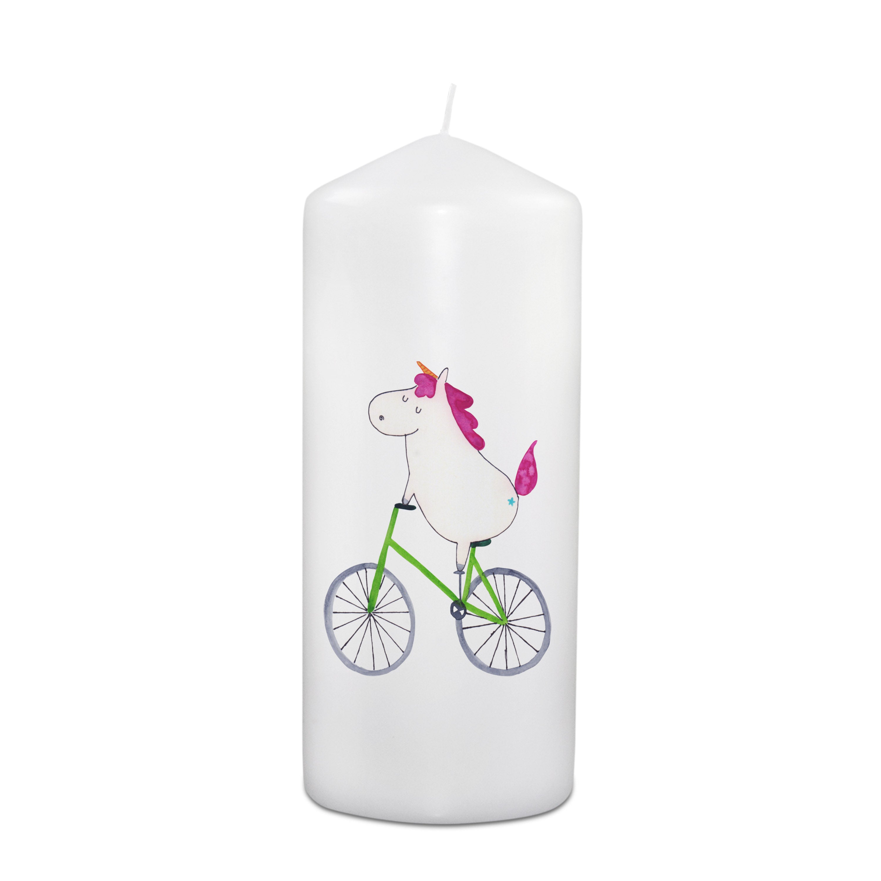 Kerze Einhorn Radfahrer - 15 x 7 cm - mit Spruch