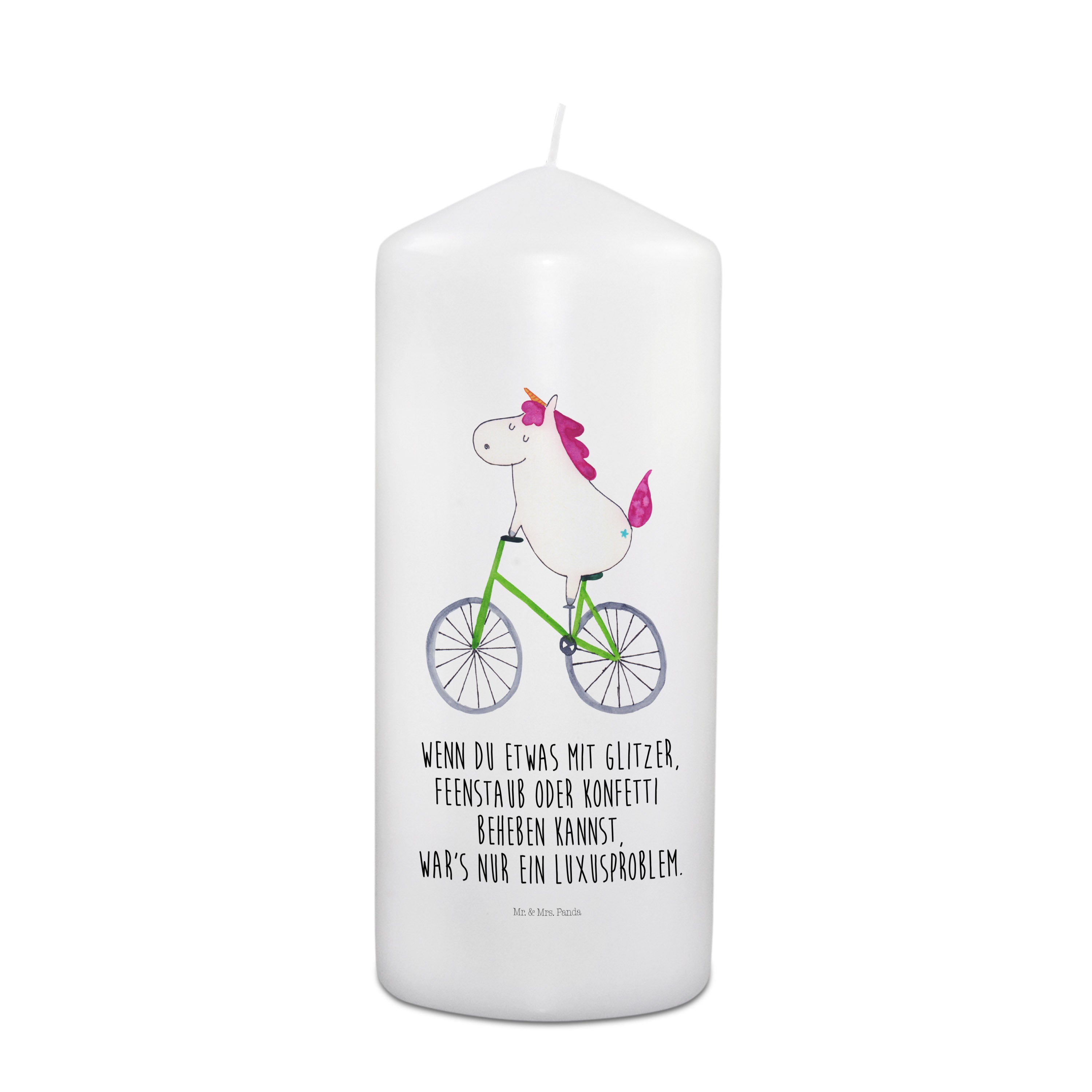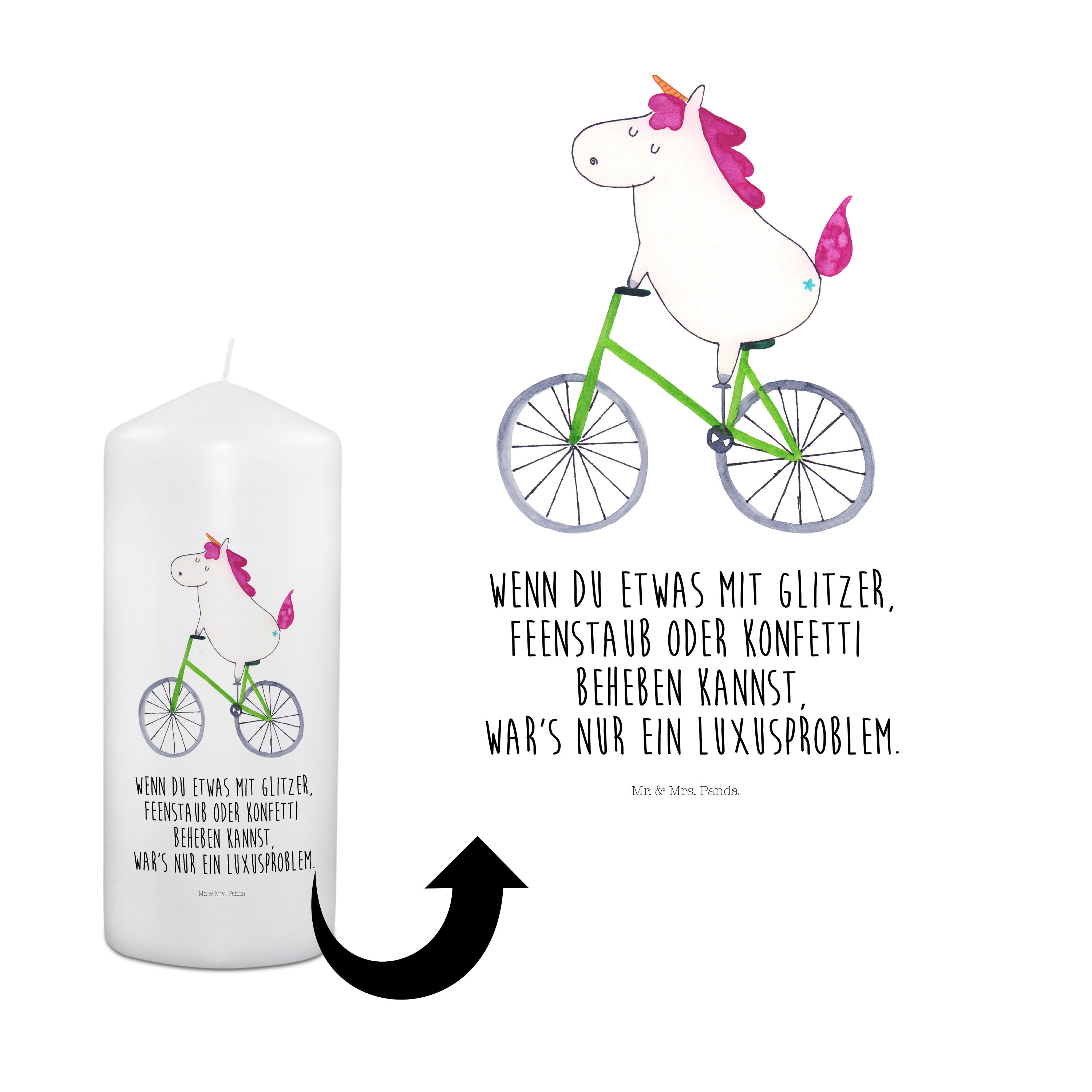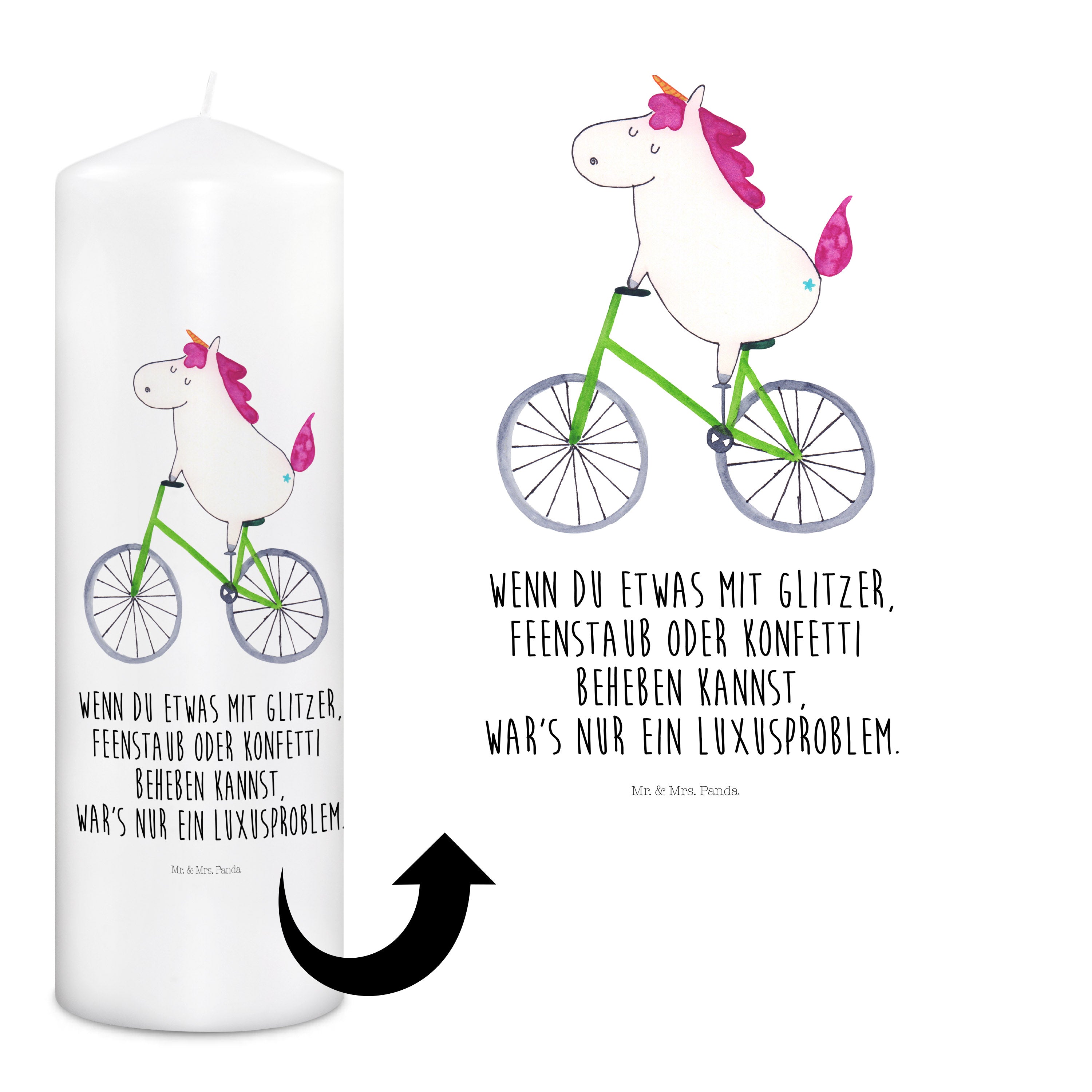 Kerze Einhorn Radfahrer - 15 x 7 cm - mit Spruch