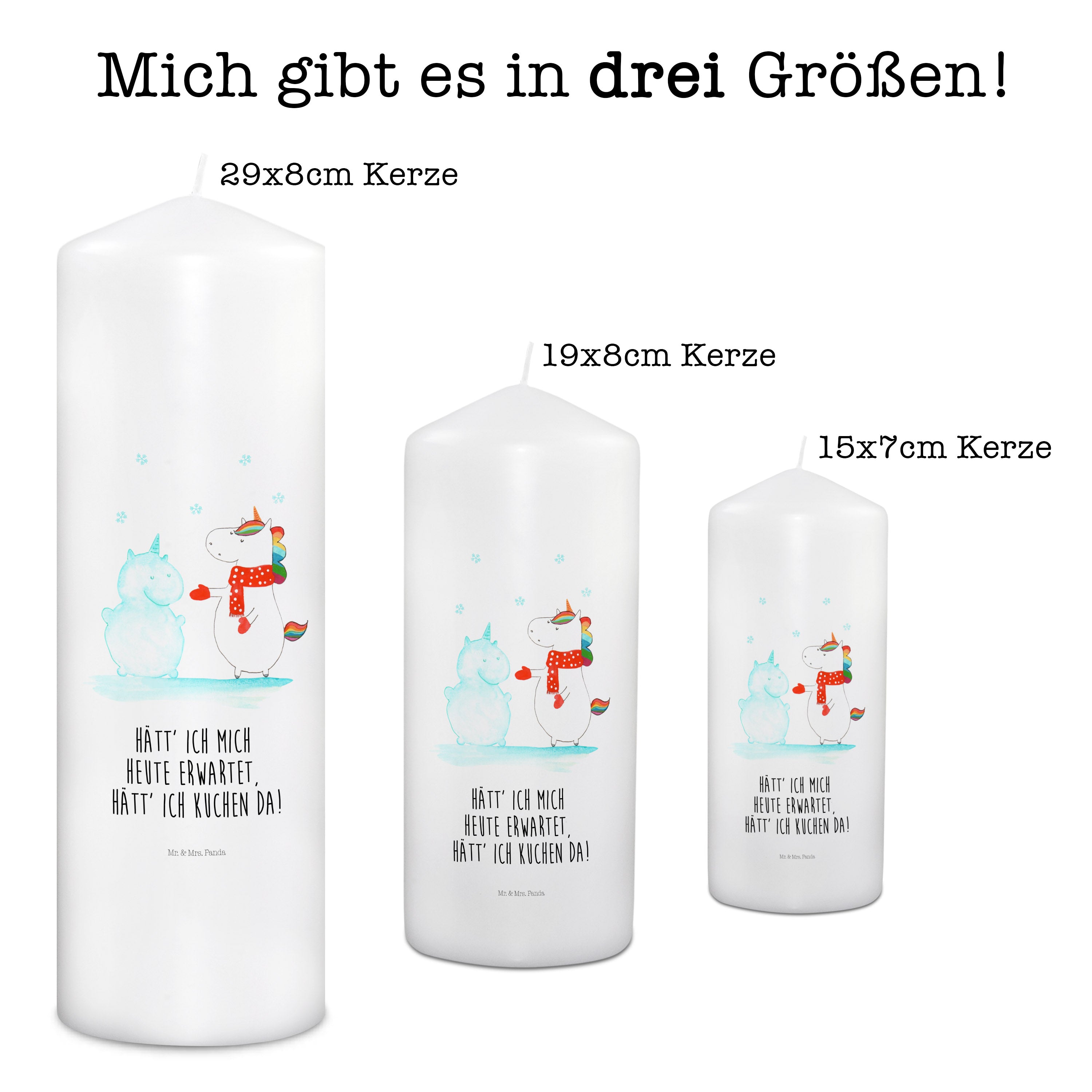 Kerze Einhorn Schneemann - 15 x 7 cm - mit Spruch