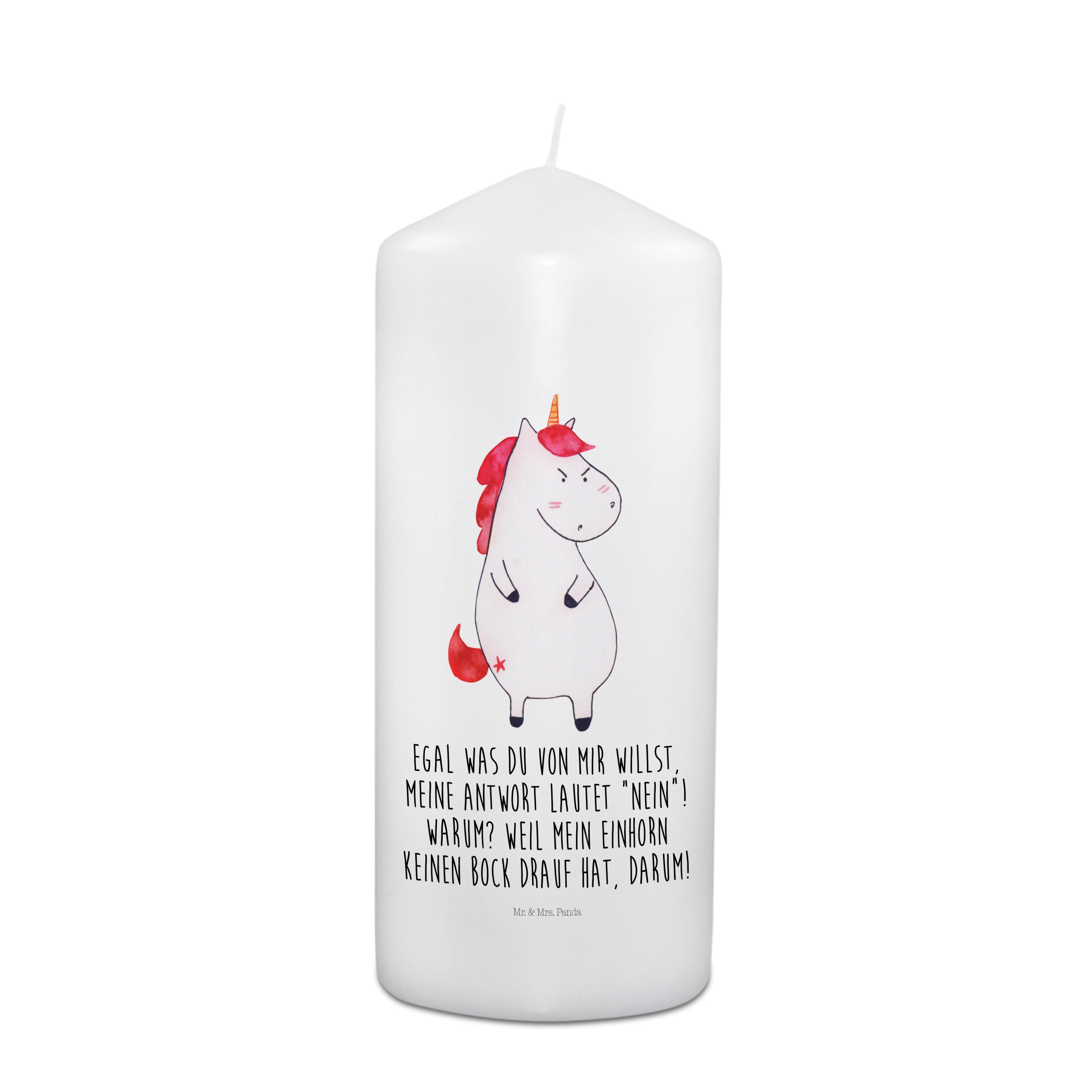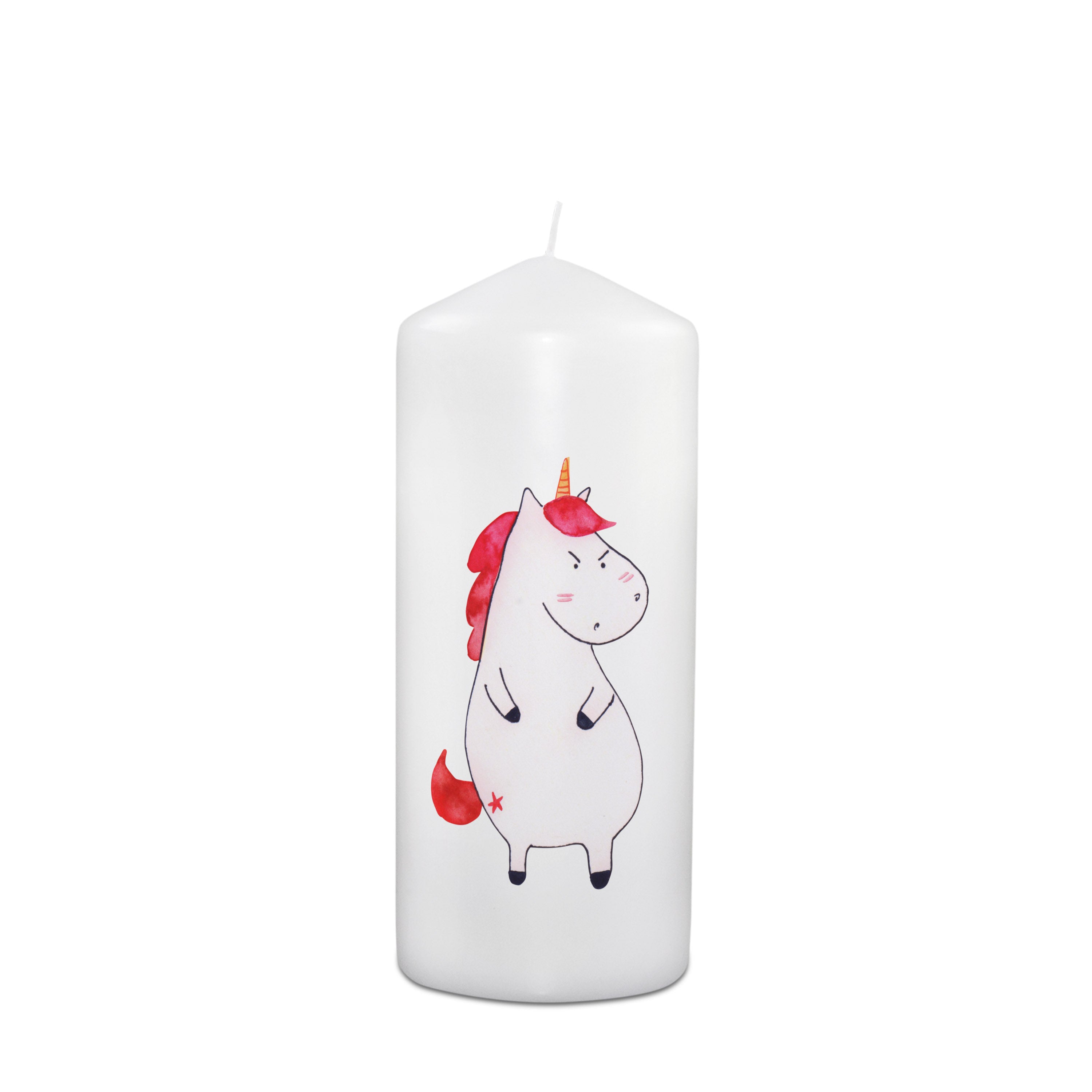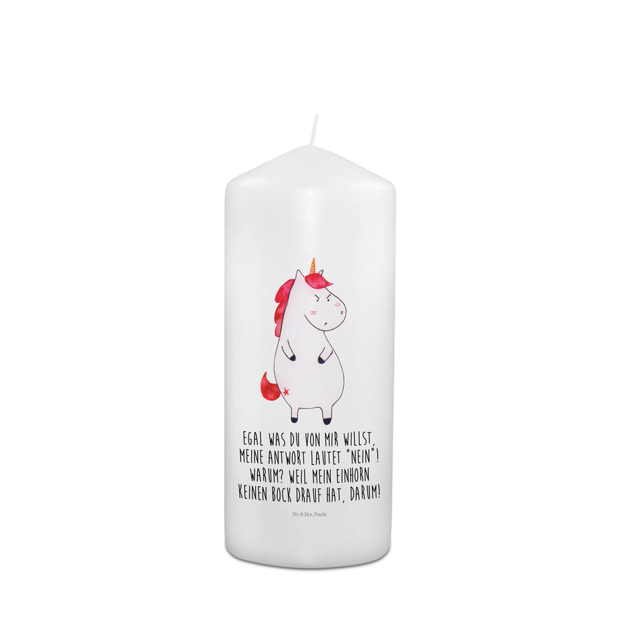Kerze Einhorn wütend - 15 x 7 cm - mit Spruch