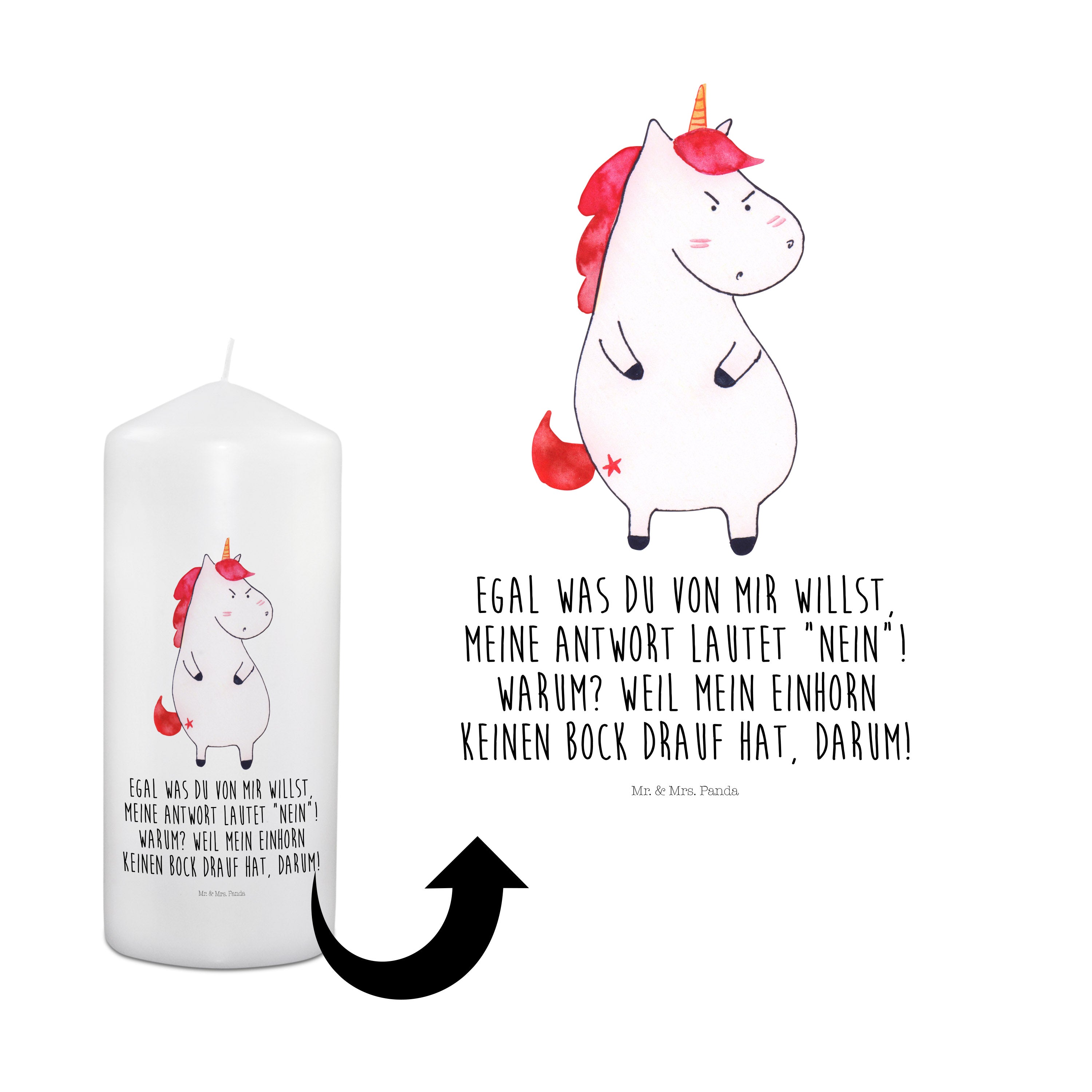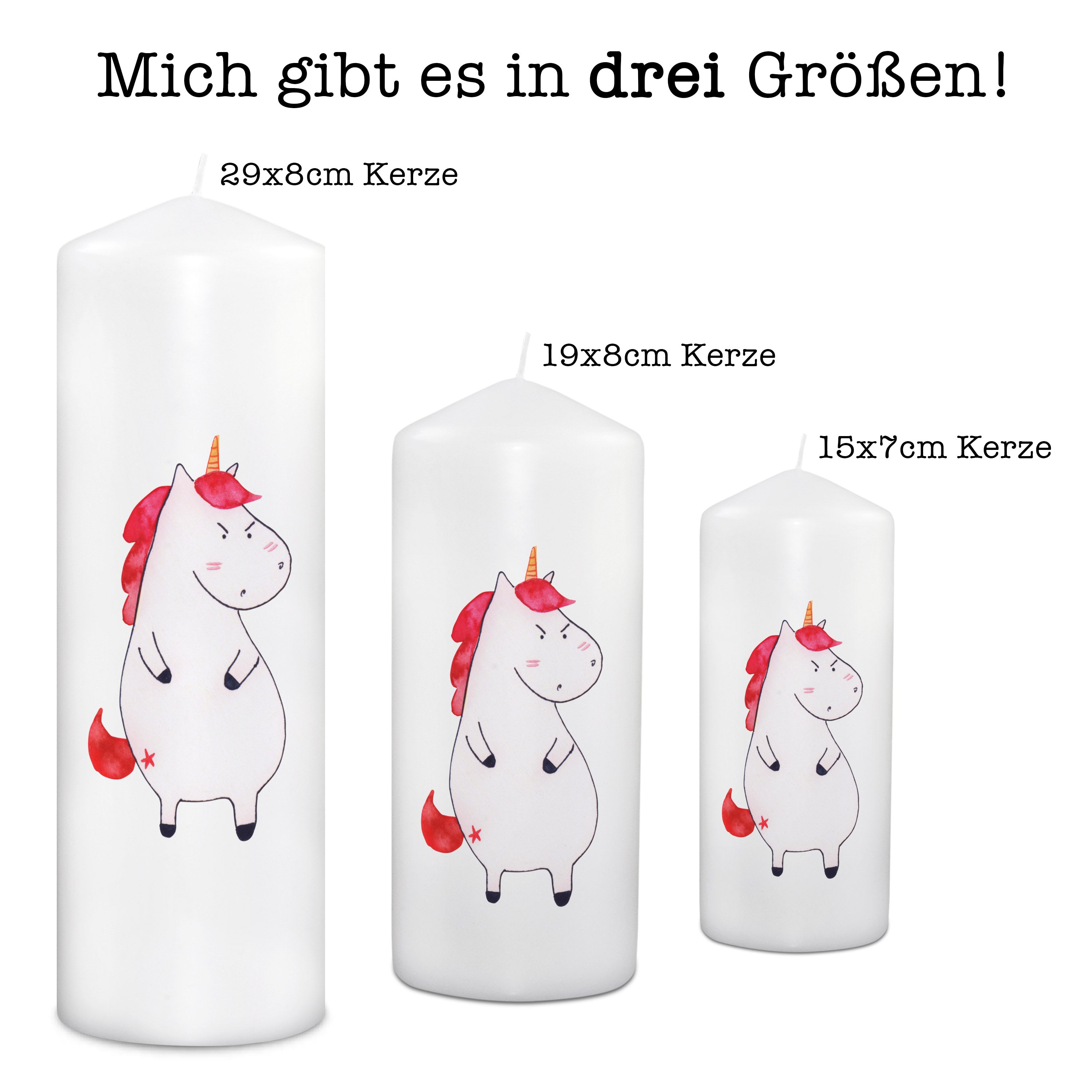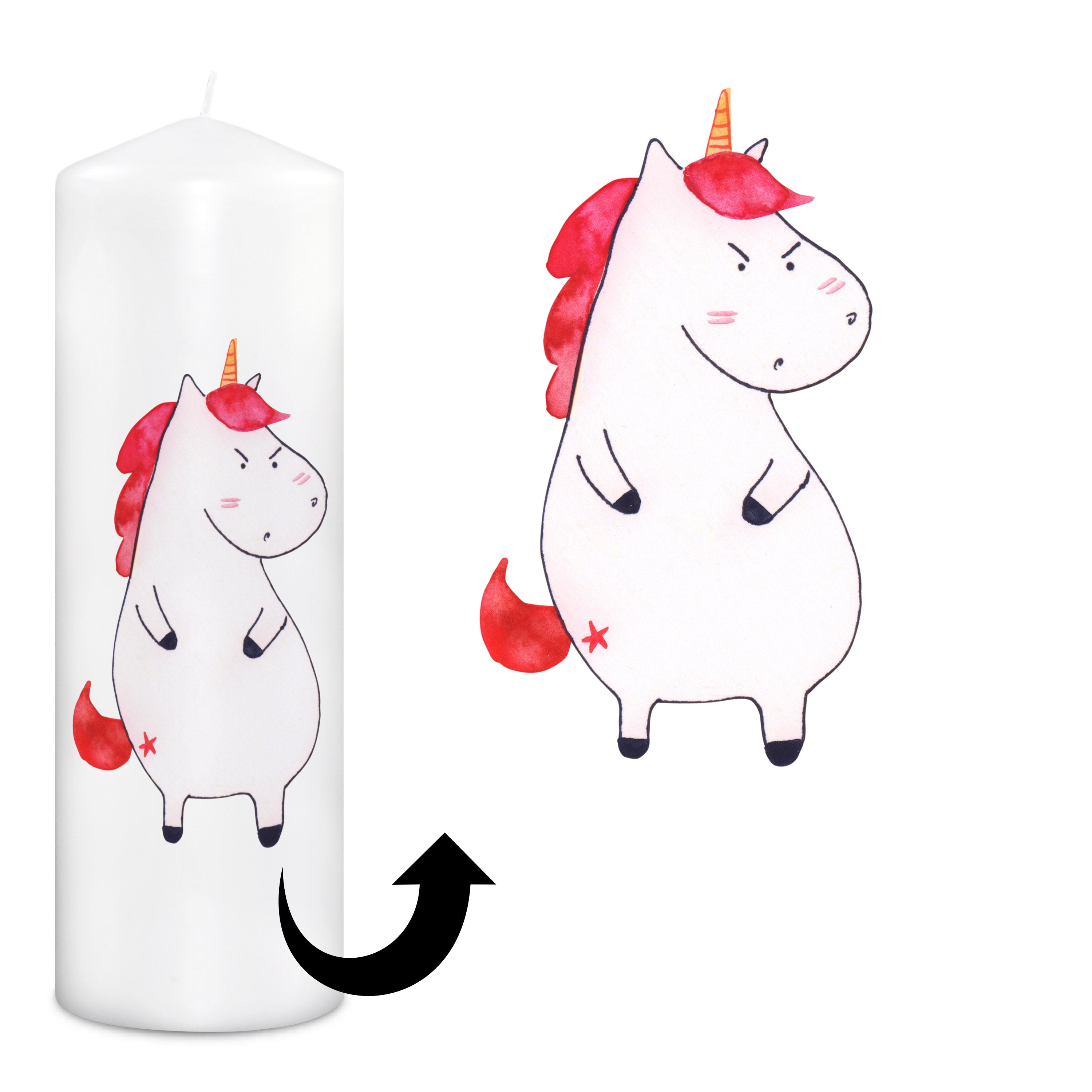 Kerze Einhorn wütend - 15 x 7 cm - mit Spruch