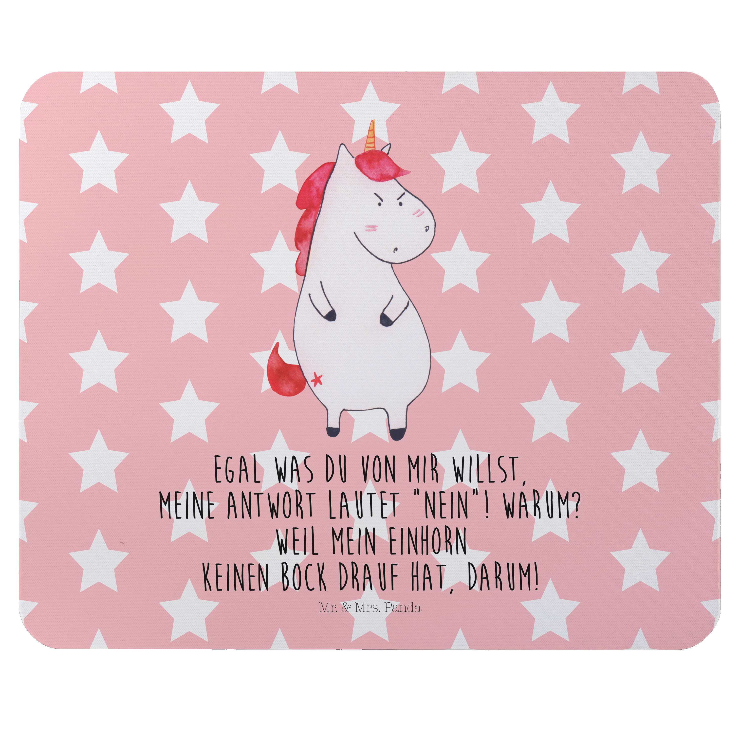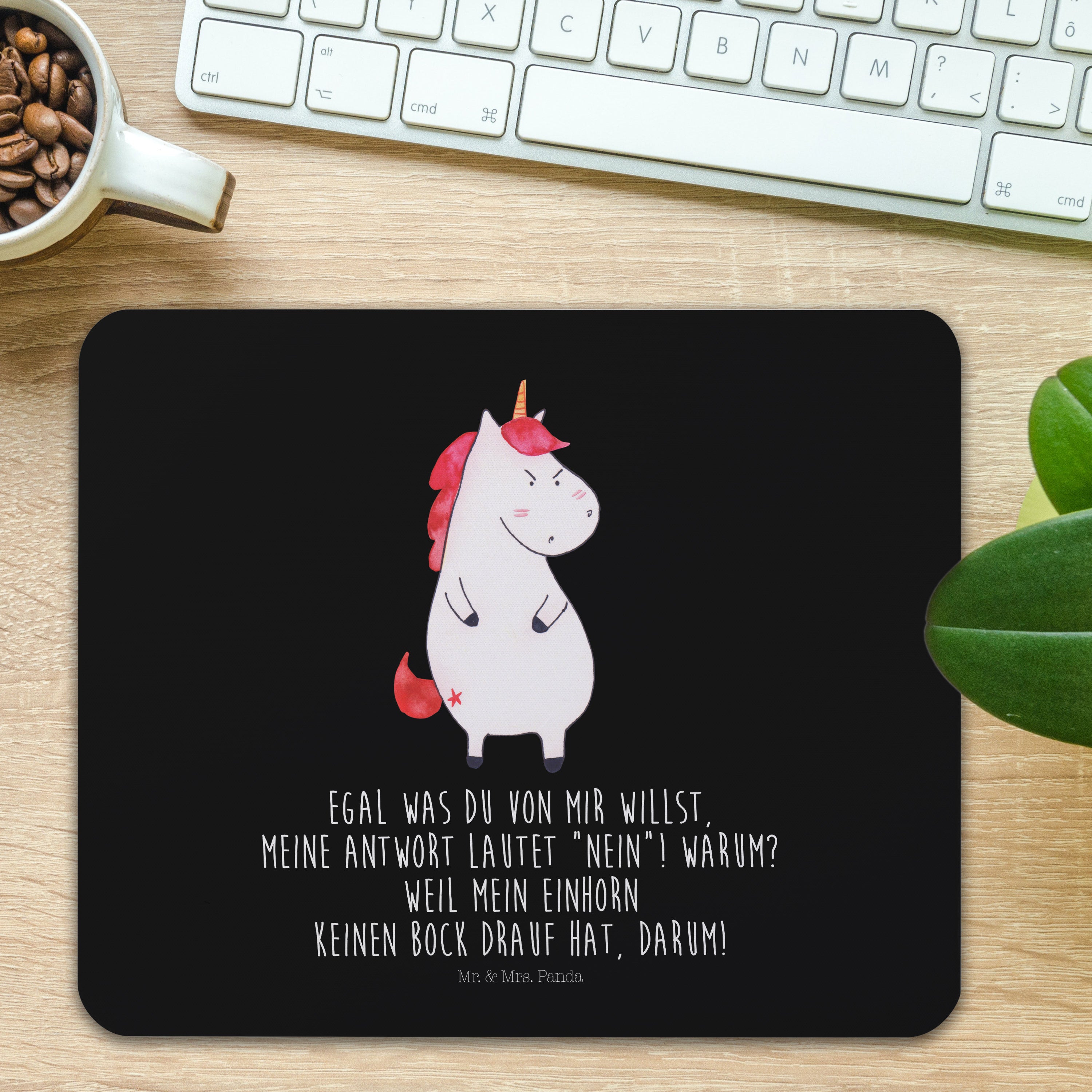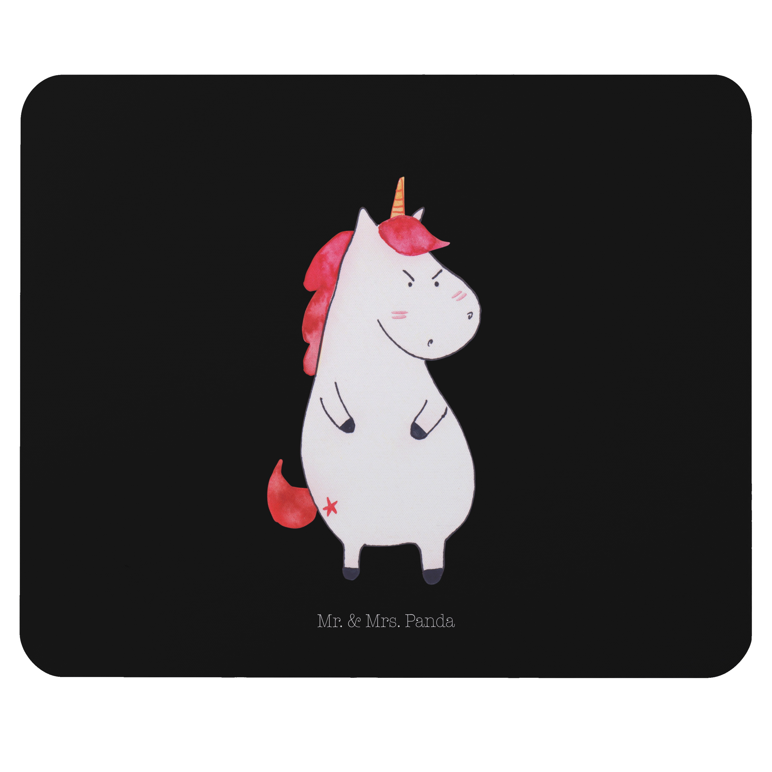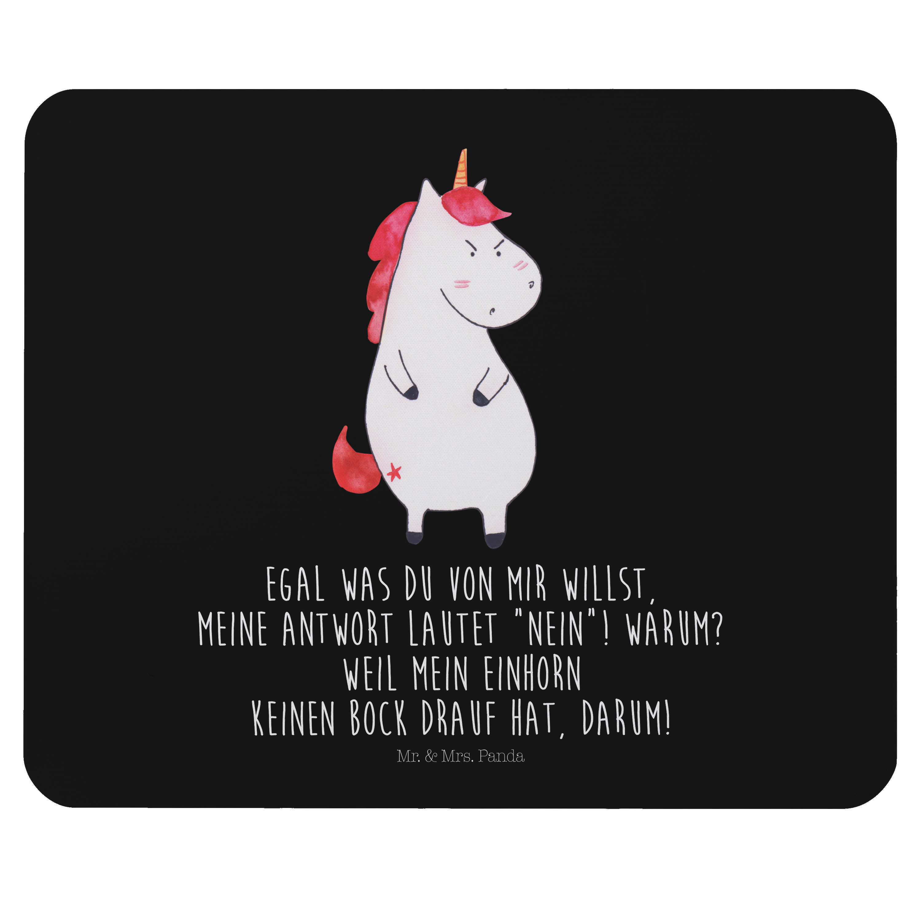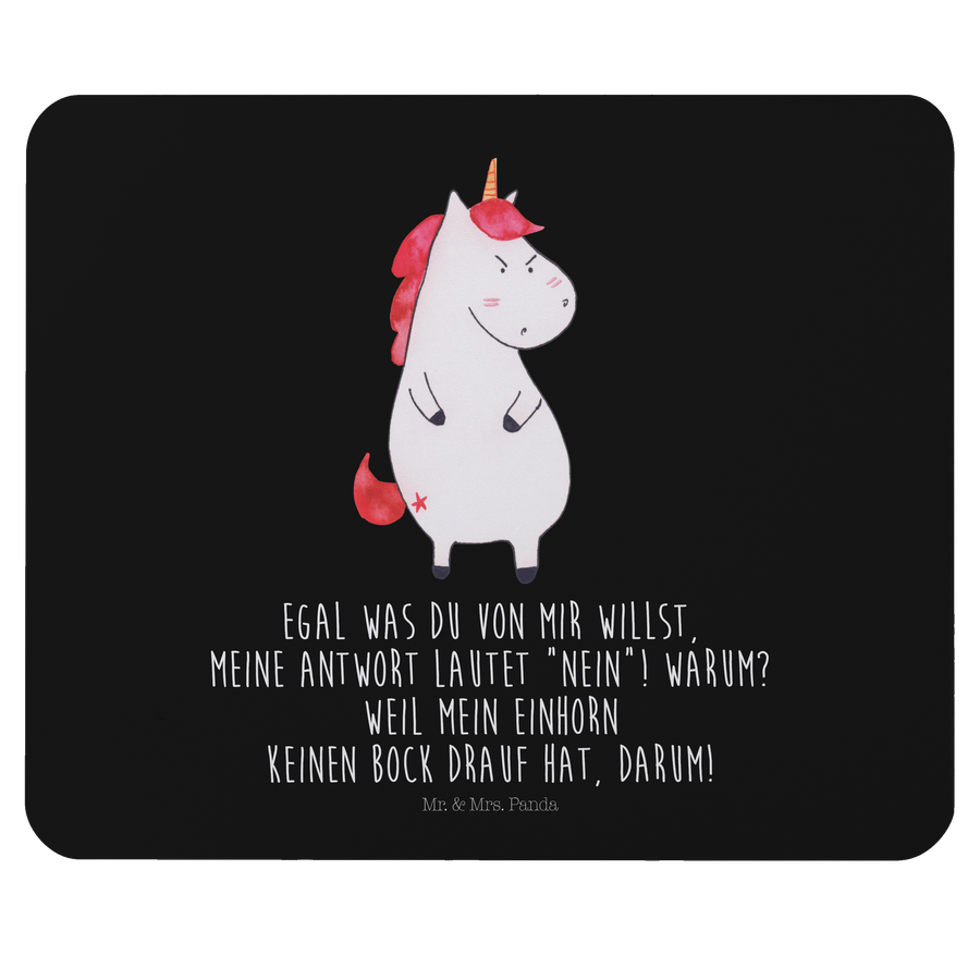 Mauspad Einhorn wütend - mit Spruch - Schwarz