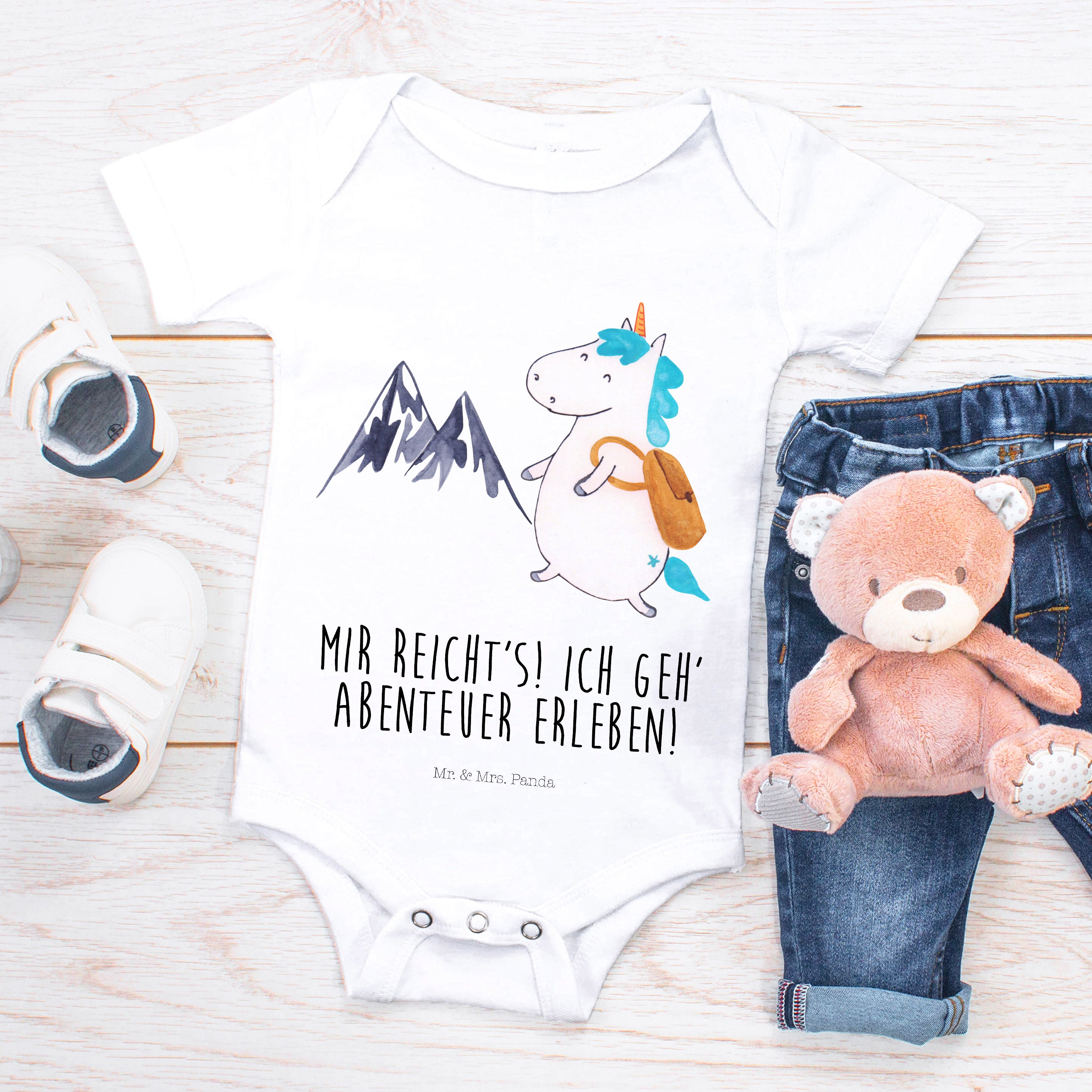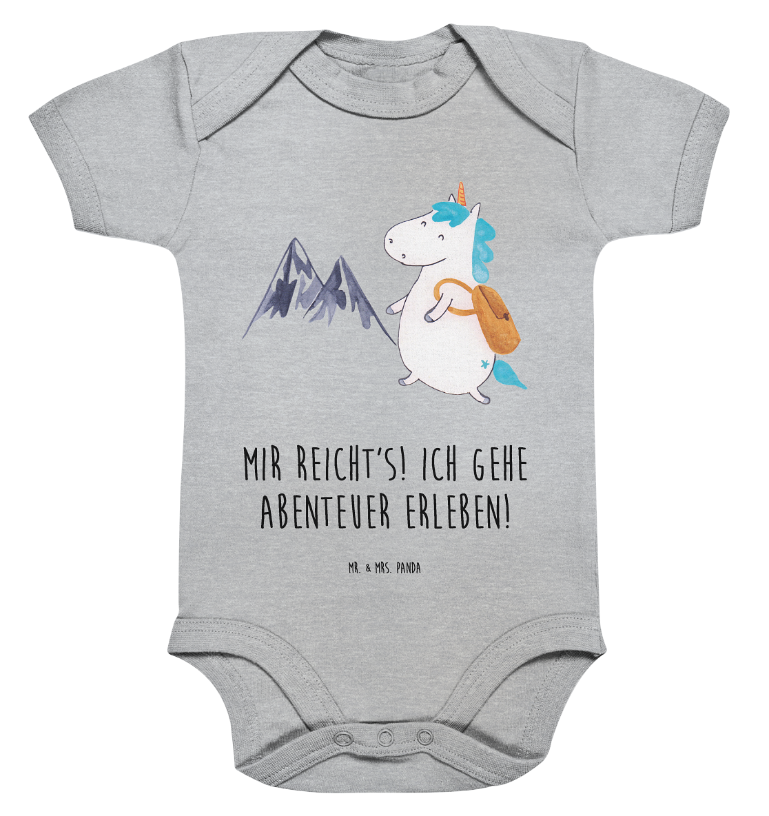 Organic Baby Body Einhorn Bergsteiger - 1. - 3. Monat - mit Spruch - Heather Grey