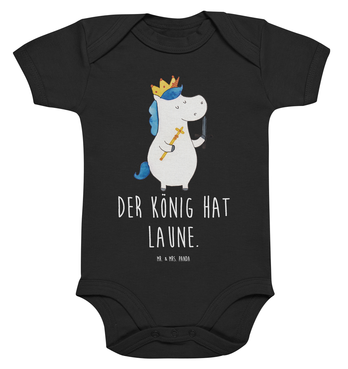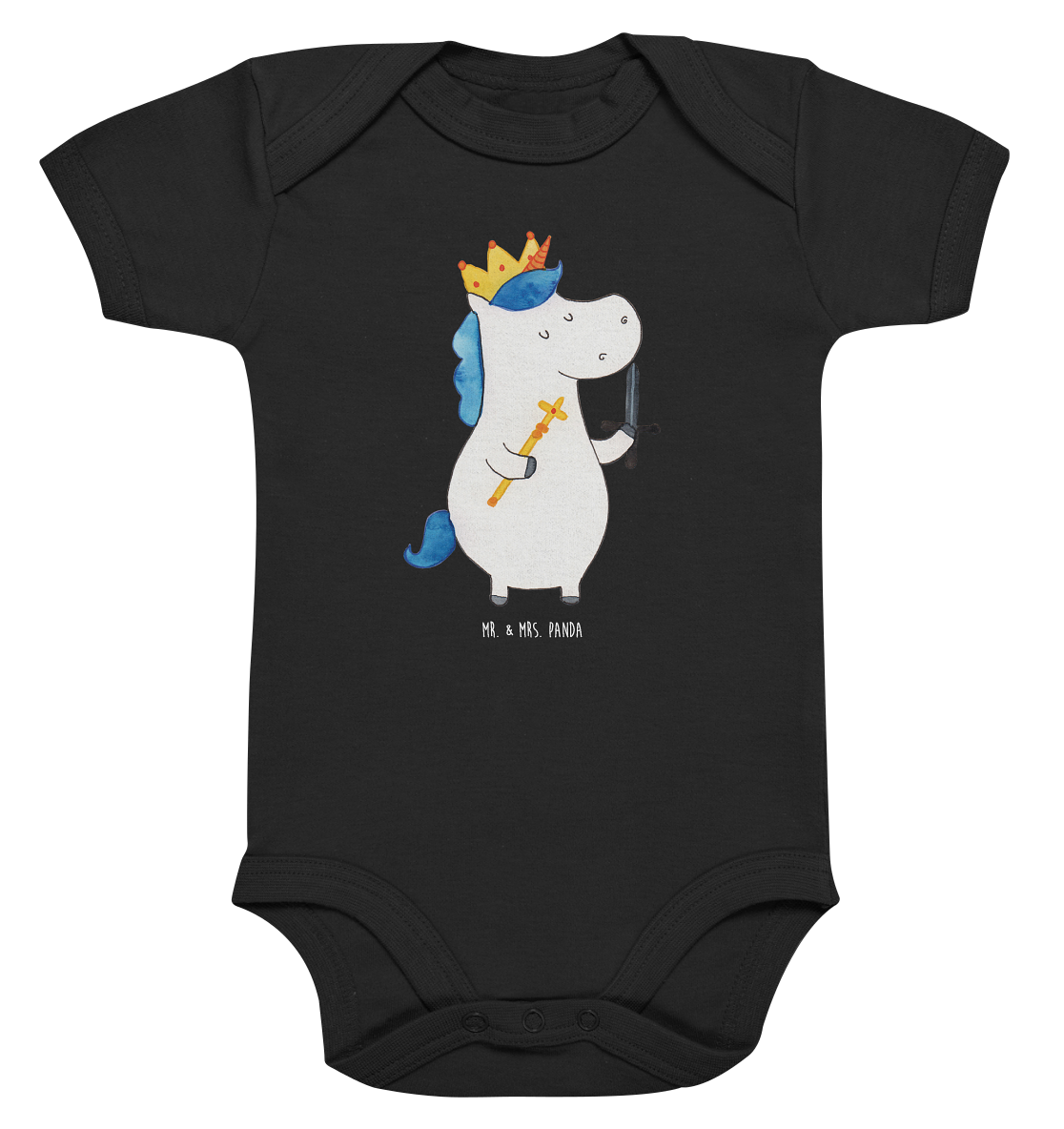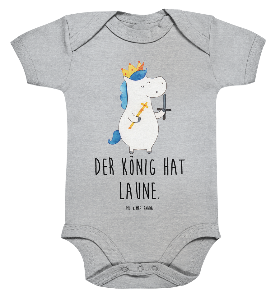 Organic Baby Body Einhorn König mit Schwert - 3. - 6. Monat - mit Spruch - Heather Grey