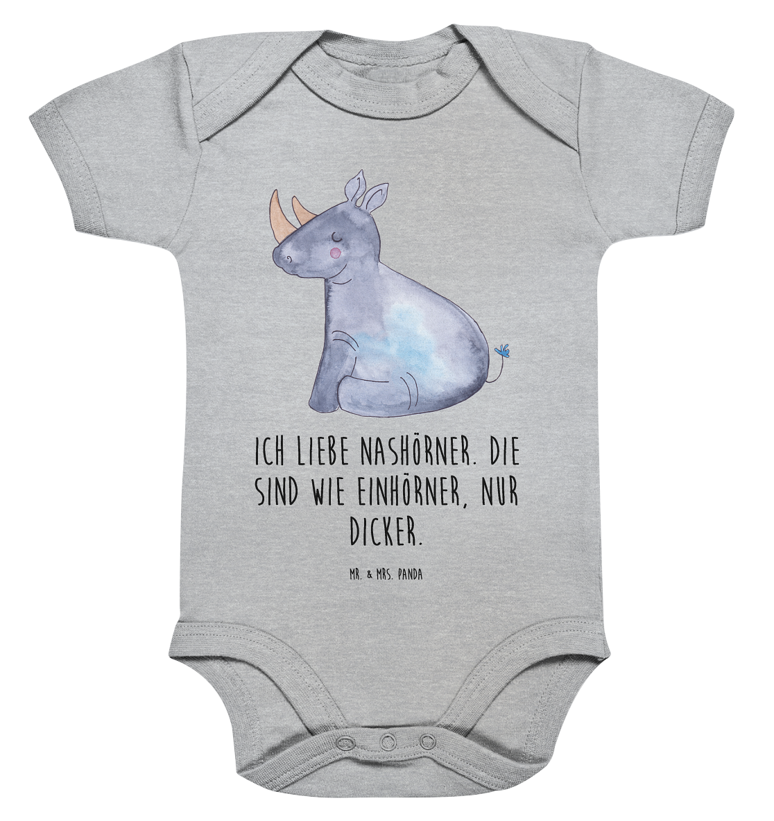 Organic Baby Body Einhorn Nashorn - 1. - 3. Monat - mit Spruch - Heather Grey