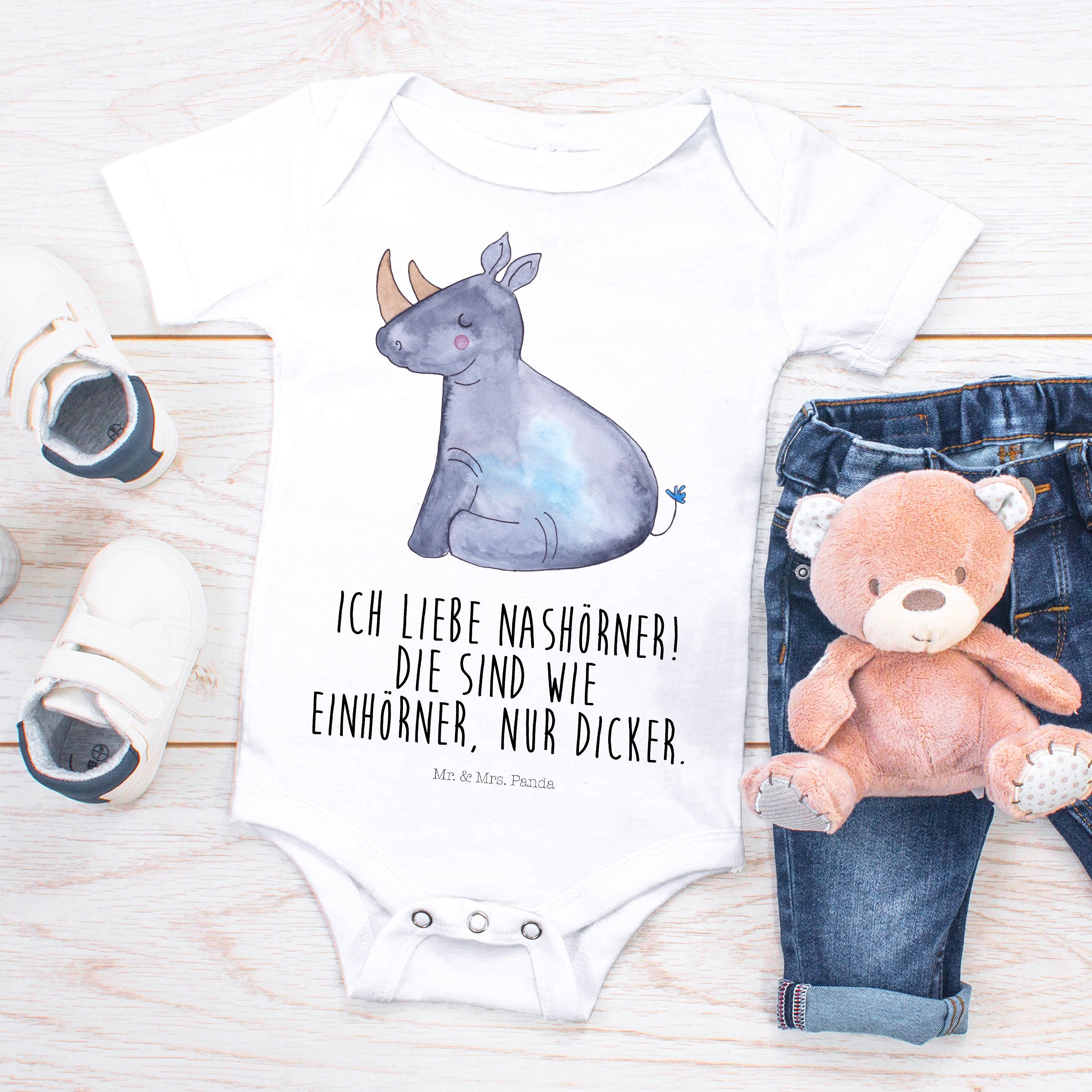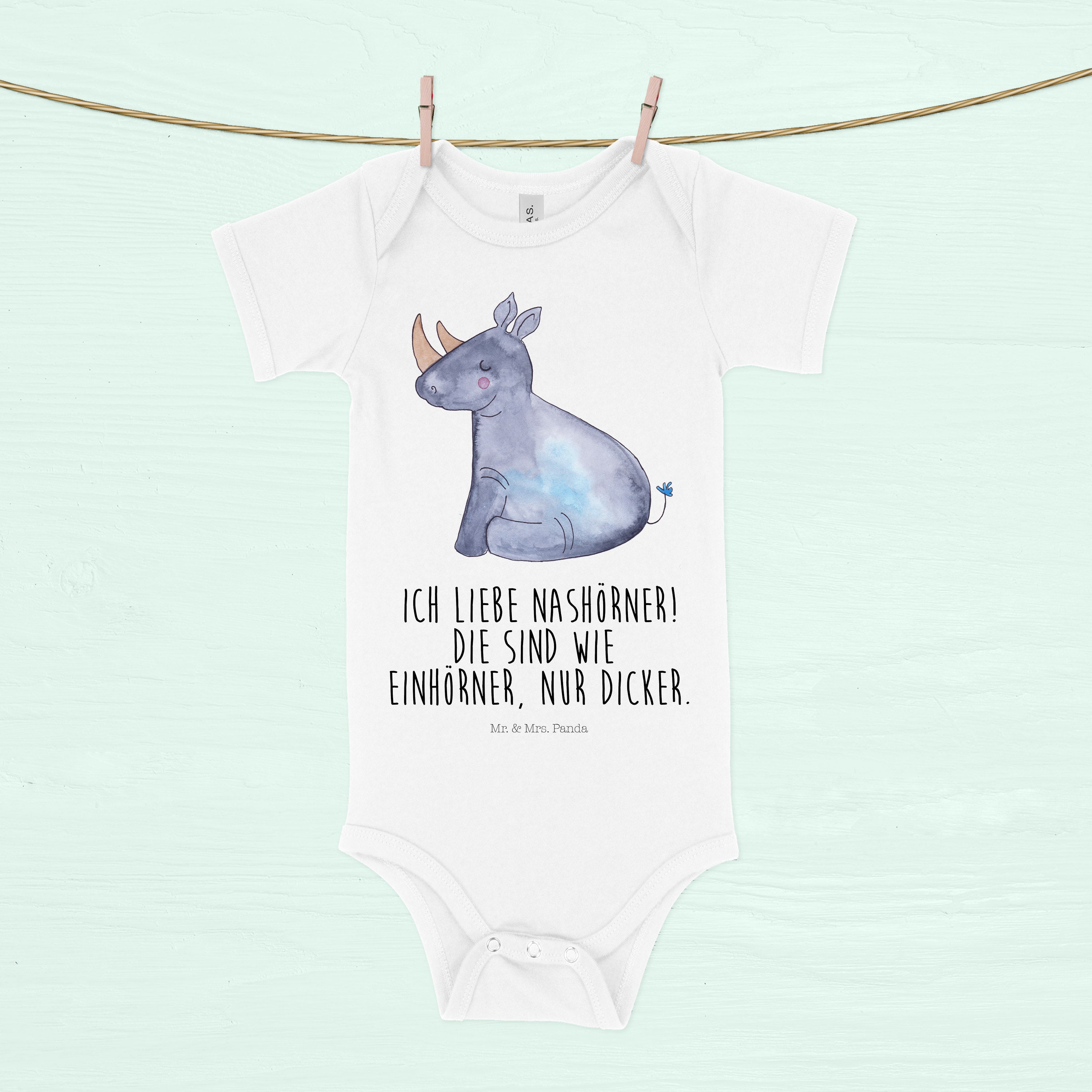Das glückliche Nashorn zeigt: Einhörner sind gar nicht so selten. Sie sind eben nur ein bisschen dicker. Das perfekte Motiv, um ein Schmunzeln zu erzwingen.