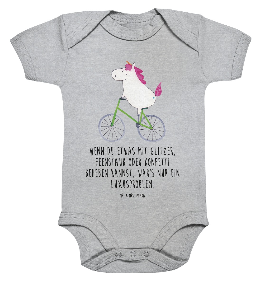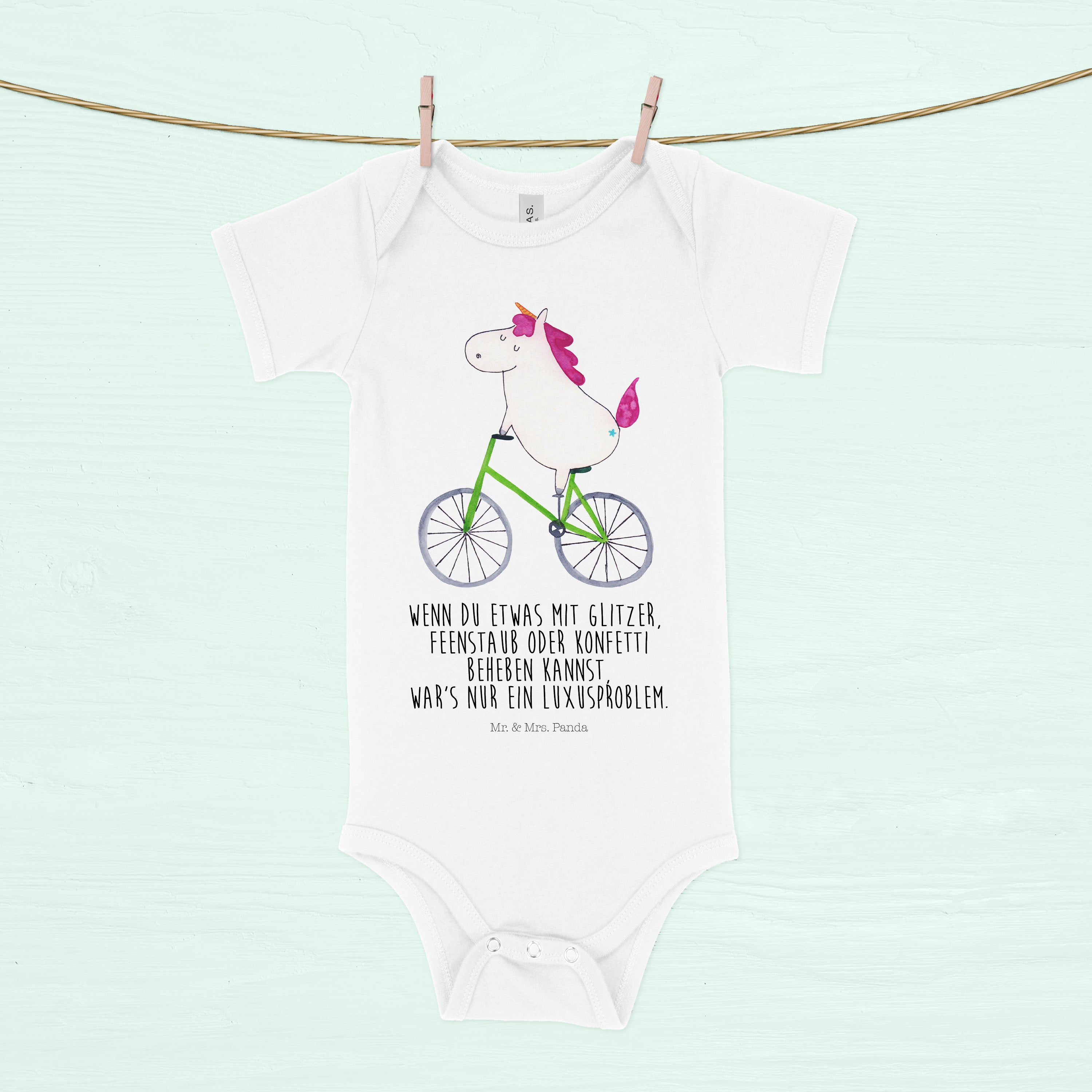 Organic Baby Body Einhorn Radfahrer Babykleidung, Babystrampler, Strampler, Wickelbody, Baby Erstausstattung, Junge, Mädchen, Einhorn, Einhörner, Einhorn Deko, Pegasus, Unicorn, Radfahren, Radfahrer, Rad, Bike, Feenstaub, Konfetti, Luxusproblem, Kummer, Liebeskummer