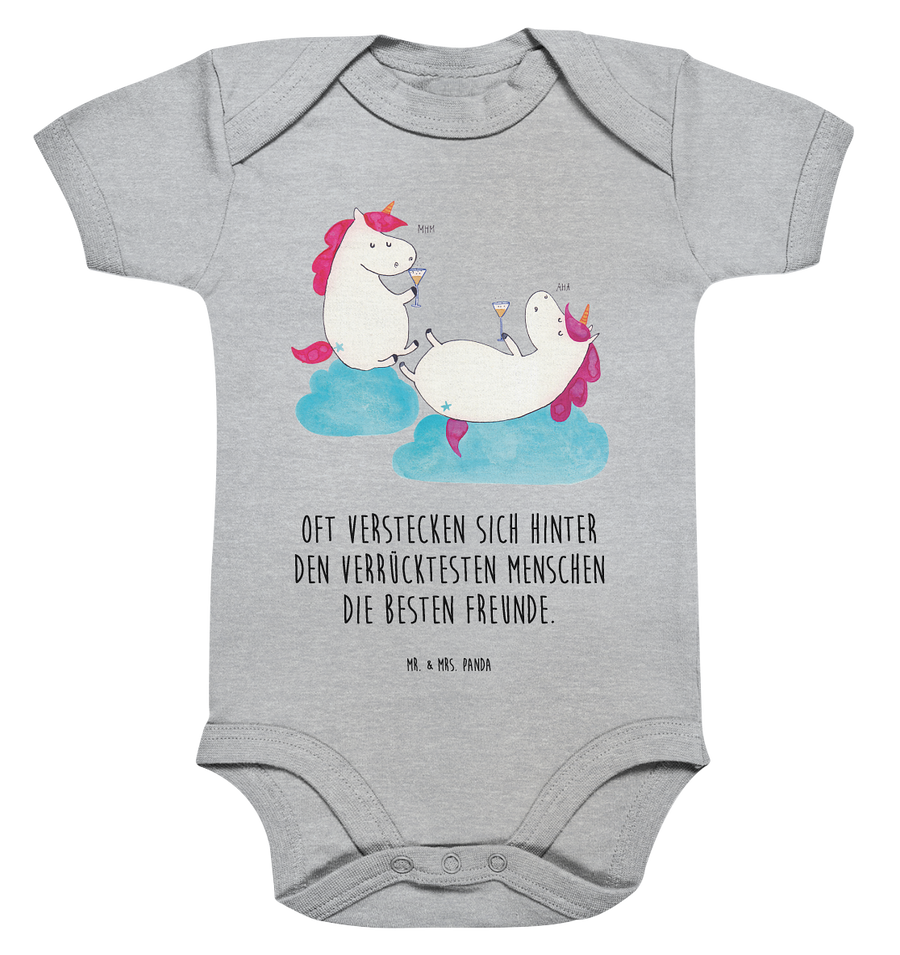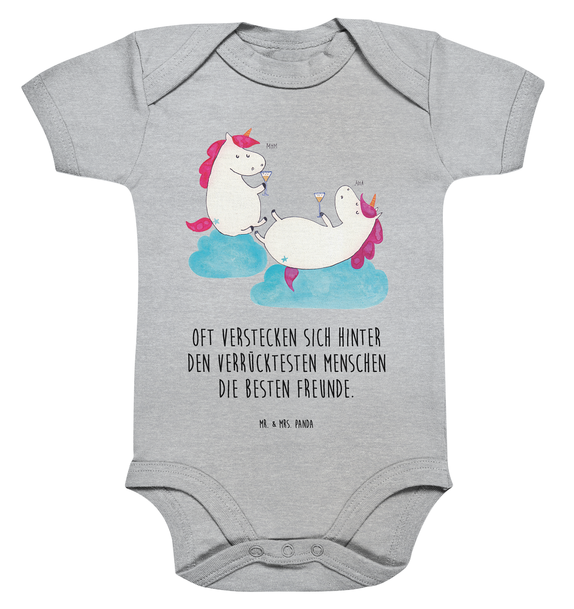 Organic Baby Body Einhörner Sekt - 1. - 3. Monat - mit Spruch - Heather Grey
