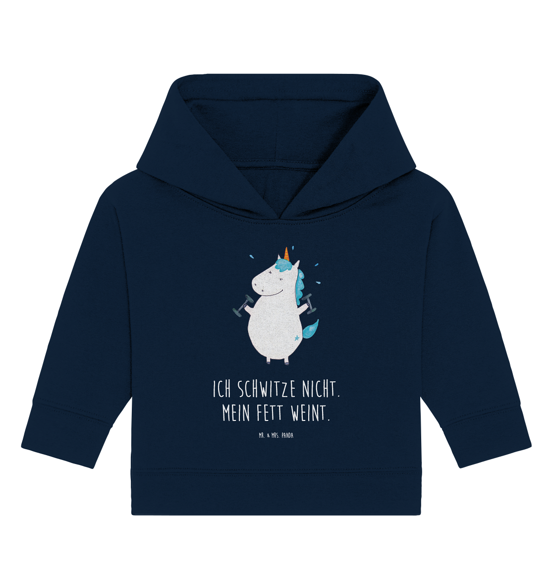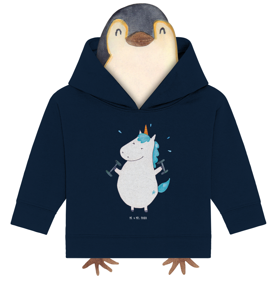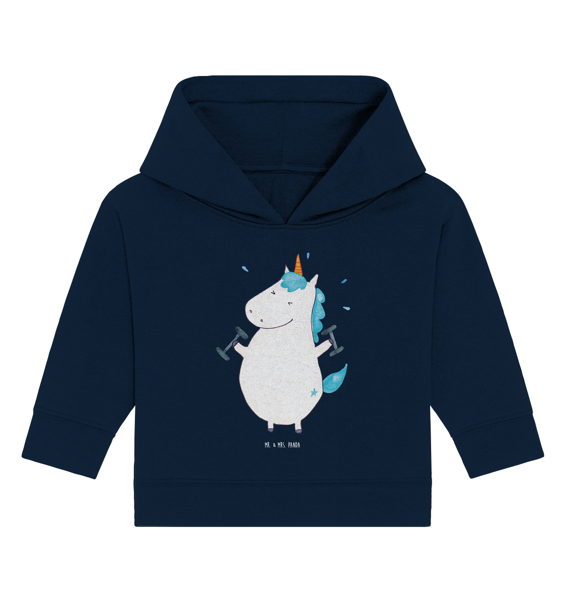 Organic Baby Hoodie Einhorn Fitness - 12. - 18. Monat - mit Spruch - French Navy