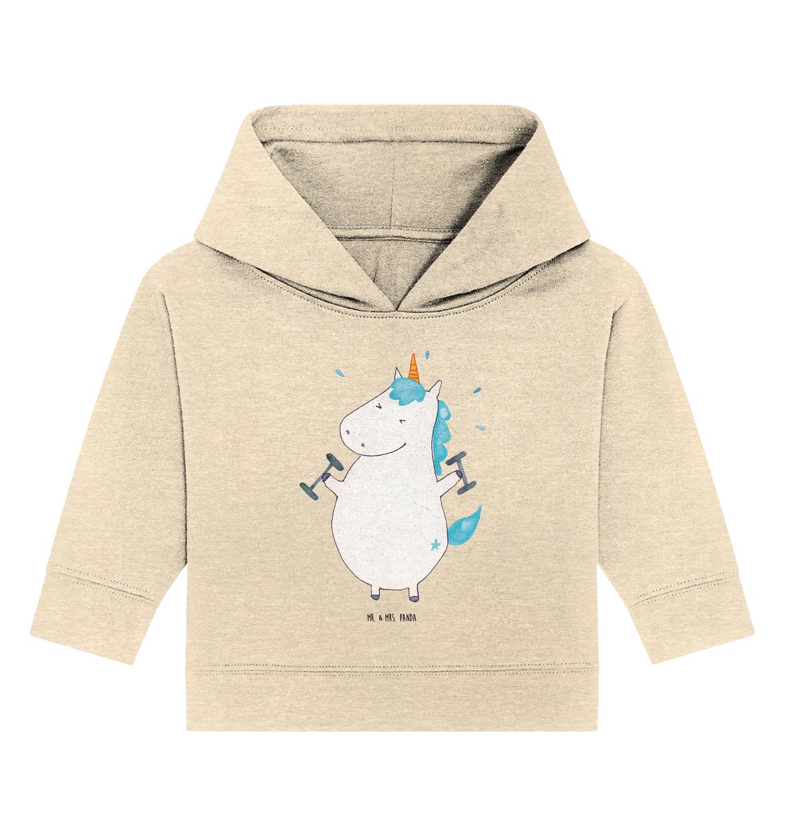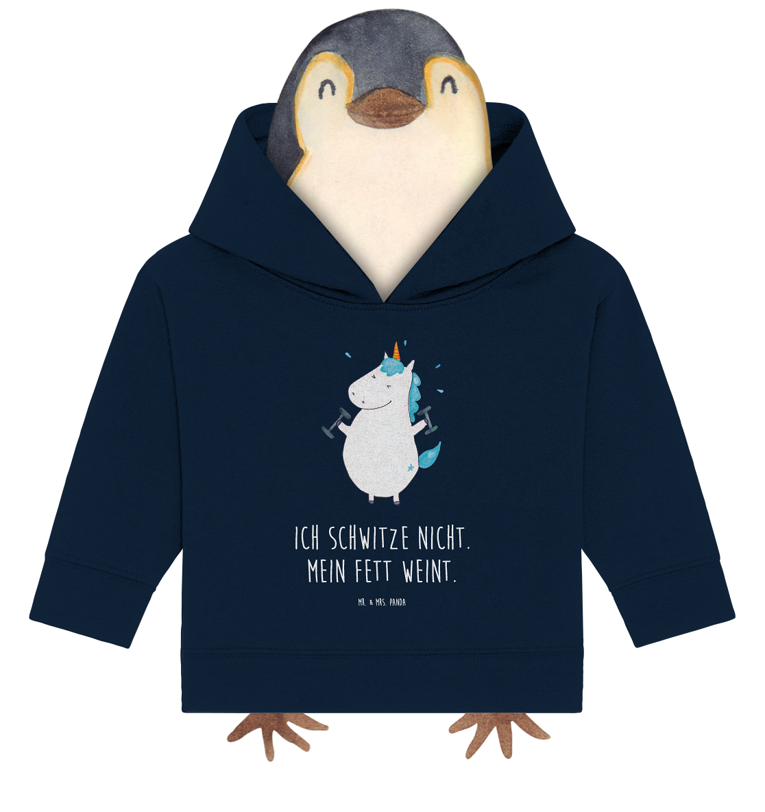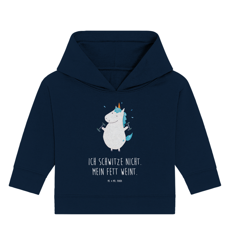 Organic Baby Hoodie Einhorn Fitness - 12. - 18. Monat - mit Spruch - French Navy