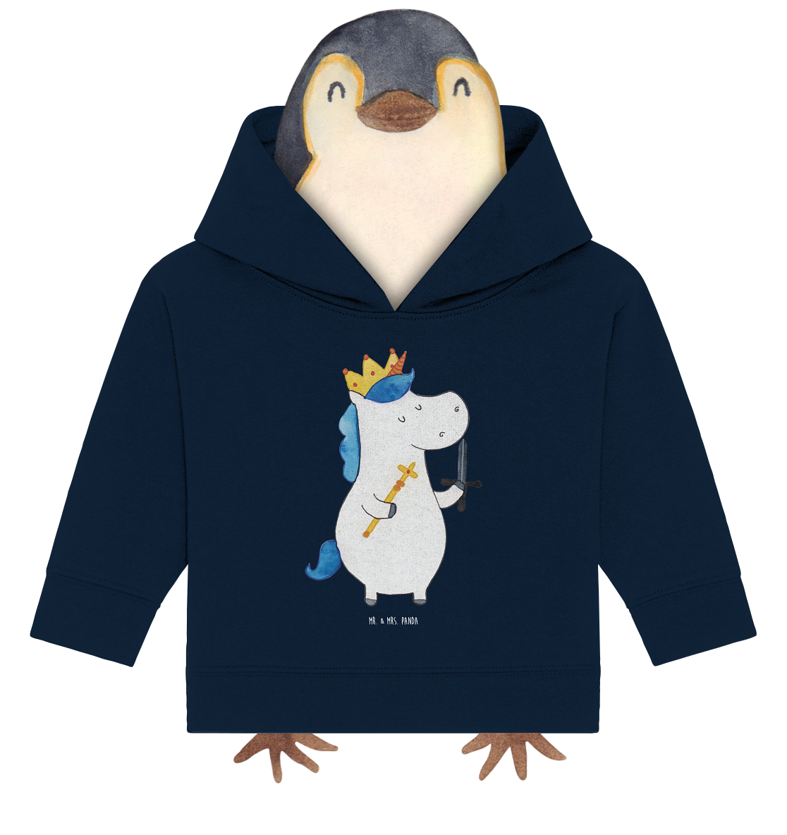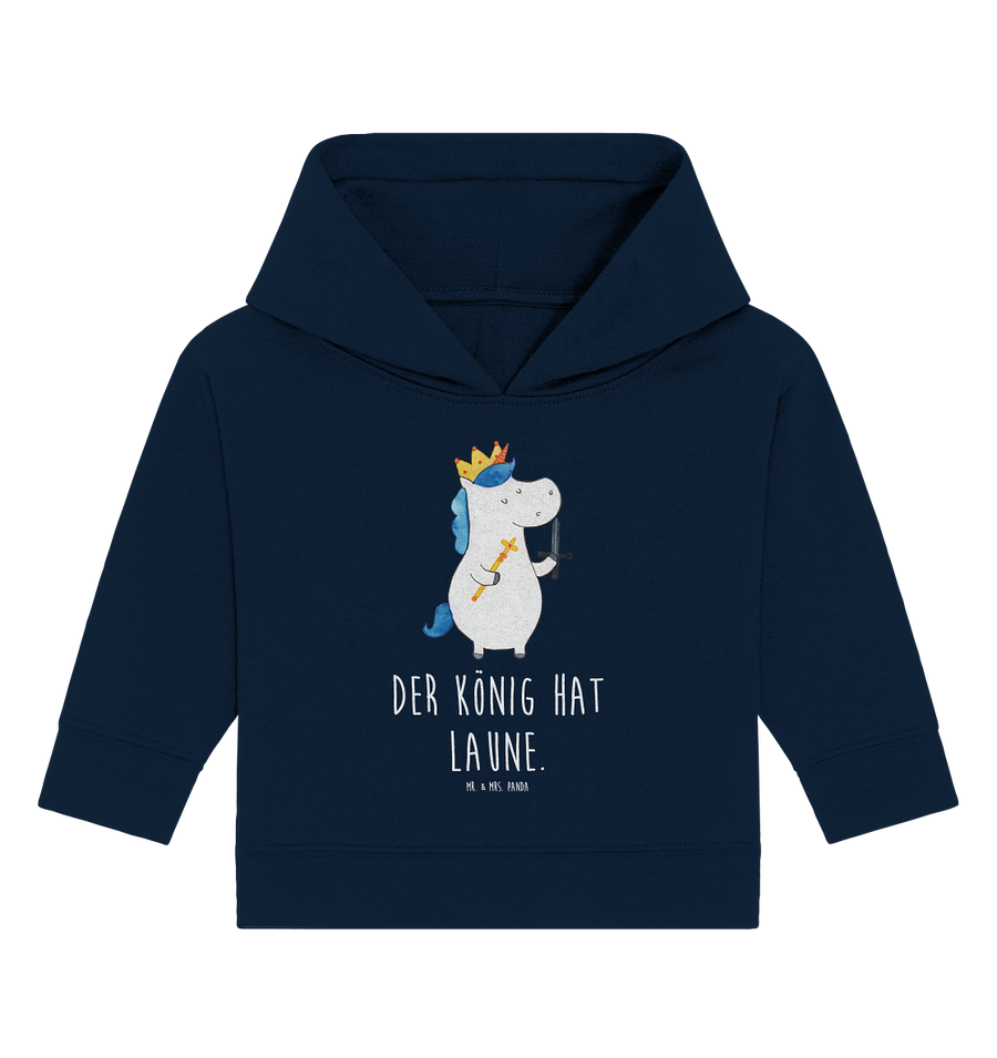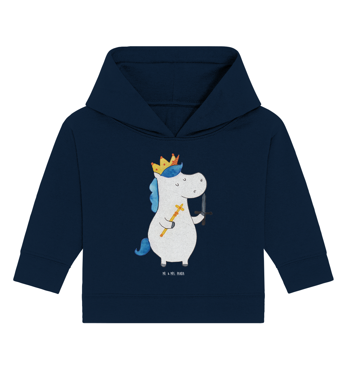 Organic Baby Hoodie Einhorn König mit Schwert - 12. - 18. Monat - mit Spruch - French Navy