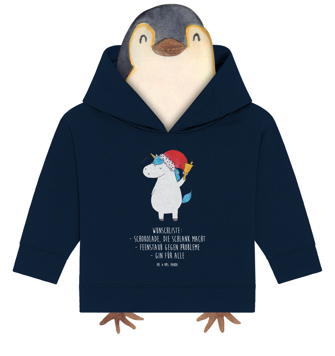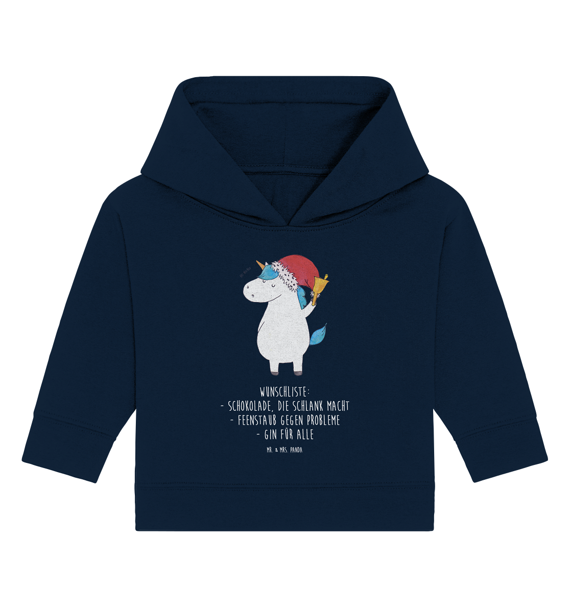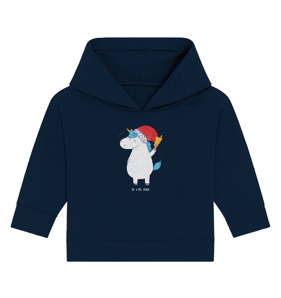 Organic Baby Hoodie Einhorn Weihnachtsmann - 12. - 18. Monat - mit Spruch - French Navy