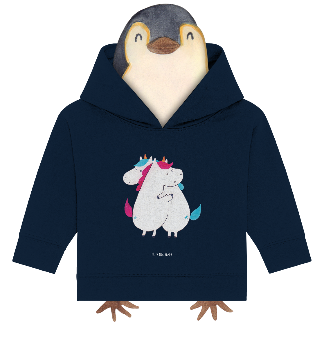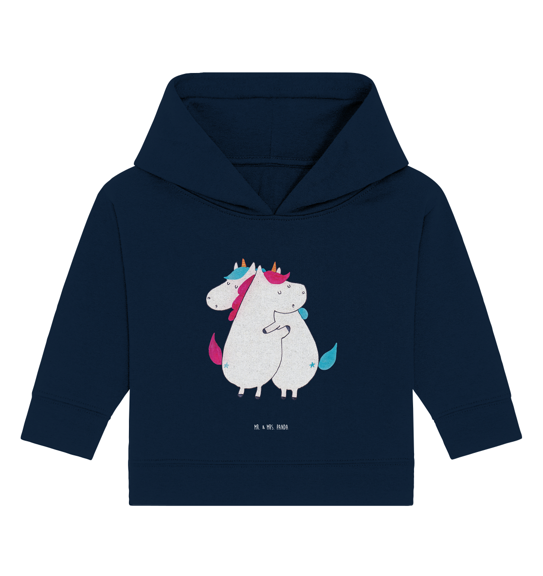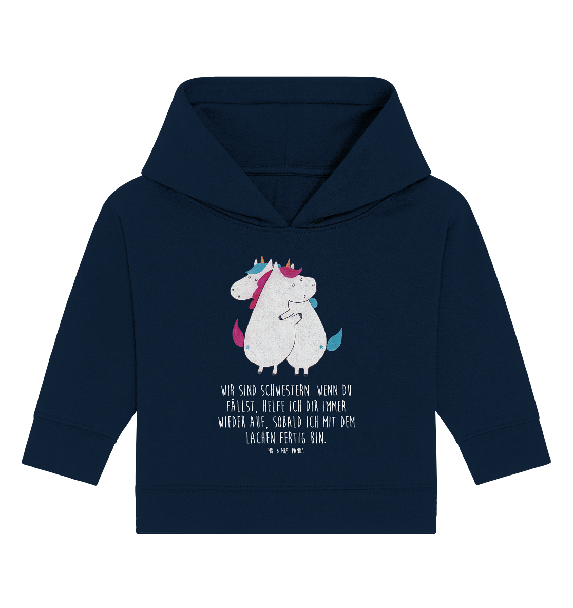 Organic Baby Hoodie Einhörner Umarmen - 12. - 18. Monat - mit Spruch - French Navy