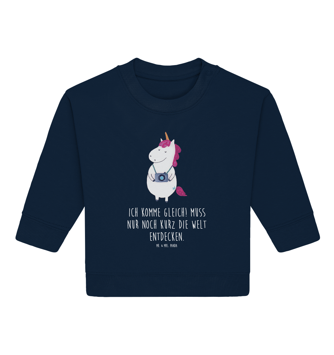 Organic Baby Pullover Einhorn Fotograf - 12. - 18. Monat - mit Spruch - French Navy