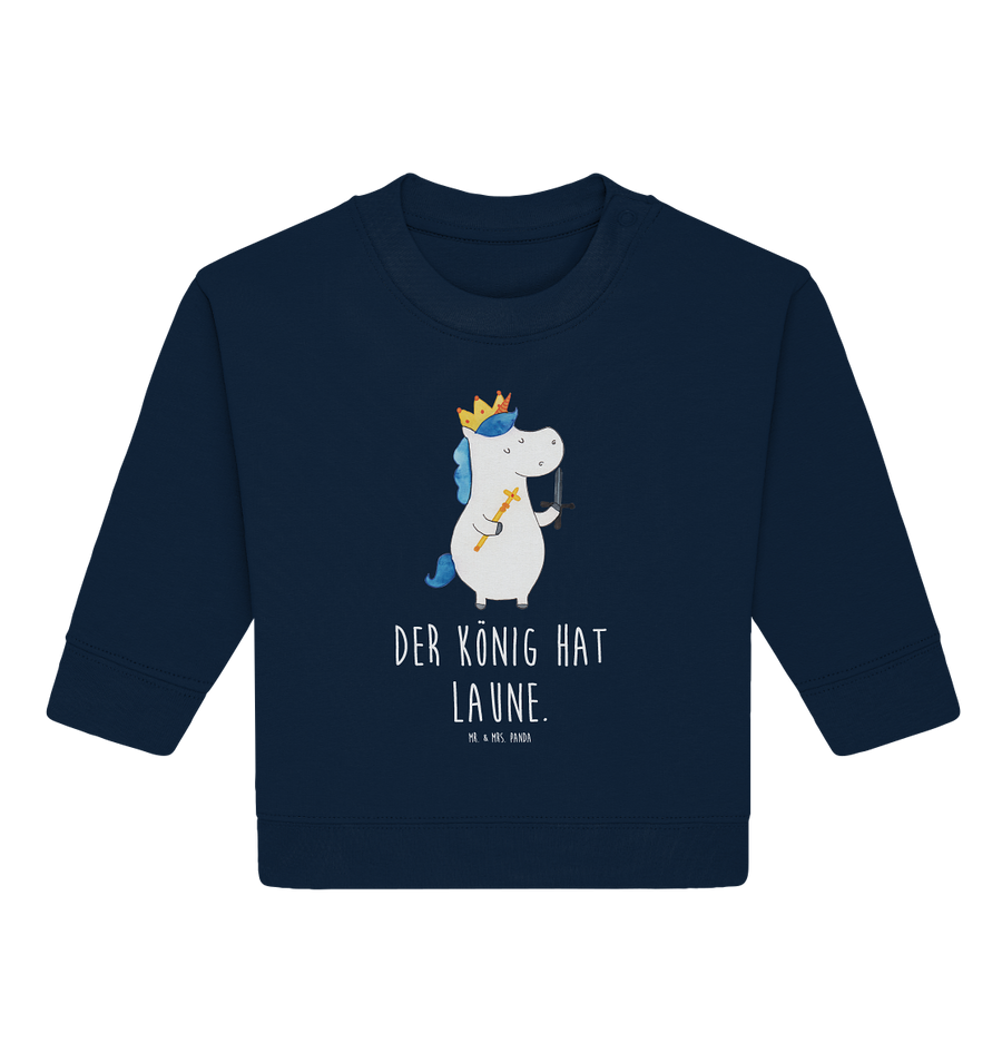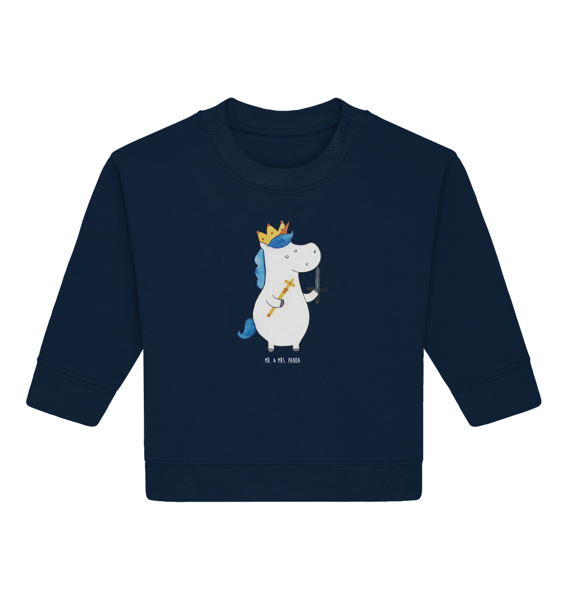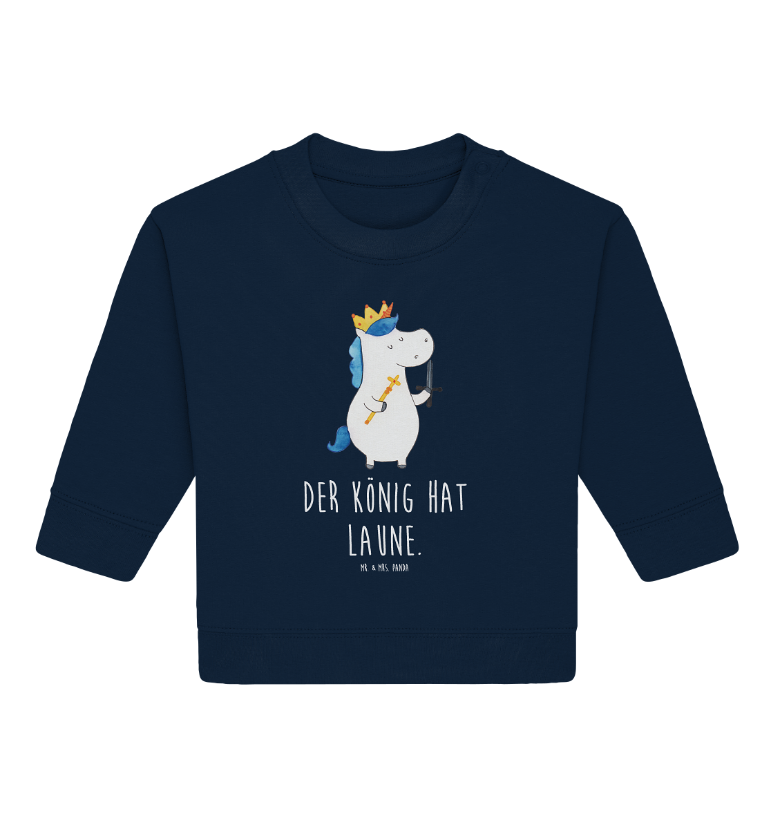 Organic Baby Pullover Einhorn König mit Schwert - 24. - 36. Monat - mit Spruch - French Navy