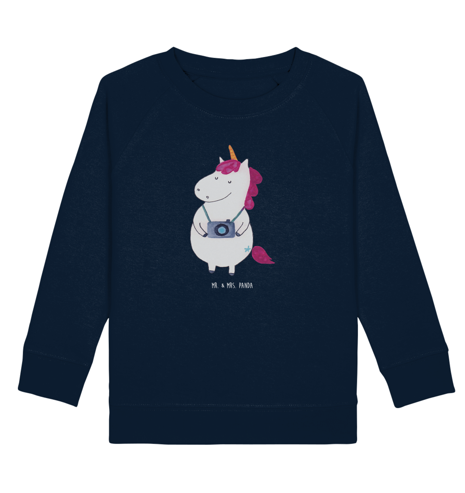 Organic Kinder Pullover Einhorn Fotograf Kinder Pullover, Kinder Sweatshirt, Jungen, Mädchen, Einhorn, Einhörner, Einhorn Deko, Pegasus, Unicorn, Fotograf, Fotografie, Kamera, Reisen, Weltreise, Weltenbummler, Urlaub, Tourist, Kurztrip, Reise, Städtereise