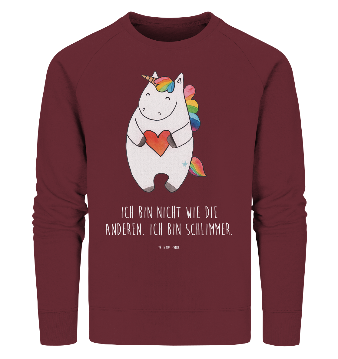 Organic Pullover Einhorn Herz - Größe XXL - mit Spruch - Burgundy