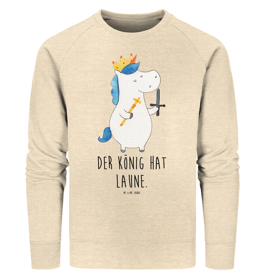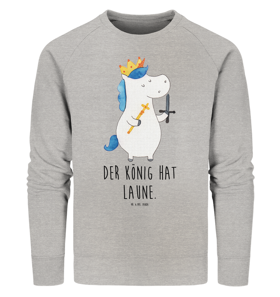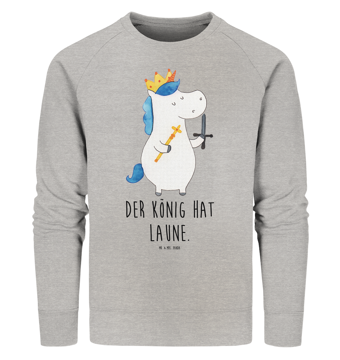 Organic Pullover Einhorn König mit Schwert - Größe XXL - mit Spruch - Heather Grey