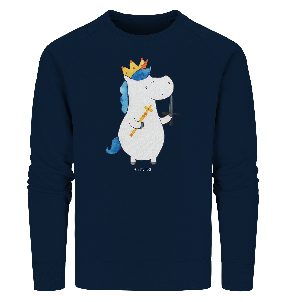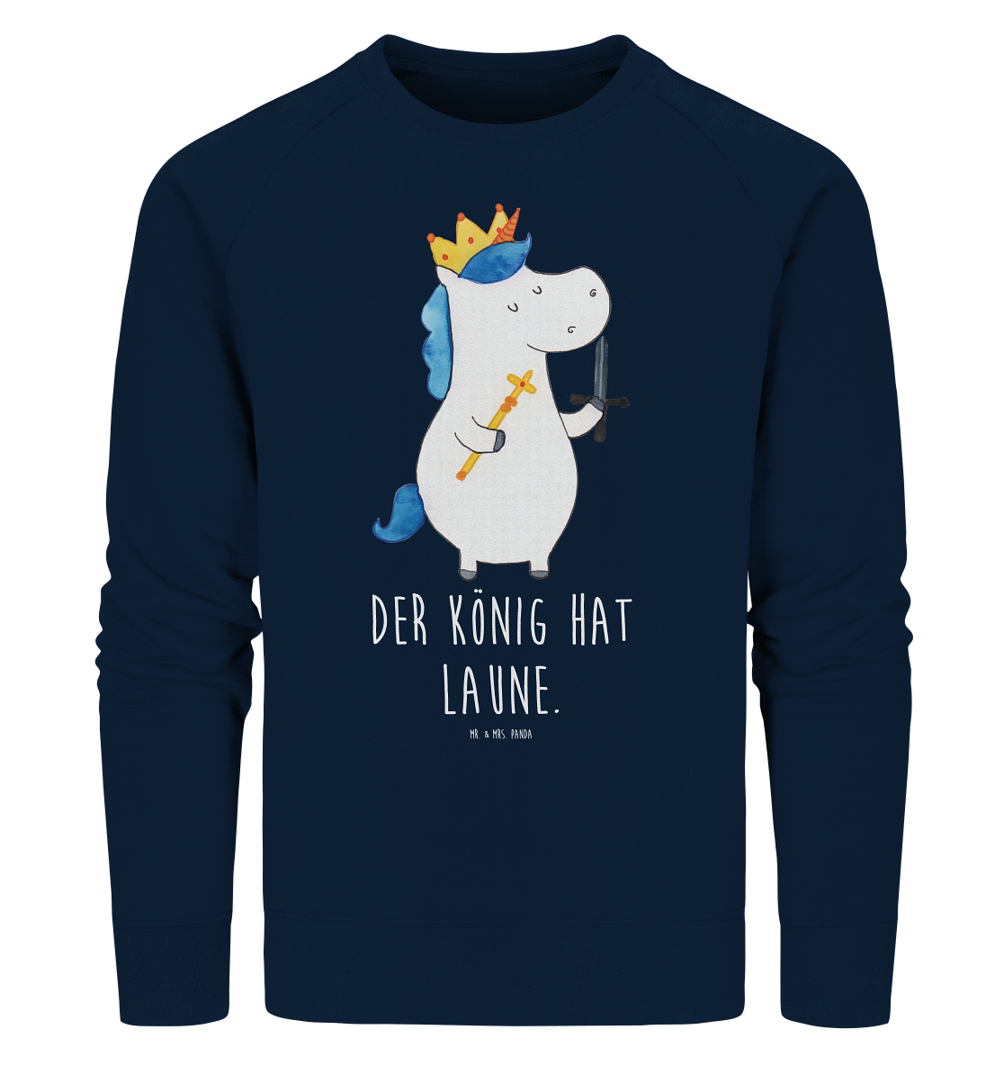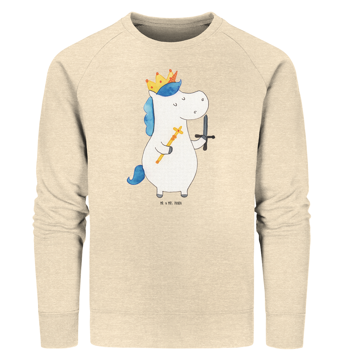 Organic Pullover Einhorn König mit Schwert - Größe XXL - mit Spruch - Heather Grey