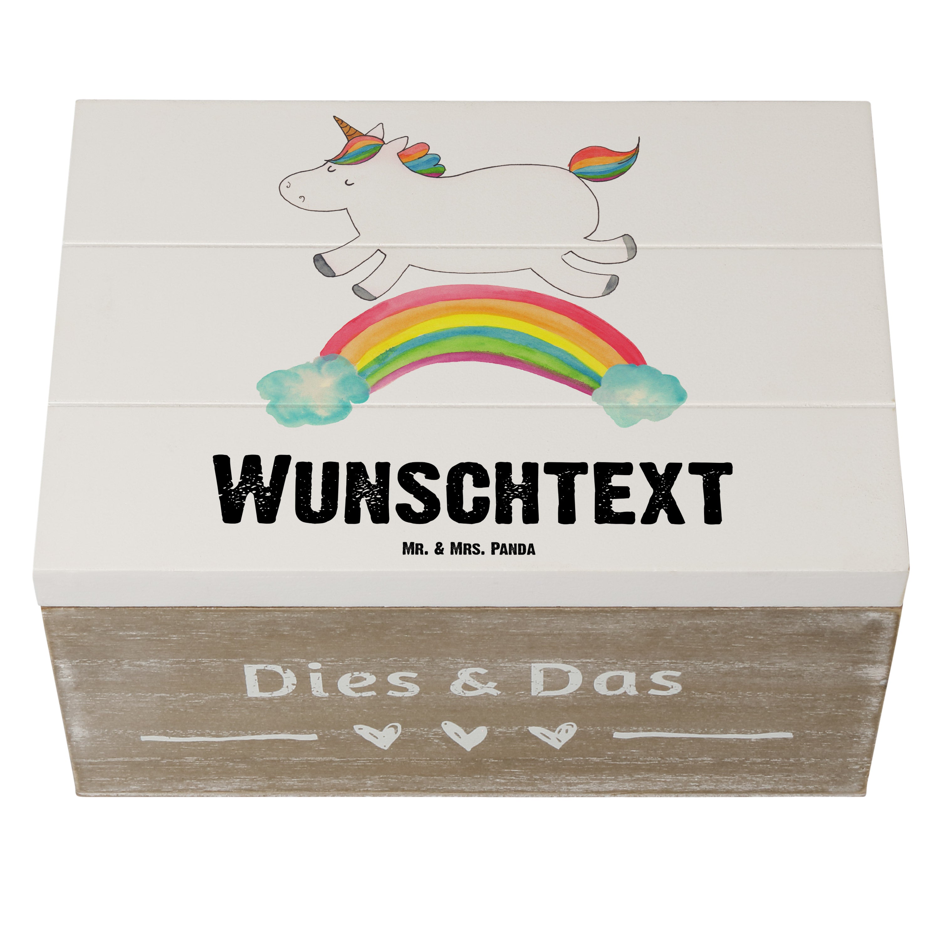Personalisierte Holzkiste Einhorn Regenbogen - 19 x 12 cm