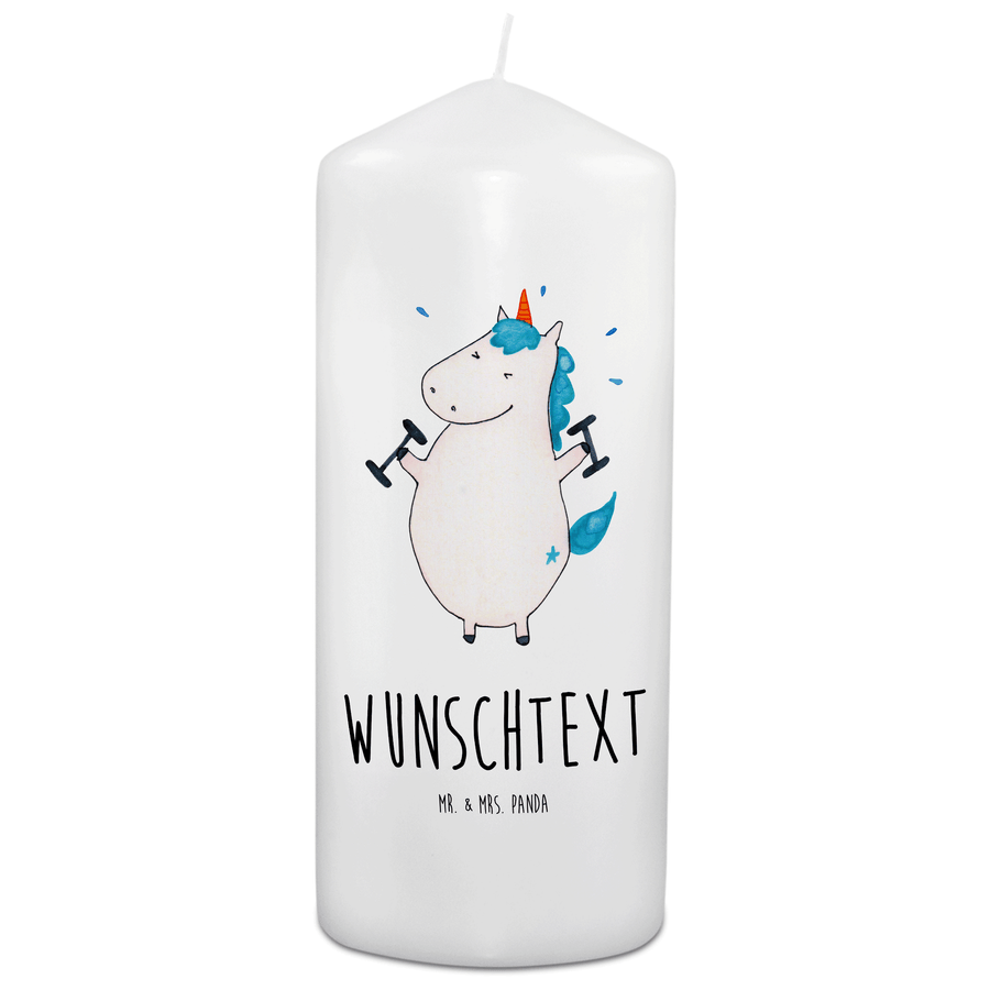 Personalisierte Kerze Einhorn Fitness - 15 x 7 cm