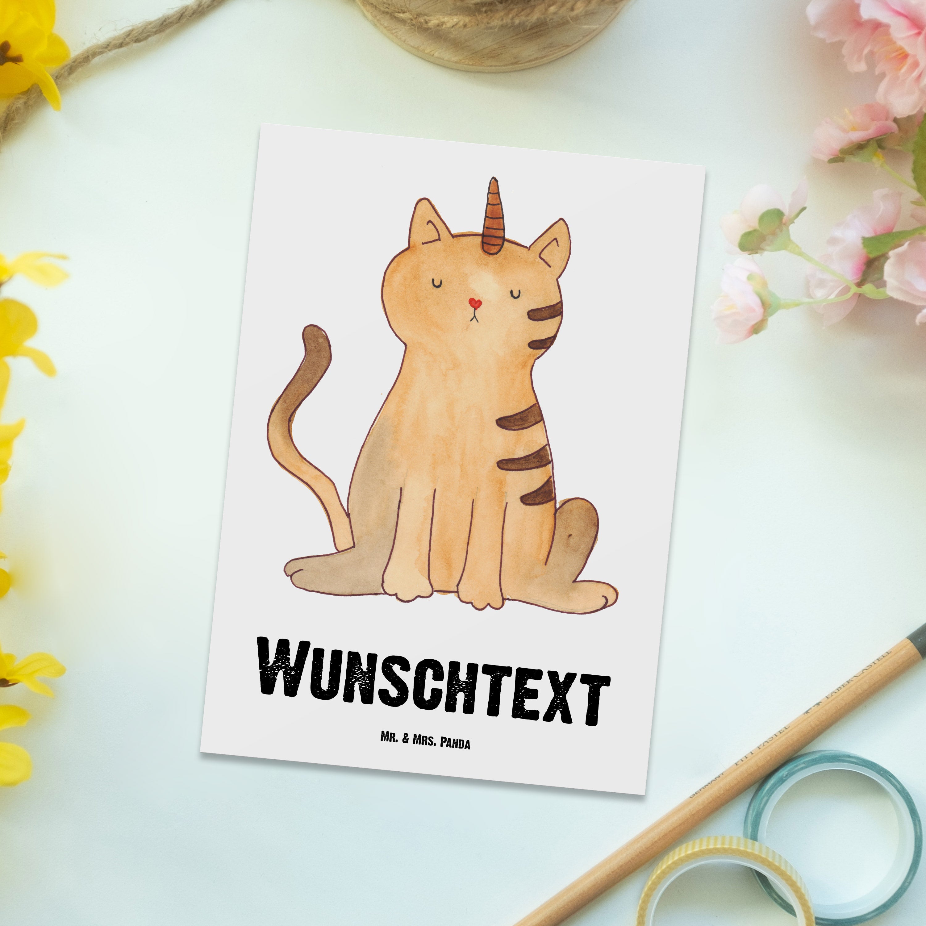 Personalisierte Postkarte Einhorn Katze