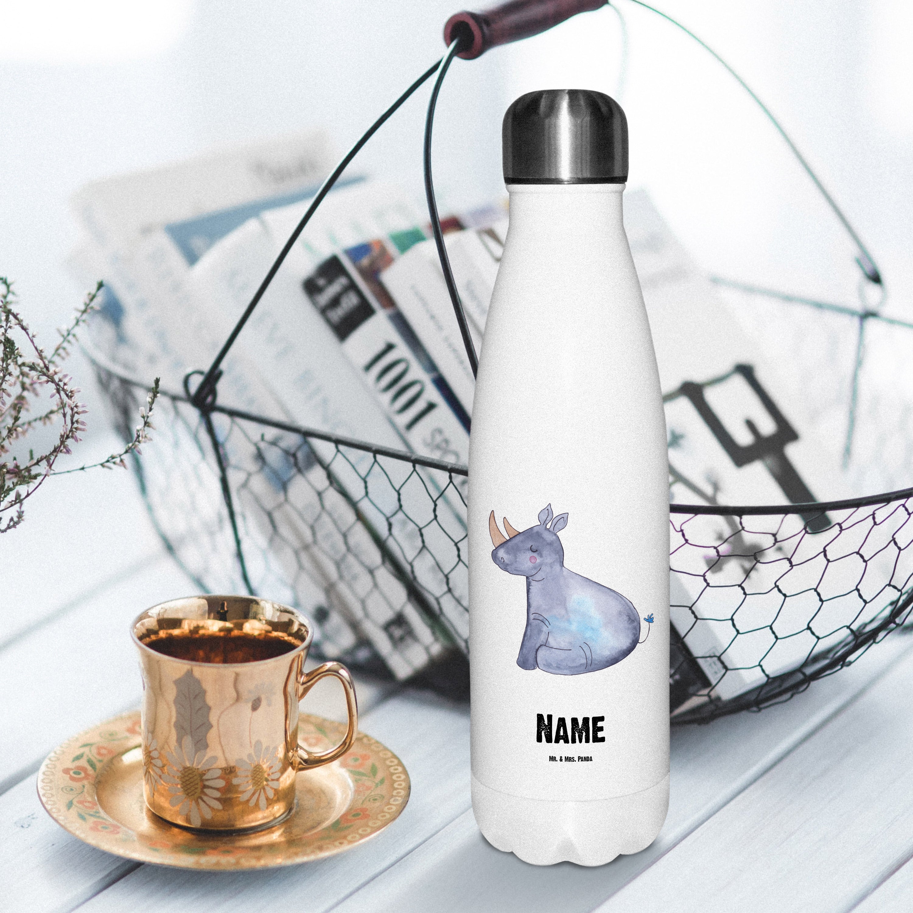 Personalisierte Thermosflasche Einhorn Nashorn