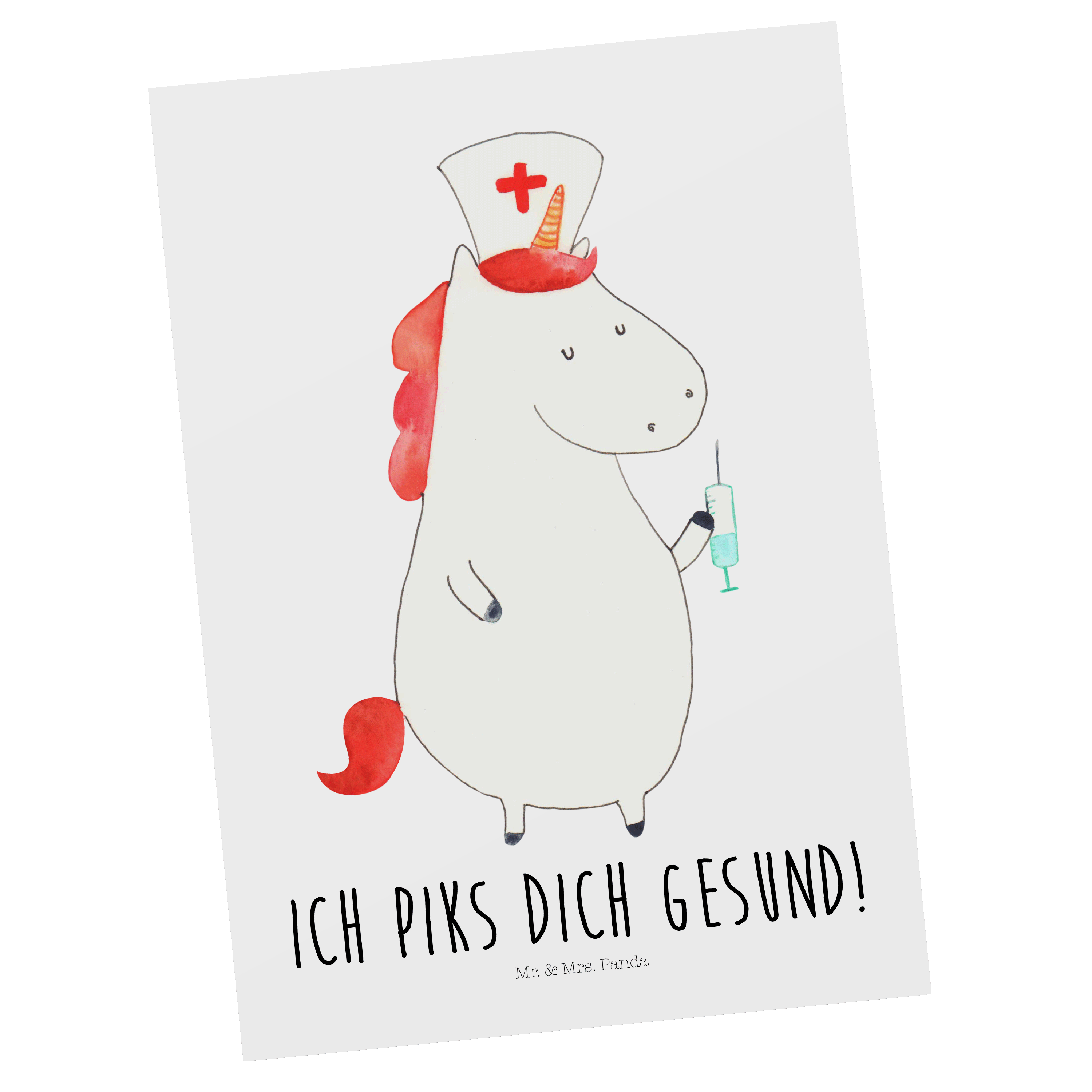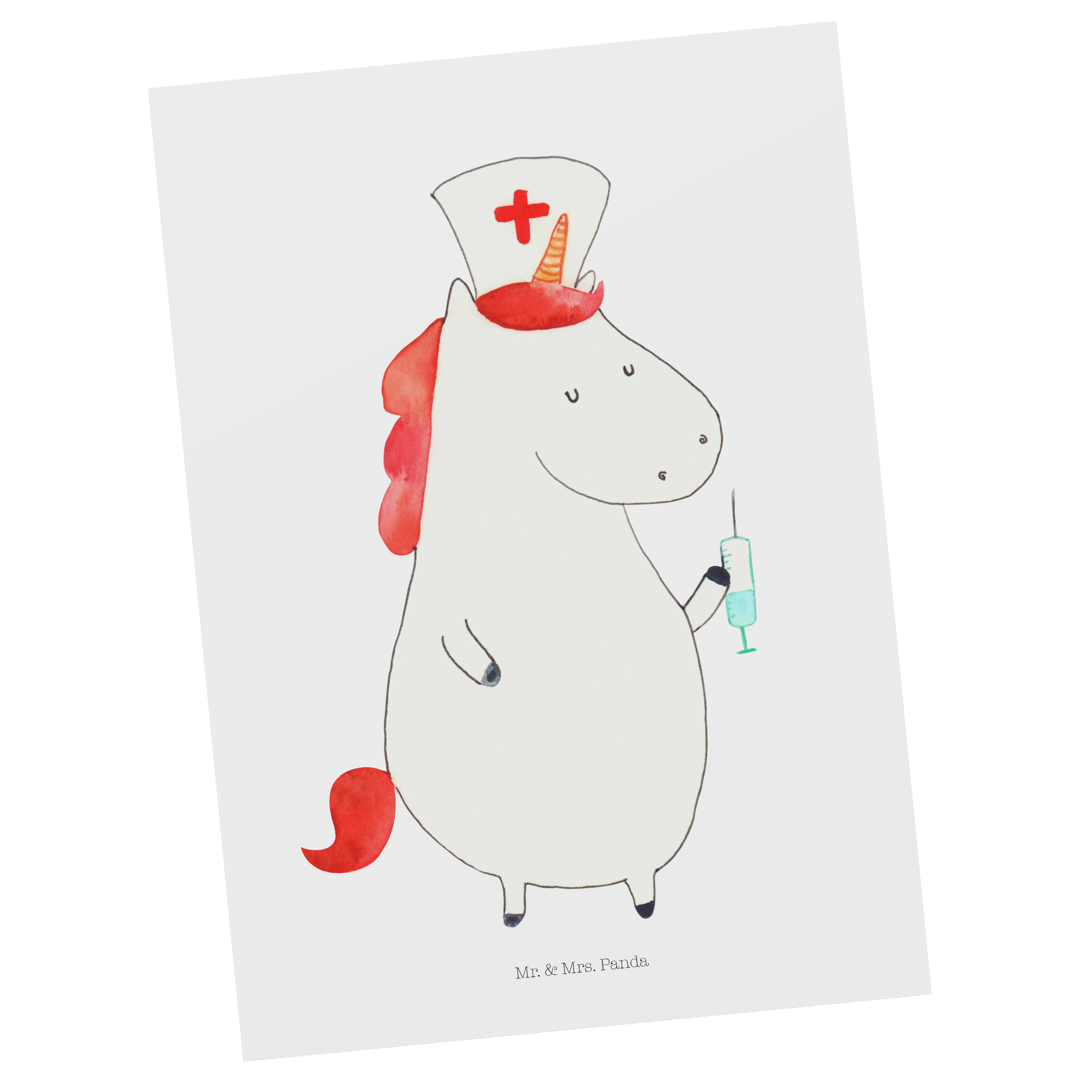 Postkarte Einhorn Krankenschwester - mit Spruch - Weiß