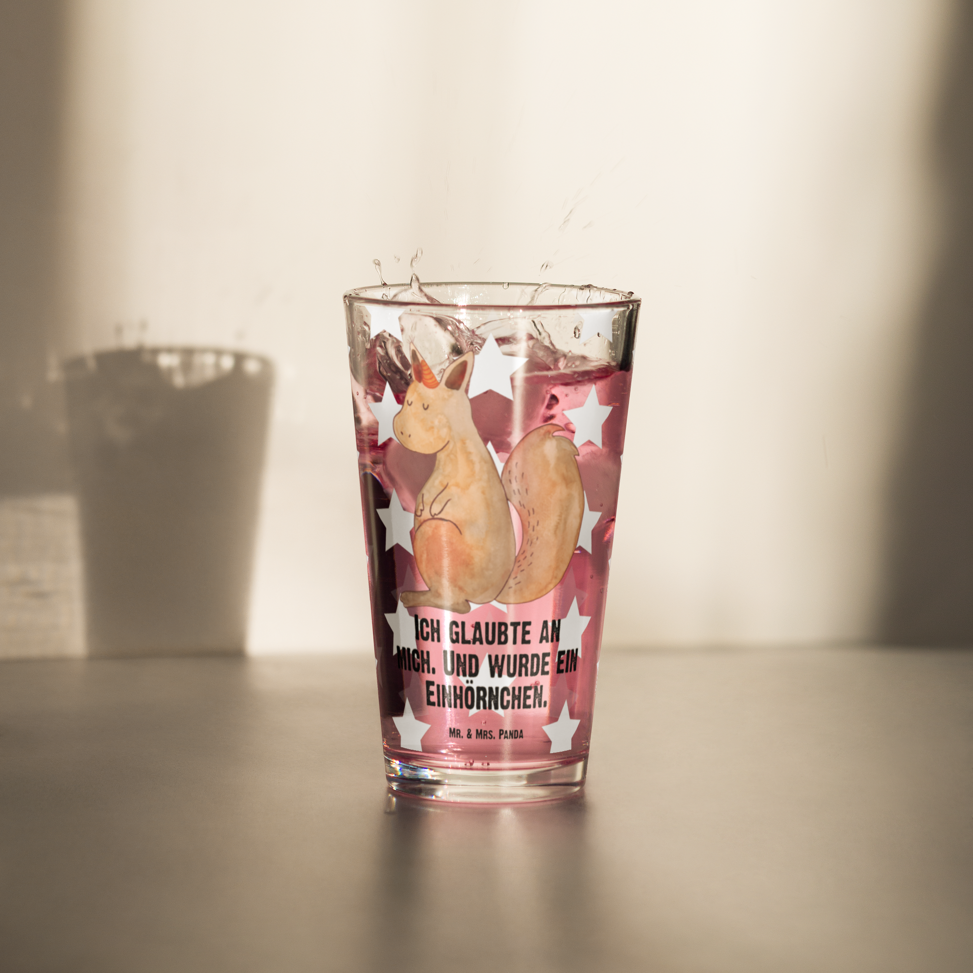 Premium Trinkglas Einhörnchen Glaube - mit Spruch