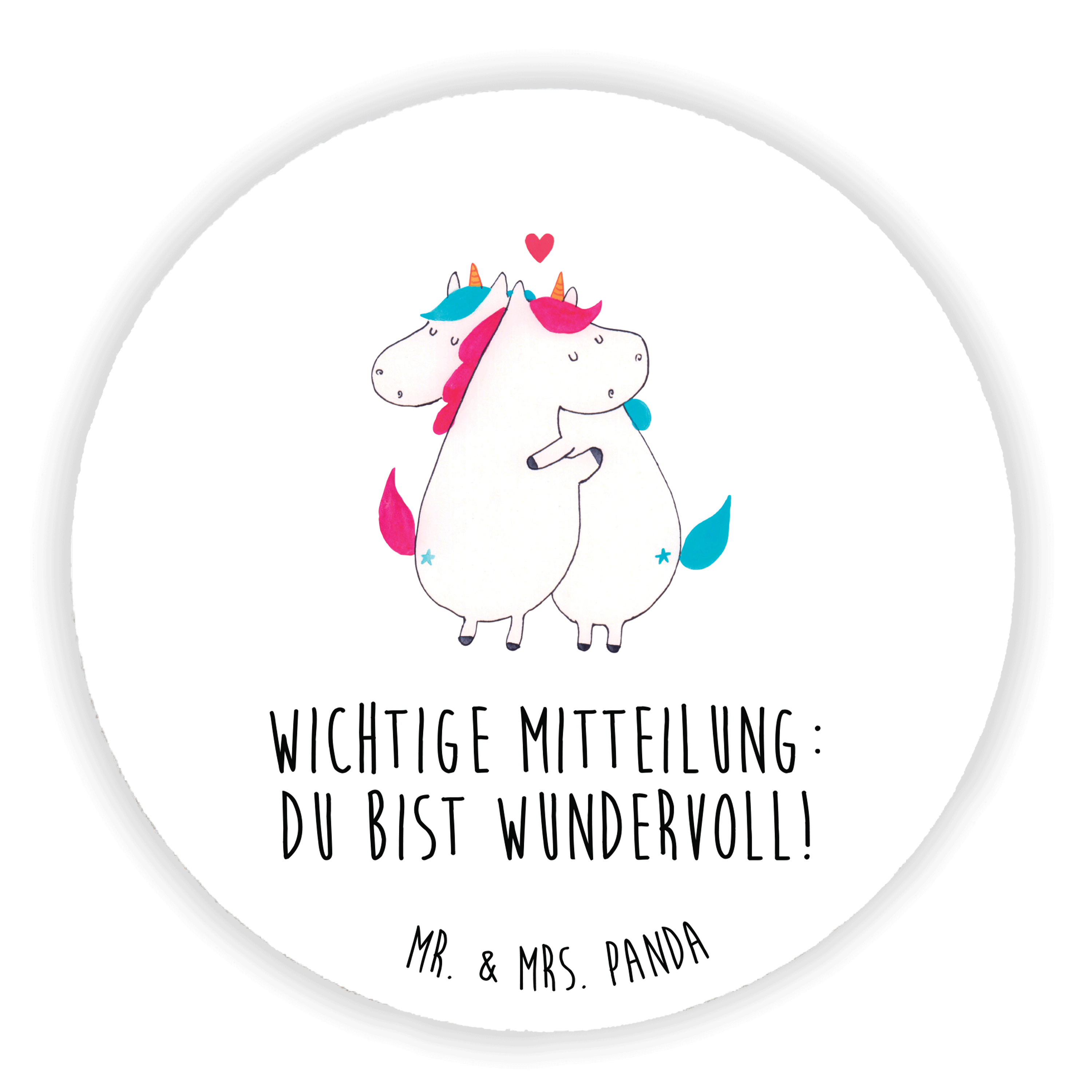 Für diese äußerst dringende Mitteilung muss immer Zeit sein. Man kann den Liebsten gar nicht oft genug sagen, dass sie wundervoll sind. Und wer sollte diese Botschaft besser transportieren als zwei kuschelnde Einhörner?