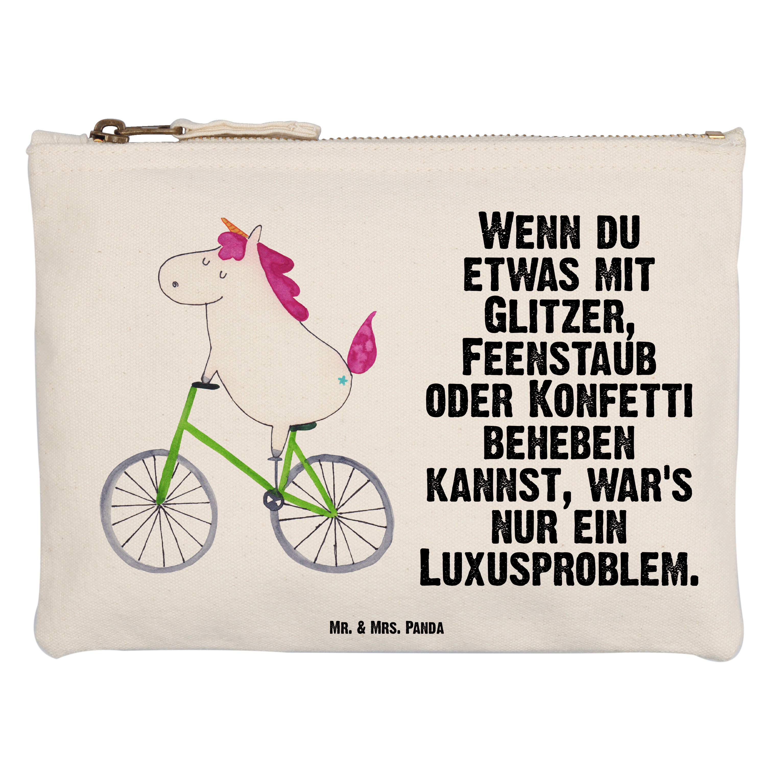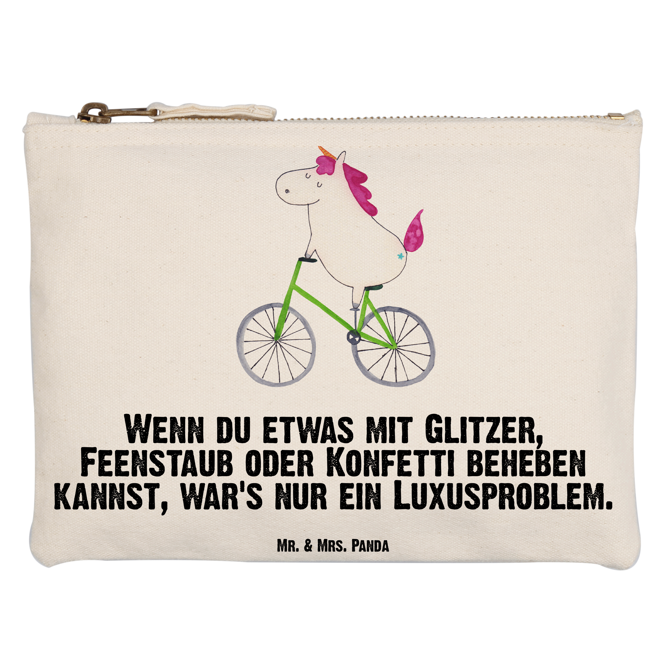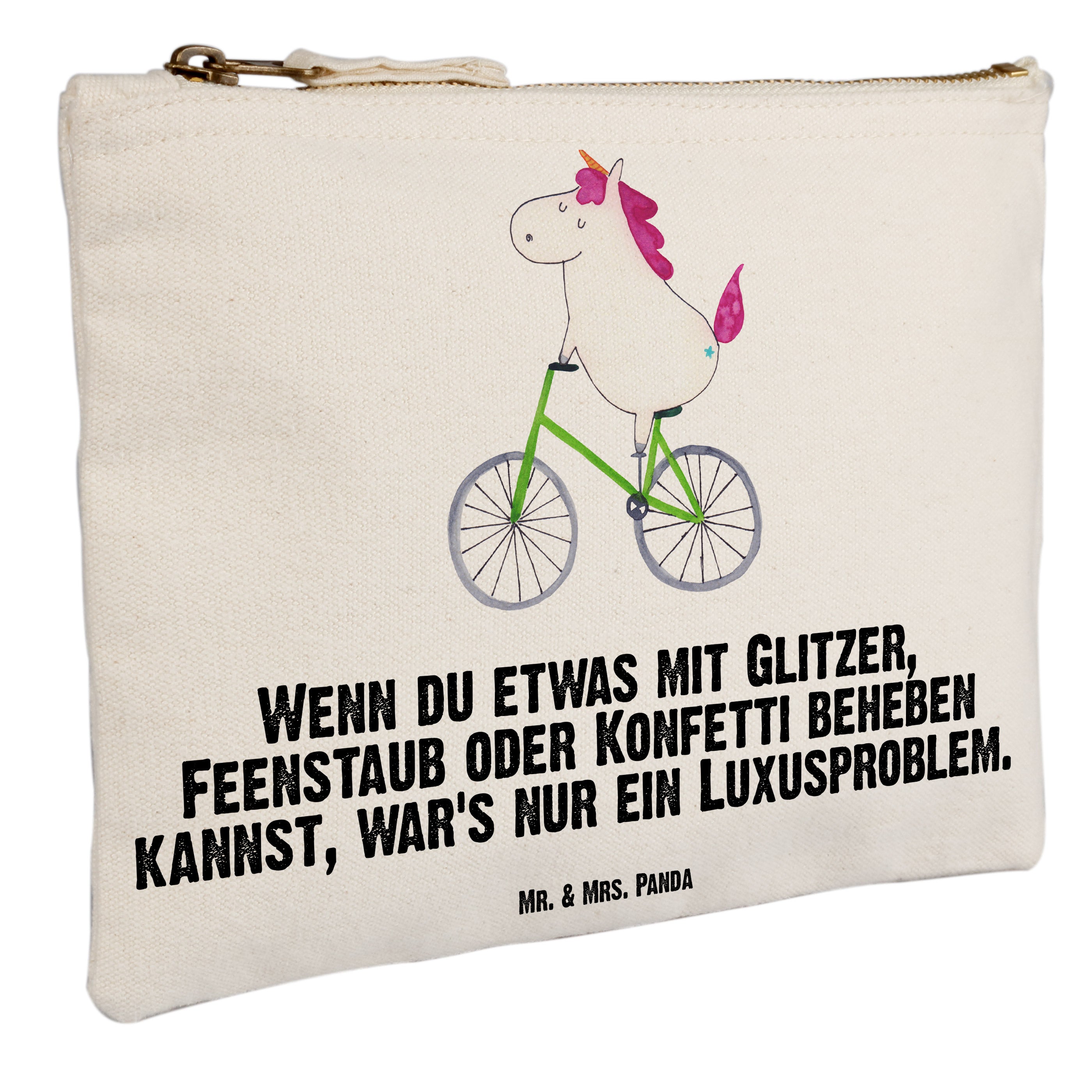 Schminktasche Einhorn Radfahrer - Grösse XL Große - mit Spruch