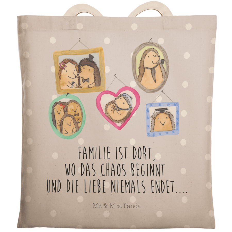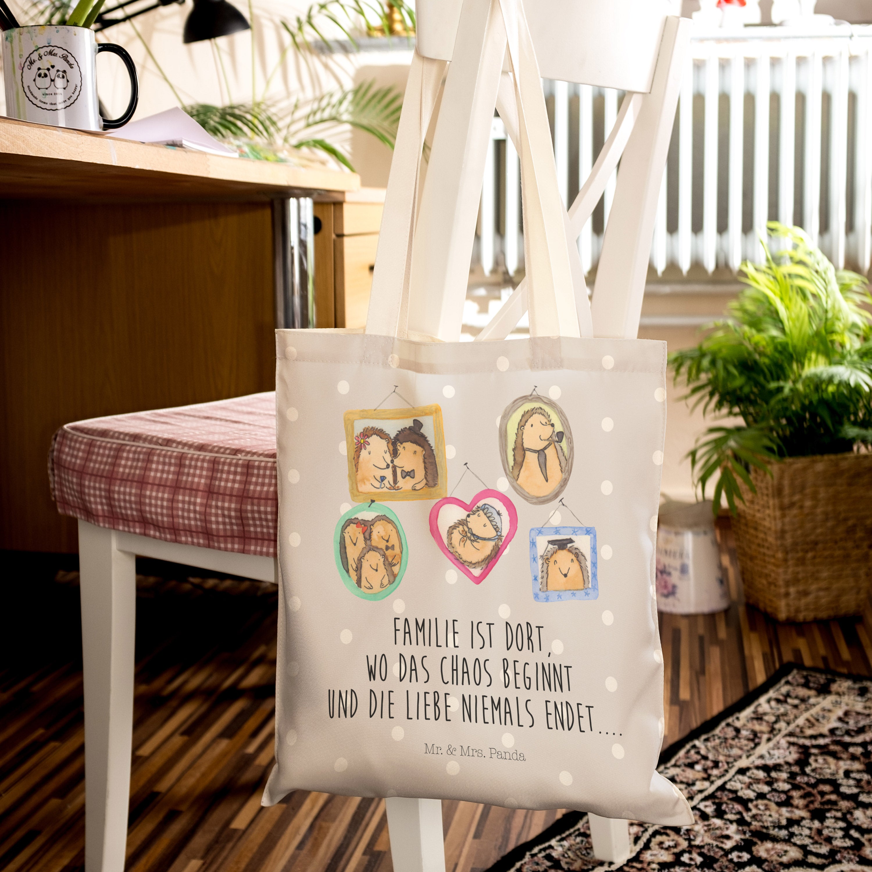 Einkaufstasche Igel Familie - mit Spruch - Grau Pastell