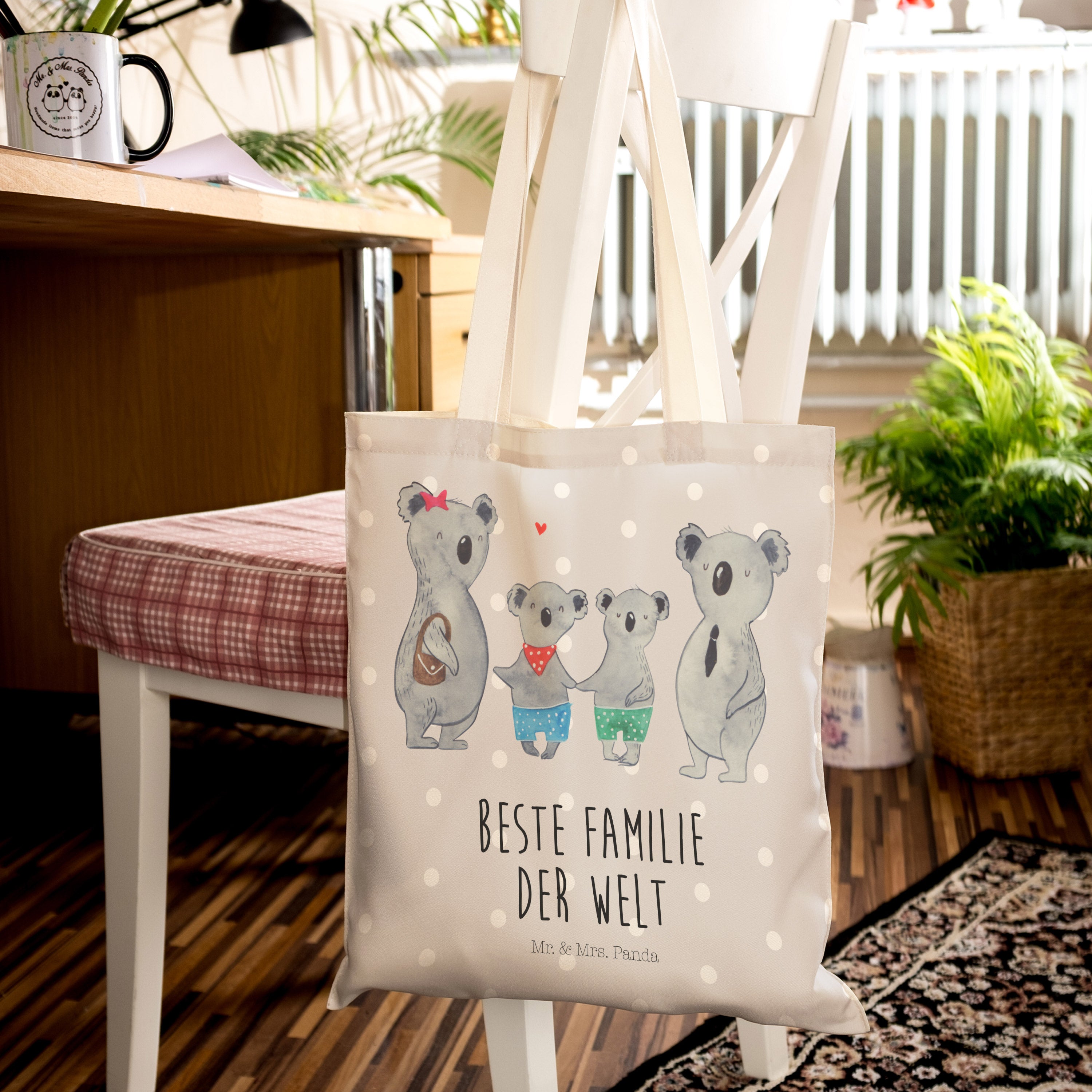 Einkaufstasche Koala Familie zwei - mit Spruch - Grau Pastell