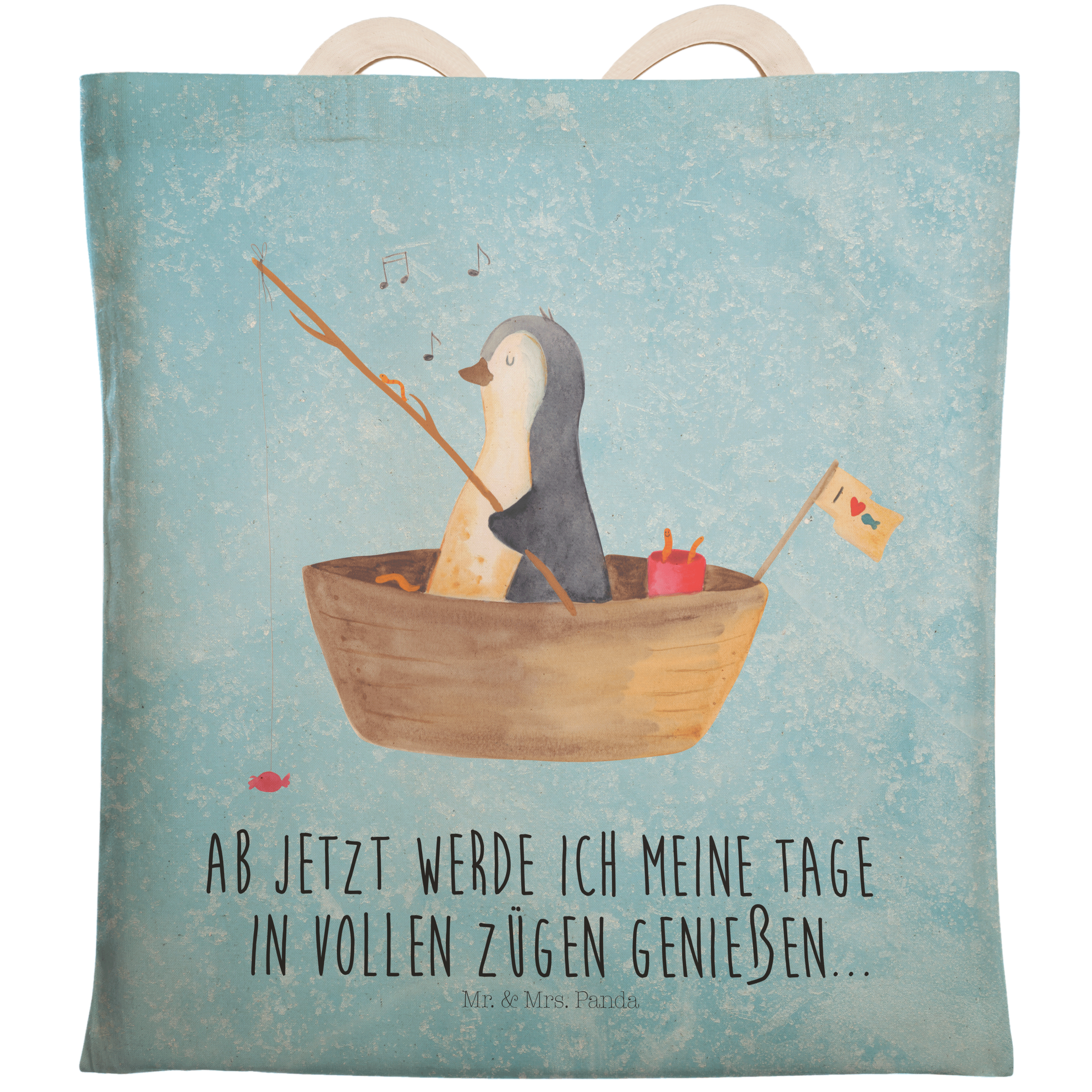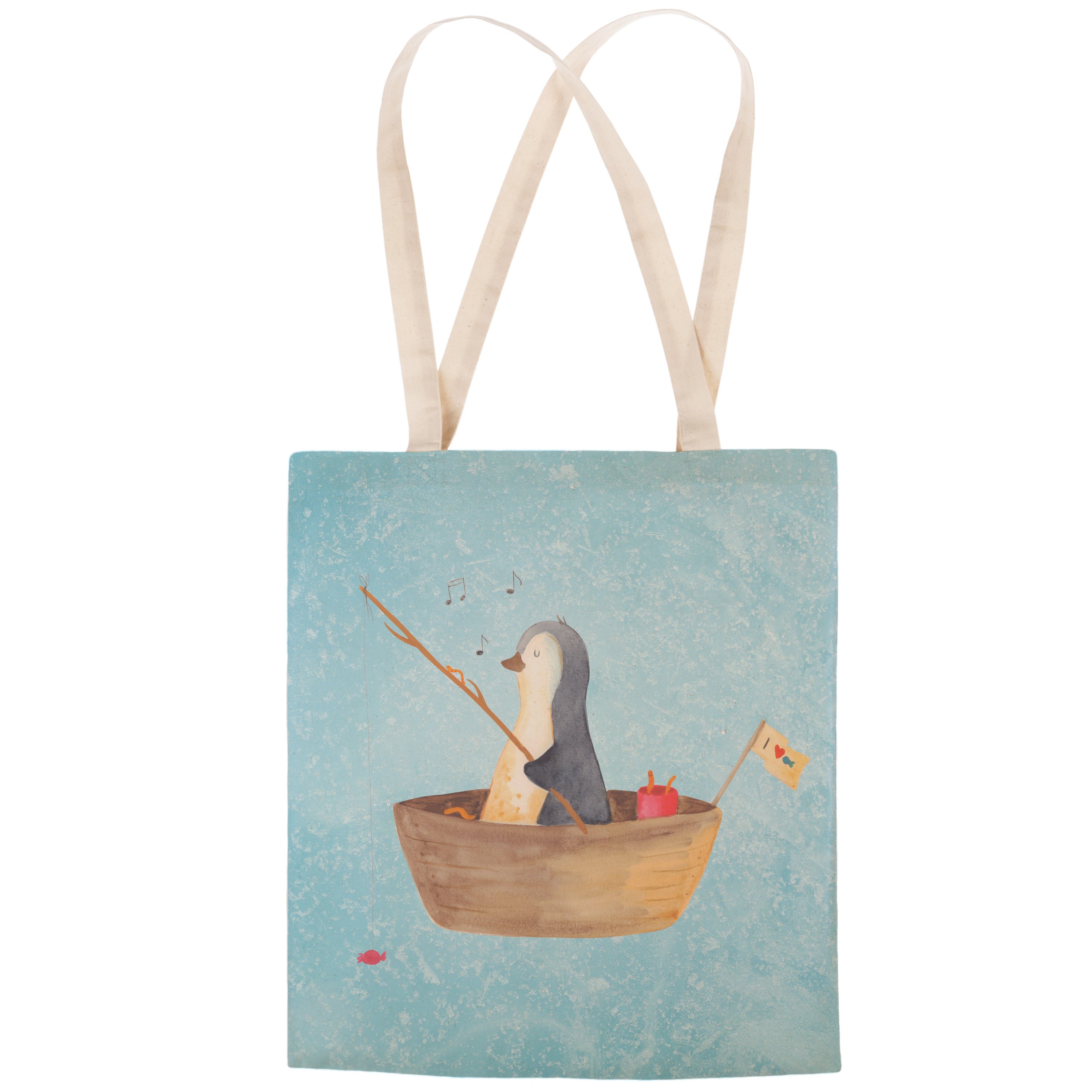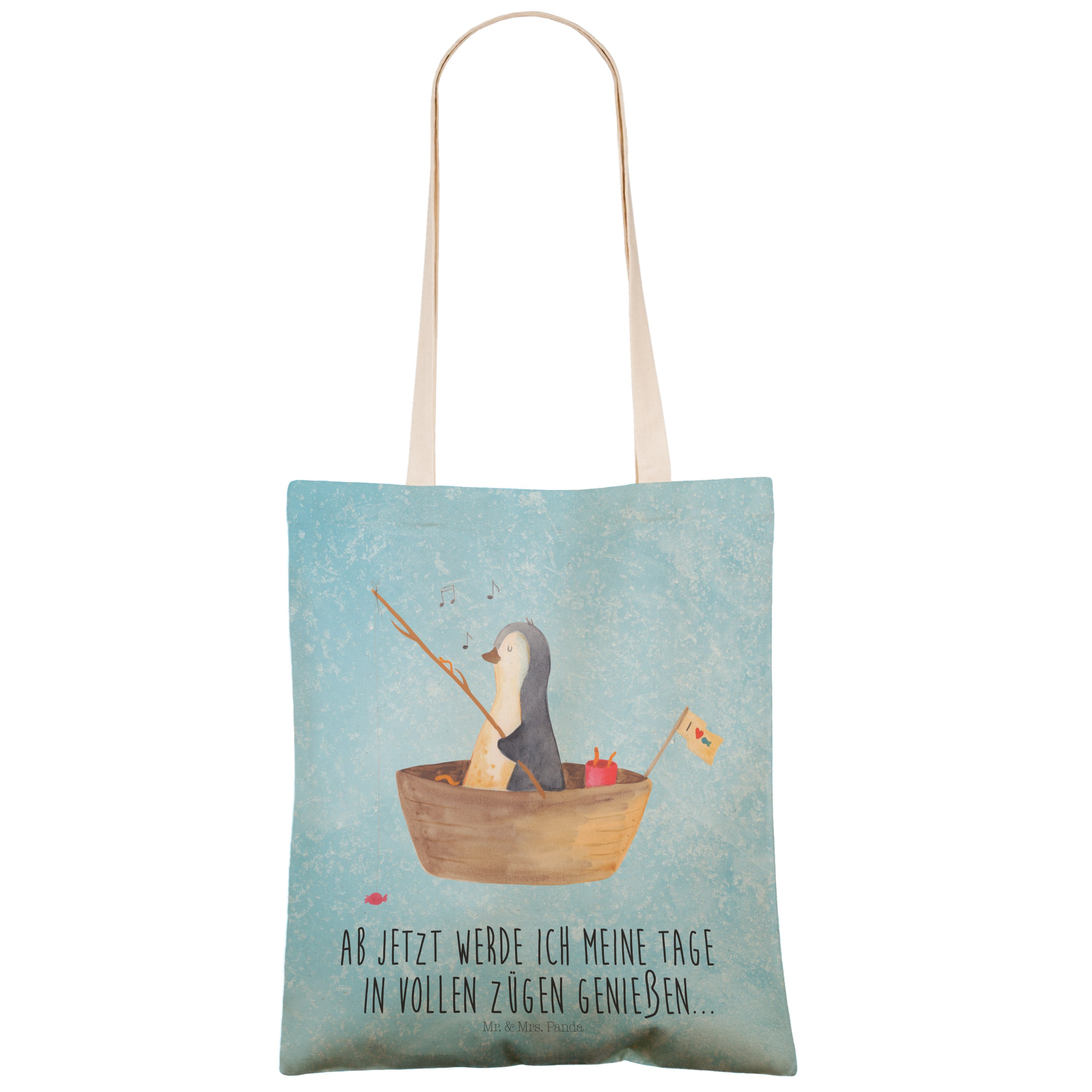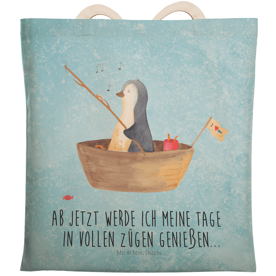Einkaufstasche Pinguin Angelboot - mit Spruch