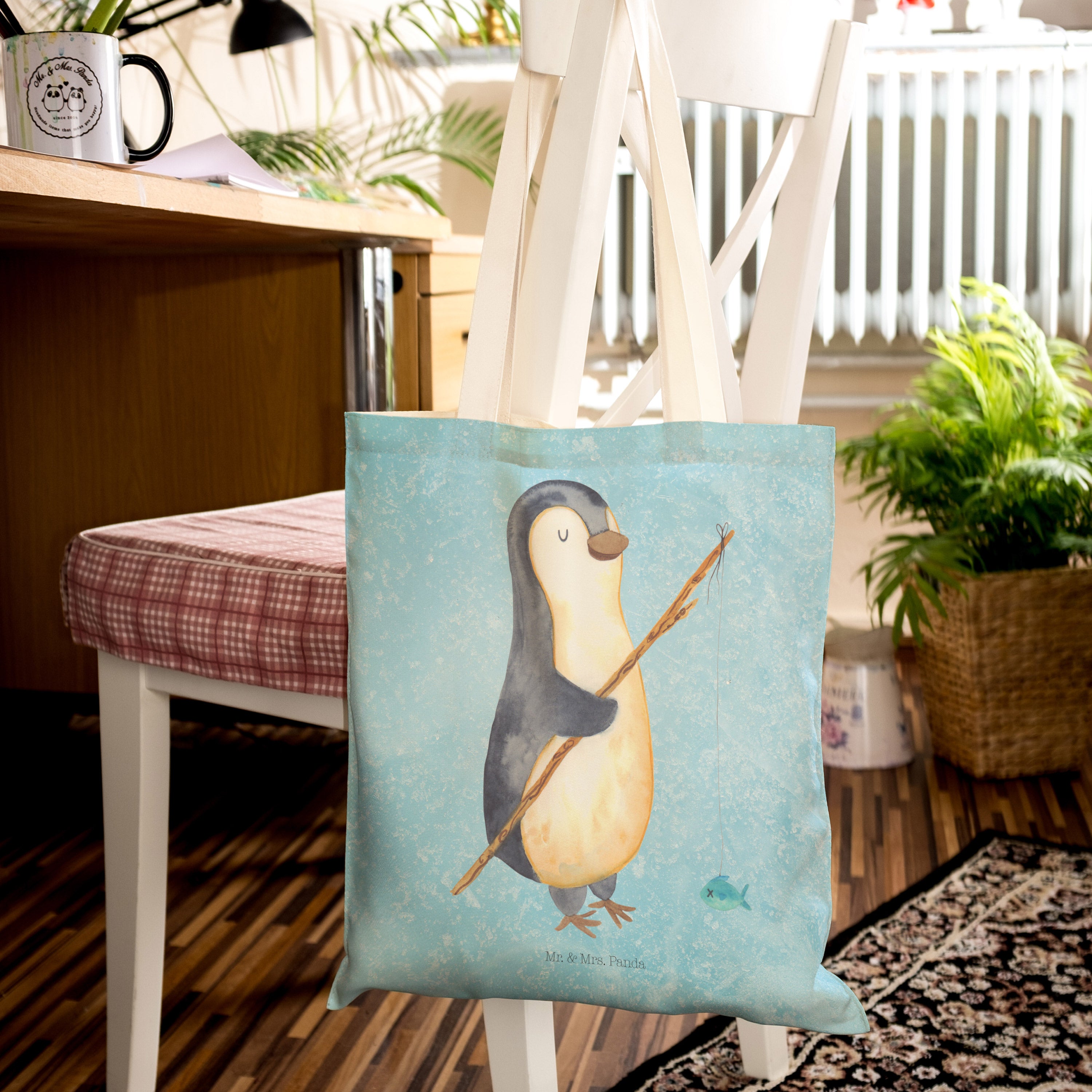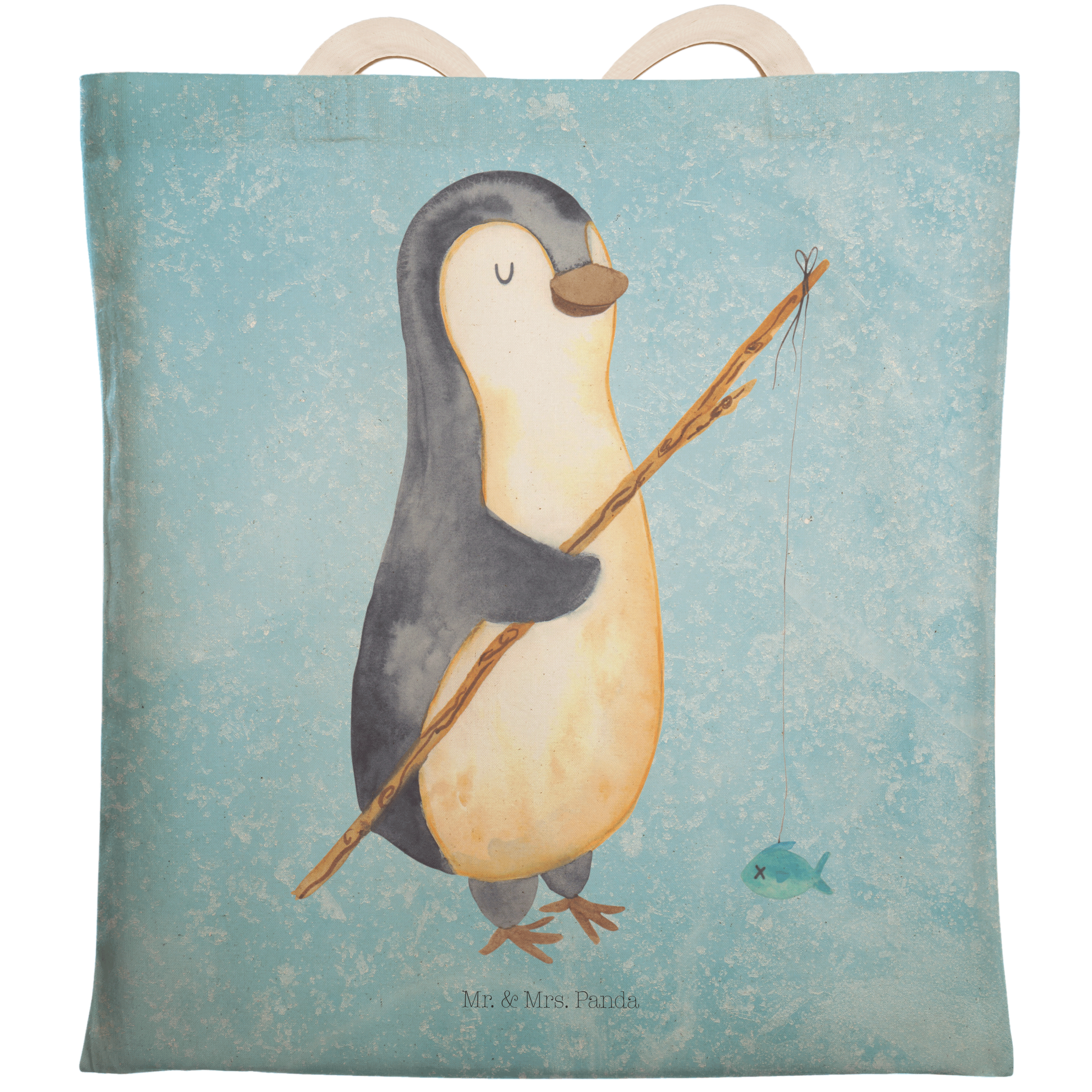 Einkaufstasche Pinguin Angler Tragetasche, Tasche, Beutel, Stofftasche, Baumwolltasche, Umhängetasche, Shopper, Pinguin, Pinguine, Angeln, Angler, Tagträume, Hobby, Plan, Planer, Tagesplan, Neustart, Motivation, Geschenk, Freundinnen, Geschenkidee, Urlaub, Wochenende