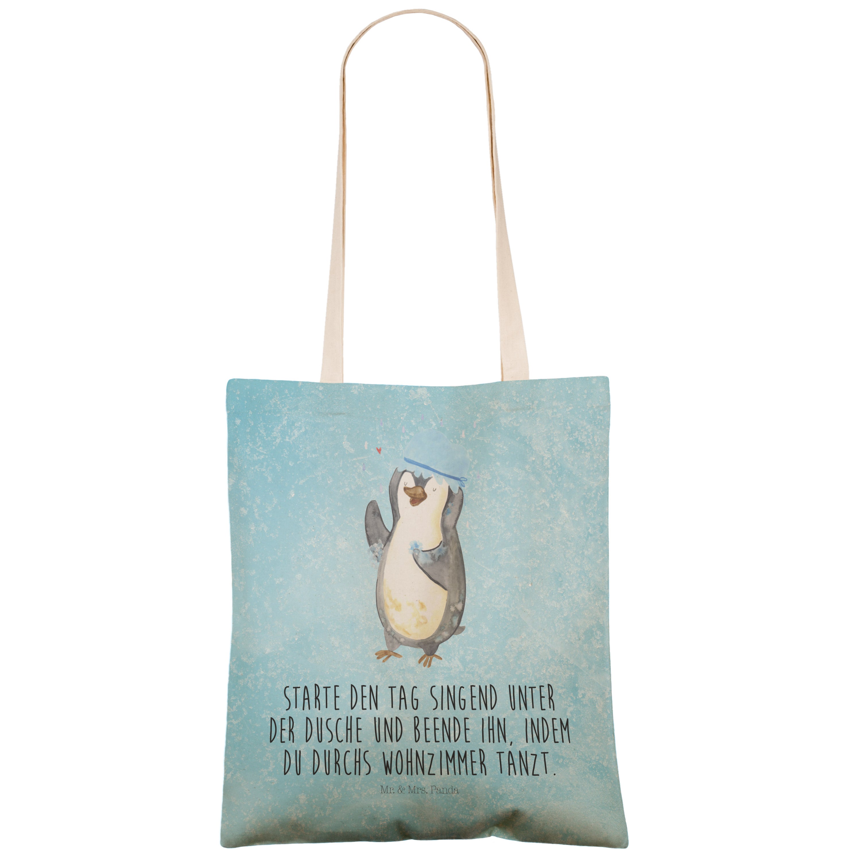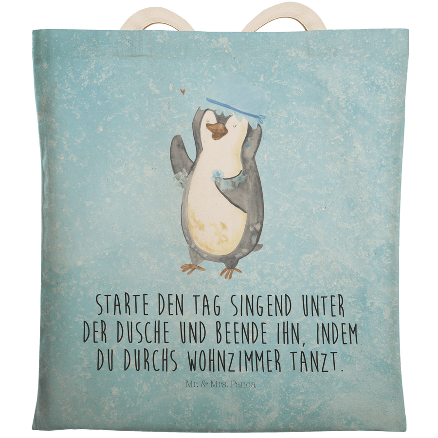 Einkaufstasche Pinguin duscht Pinguin, Pinguine, Dusche, duschen, Lebensmotto, Motivation, Neustart, Neuanfang, glücklich sein,  Tragetasche, Tasche, Beutel, Stofftasche, Baumwolltasche,  Umhängetasche,  Shopper  Pinguin