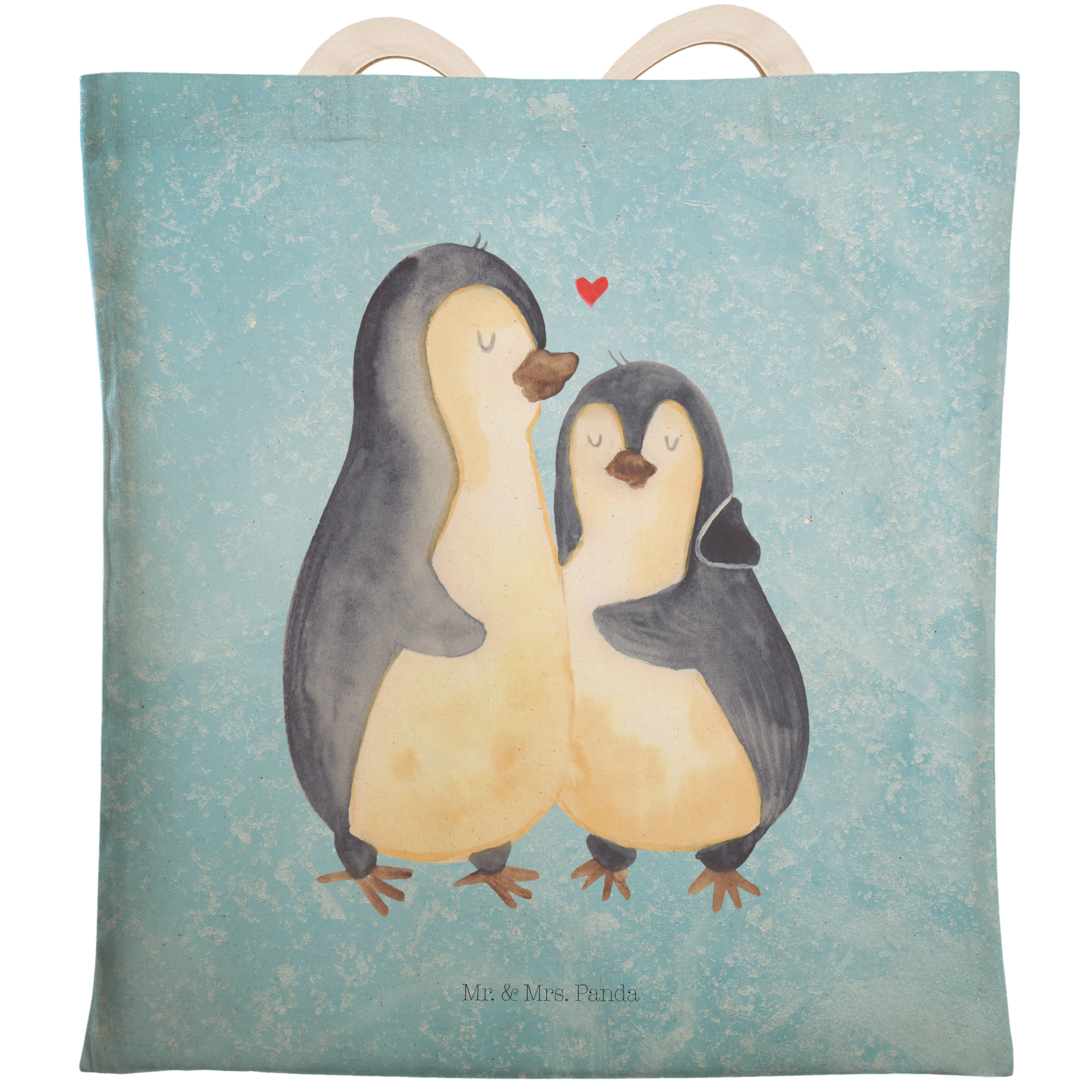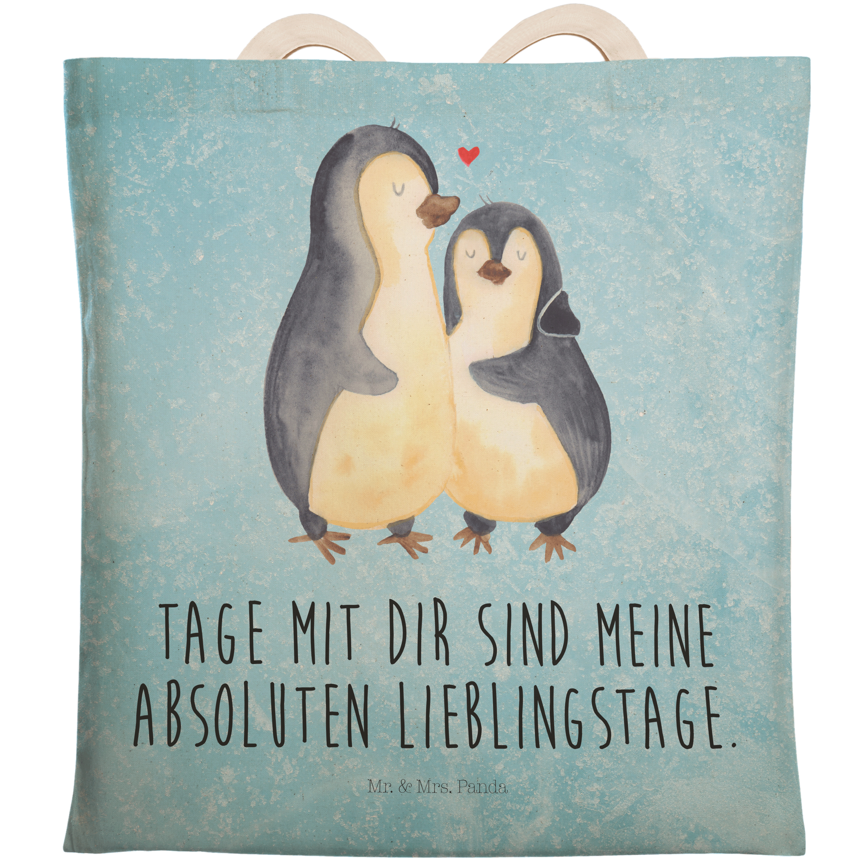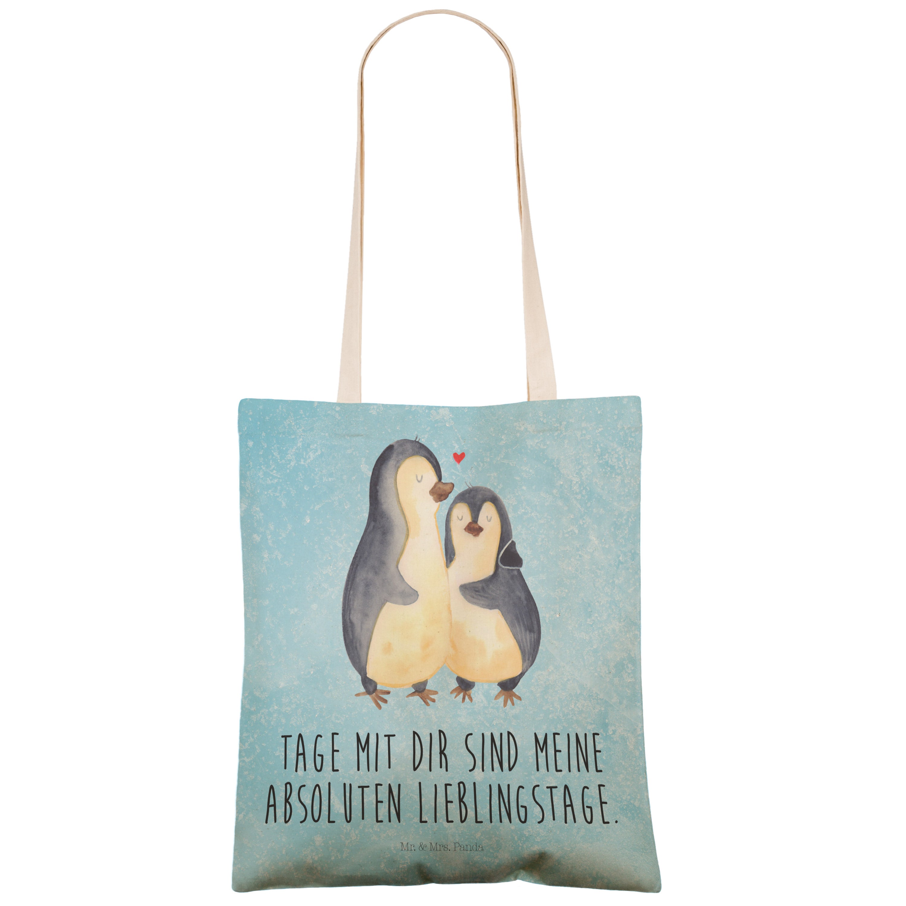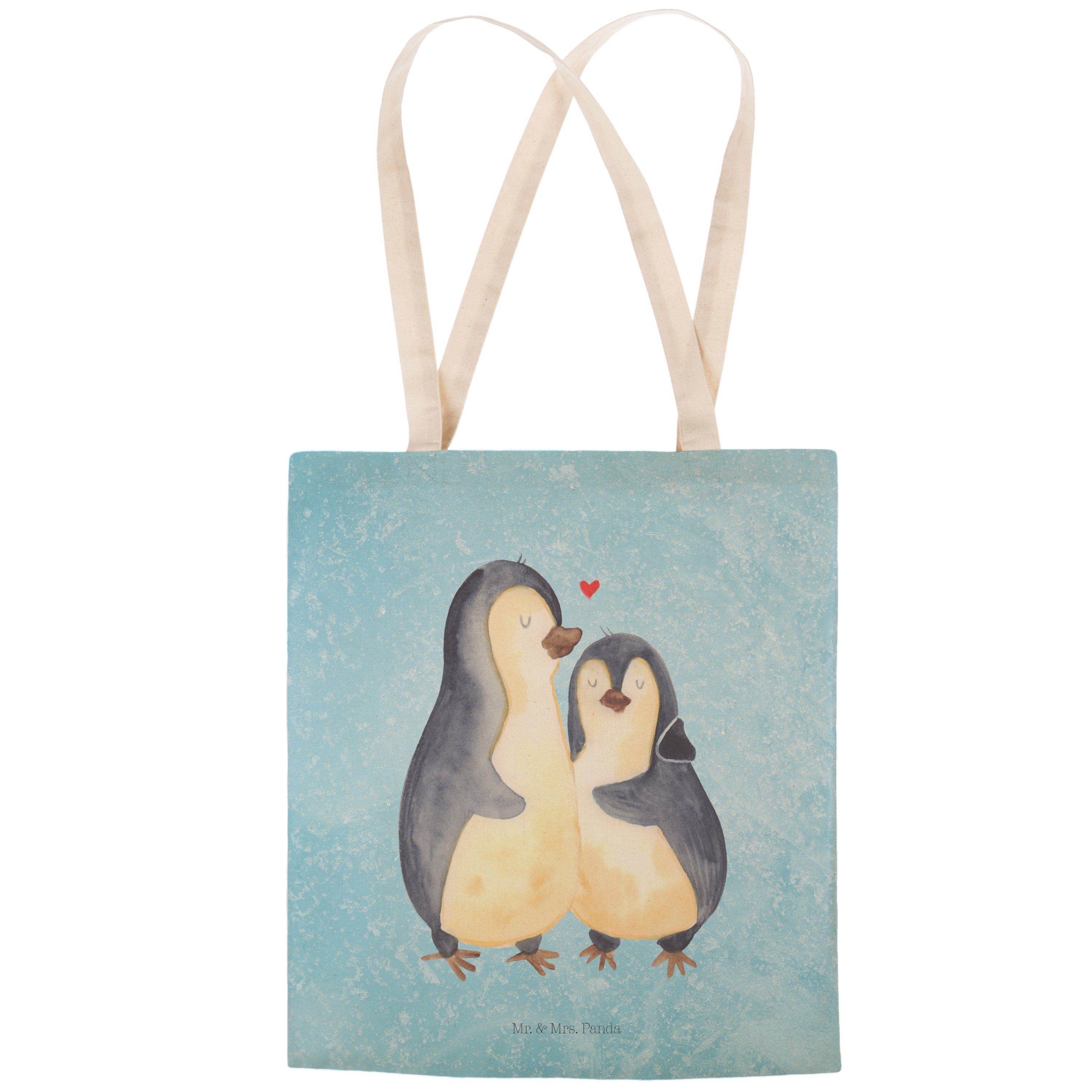 Einkaufstasche Pinguin umarmend Tragetasche, Tasche, Beutel, Stofftasche, Baumwolltasche, Umhängetasche, Shopper, Pinguin, Liebe, Liebespaar, Liebesbeweis, Liebesgeschenk, Verlobung, Jahrestag, Hochzeitstag, Hochzeit, Hochzeitsgeschenk