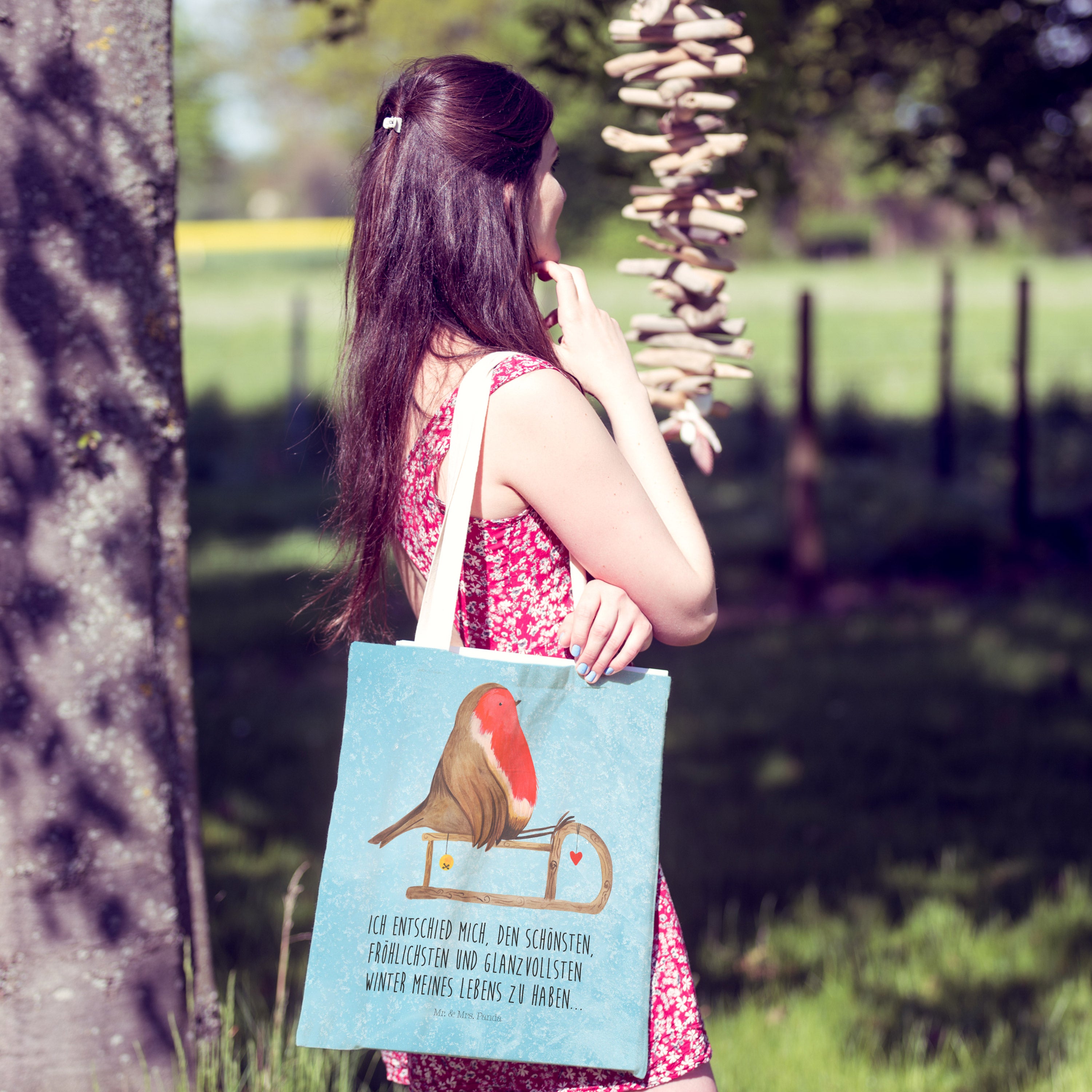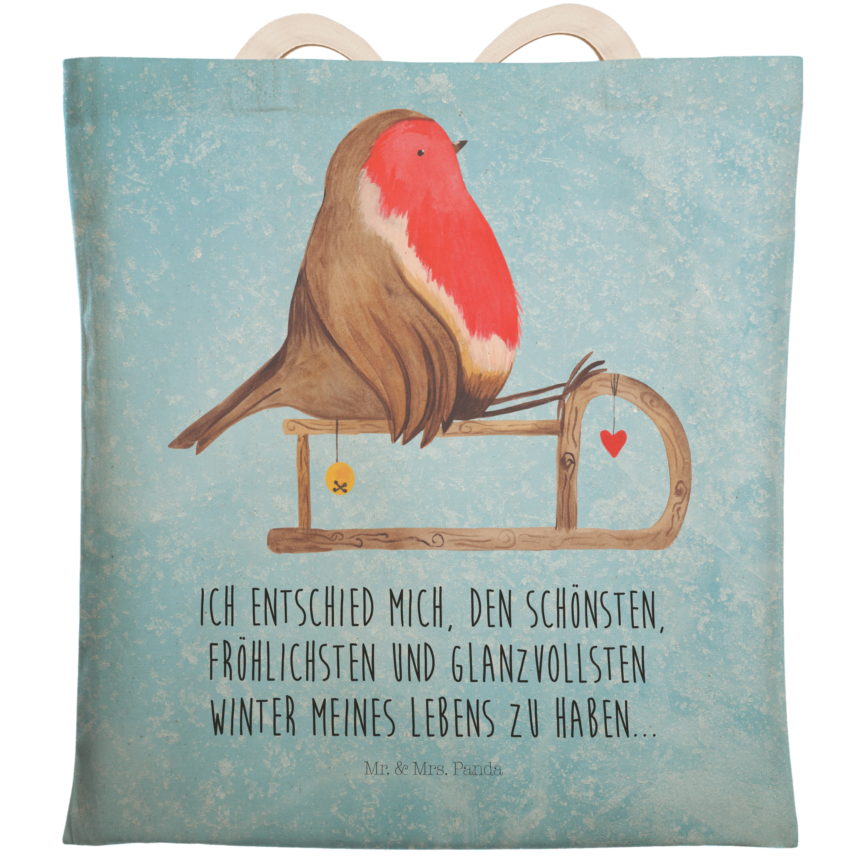 Einkaufstasche Rotkehlchen Schlitten - mit Spruch