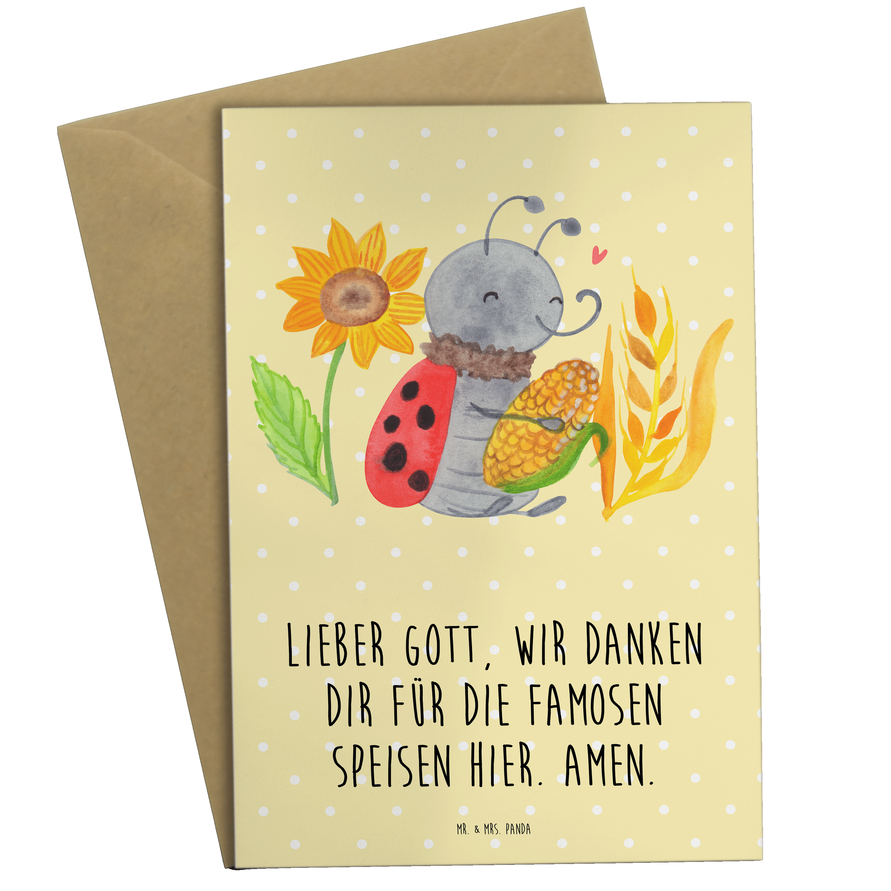 Bring die Schönheit des herbstlichen Erntedanks zu Dir nach Hause mit unserem liebevollen Marienkäfer namens Smörle. Tauche ein in eine bunte Herbstszene, in der ein süßer Marienkäfer voller Zufriedenheit einen Maiskolben umarmt. Mit Hingabe und Sorgfalt von Mr. & Mrs. Panda handgezeichnet, strahlt er Glück und Dankbarkeit aus und lässt so jedes Herz höher schlagen. Er steht inmitten der Fülle der Natur, links neben ihm erhebt sich eine prachtvoll blühende Sonnenblume, rechts von ihm eine golden schimmernde Getreidegarbe. Der Marienkäfer ist das verzaubernde Zentrum dieses herbstlichen Motivs und symbolisiert Glück, Zufriedenheit und Dankbarkeit.
