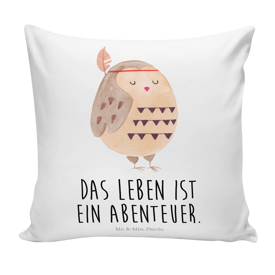 40x40 Kissen Eule Federschmuck - mit Spruch - Weiß