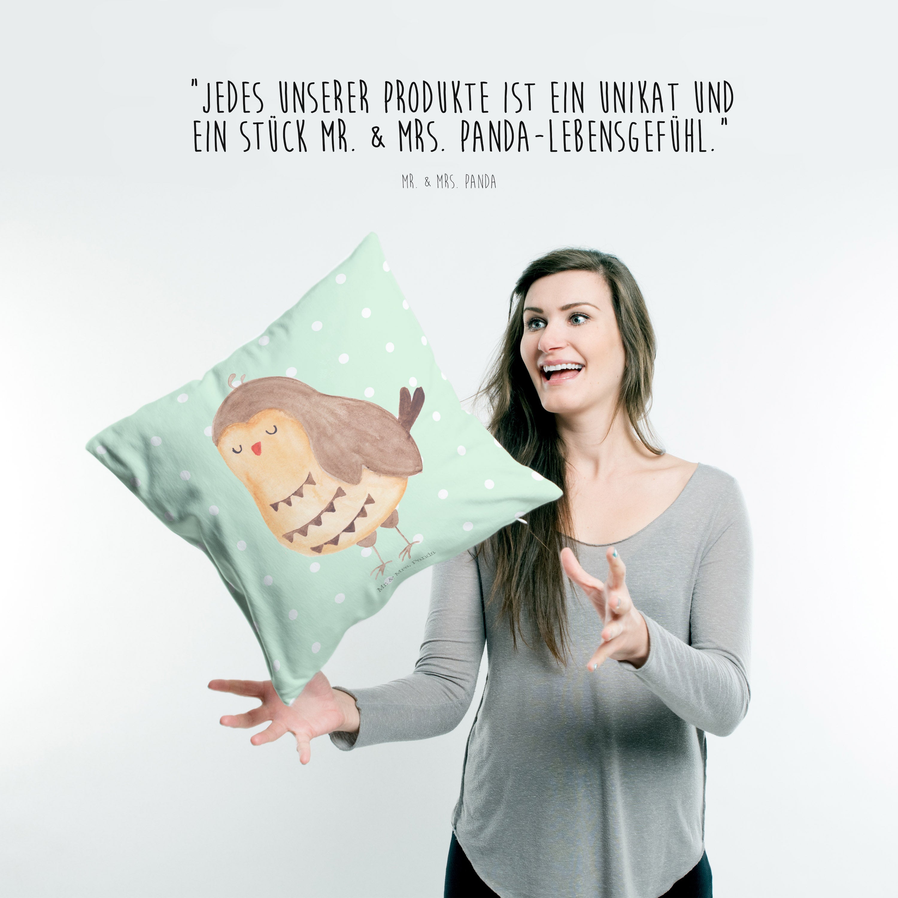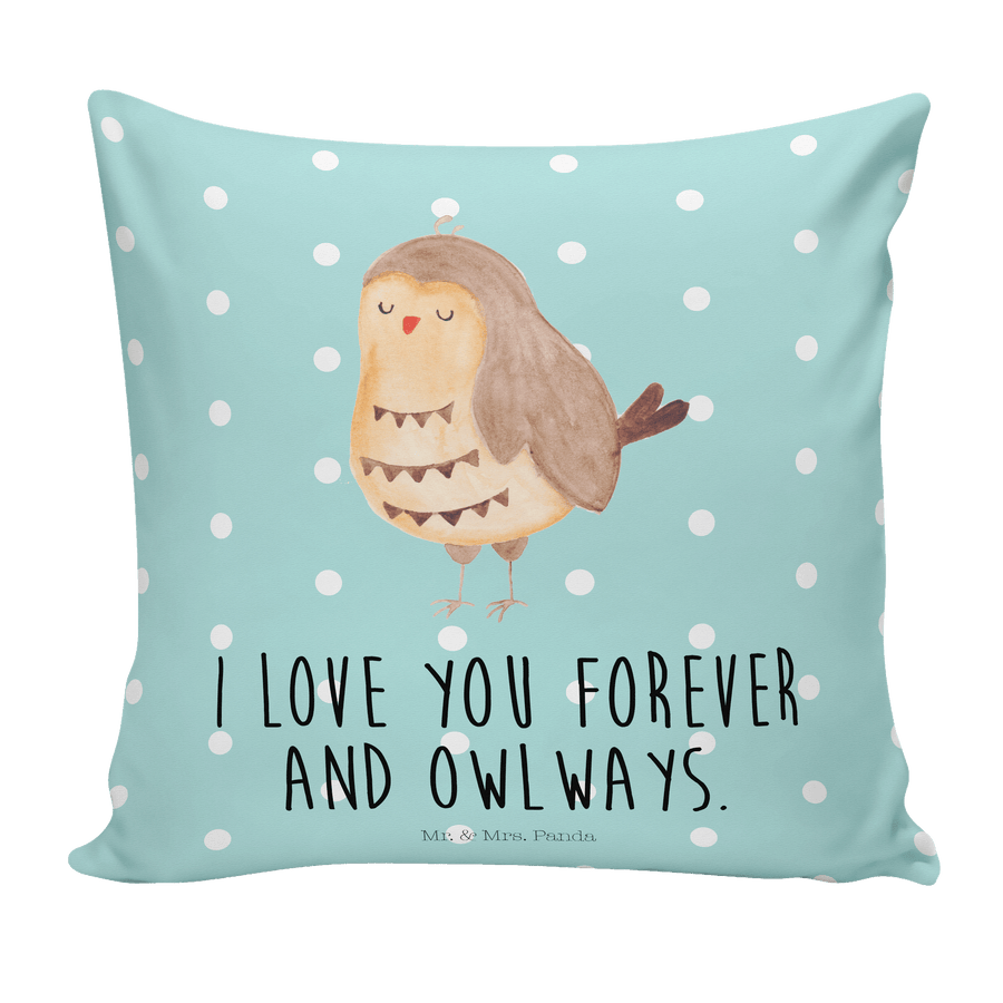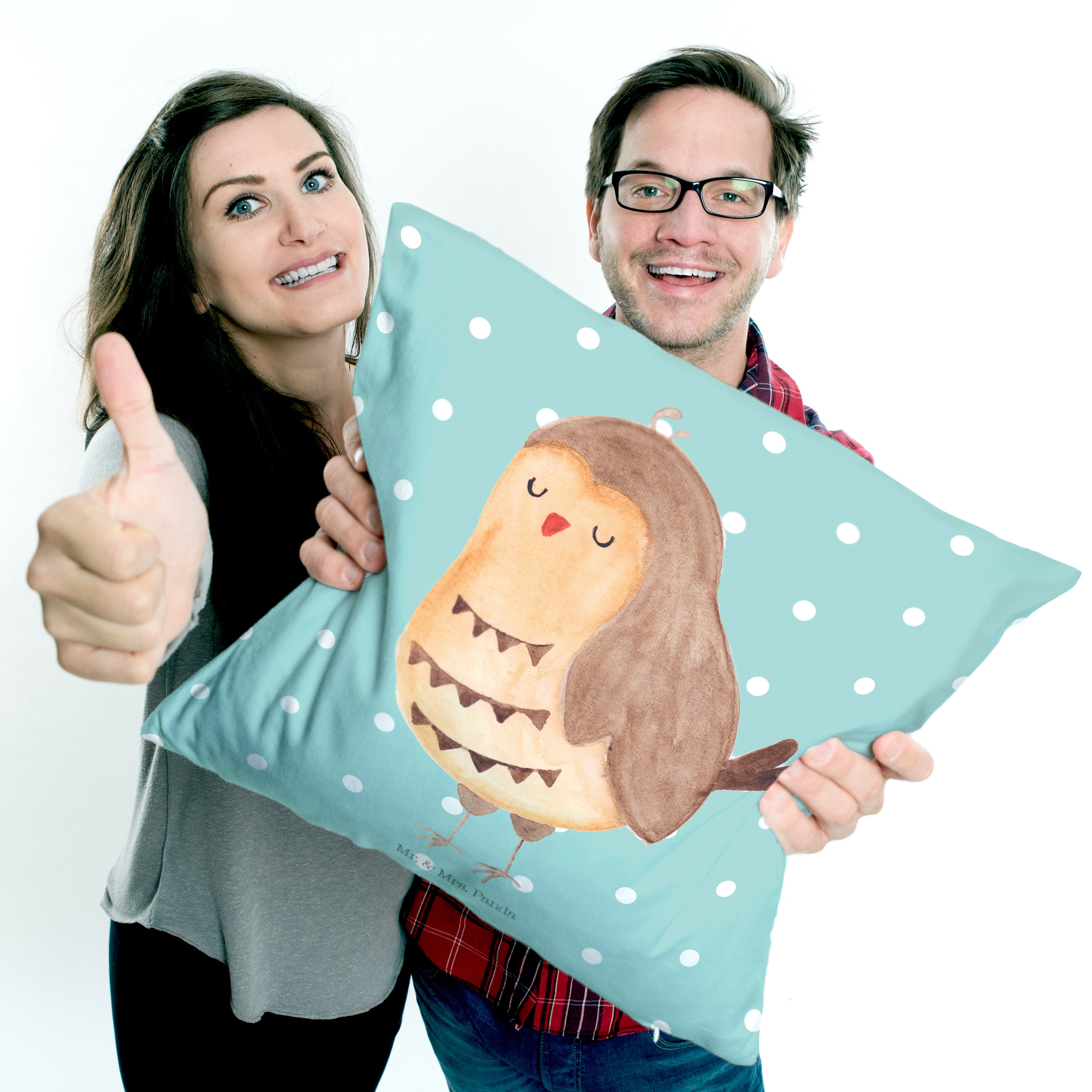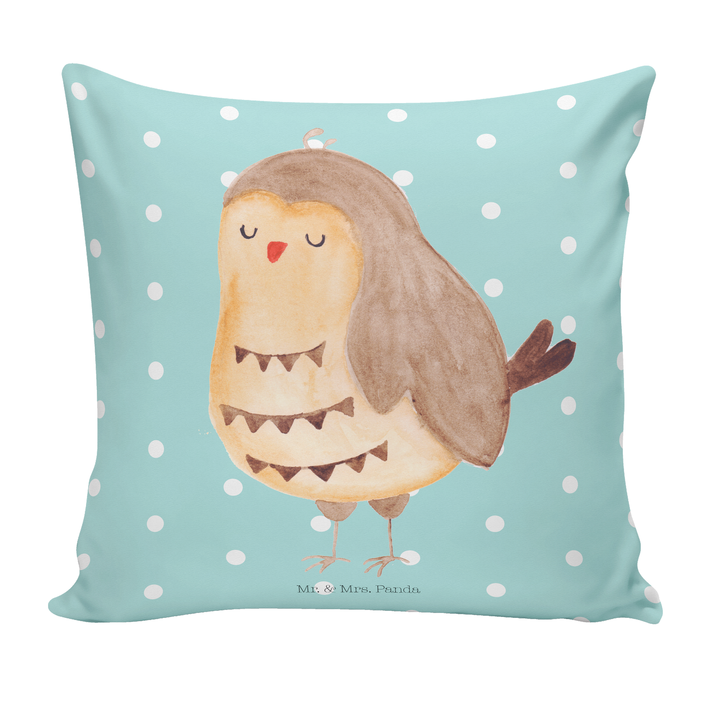 40x40 Kissen Eule Zufrieden - mit Spruch - Türkis Pastell
