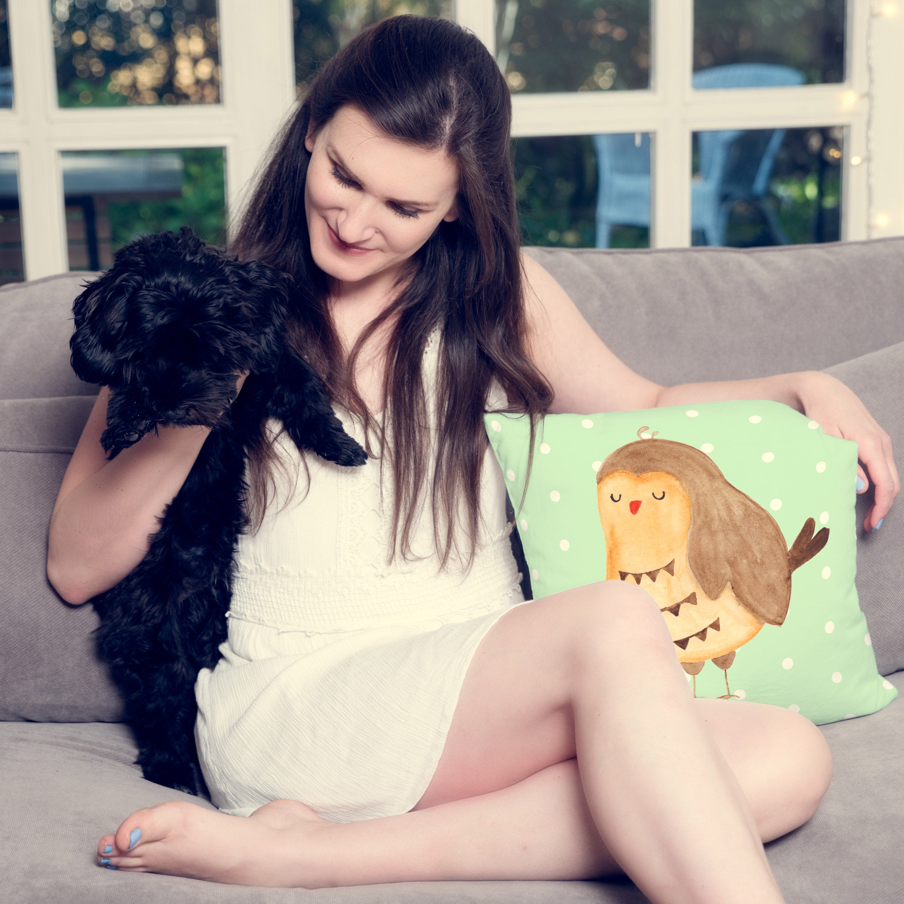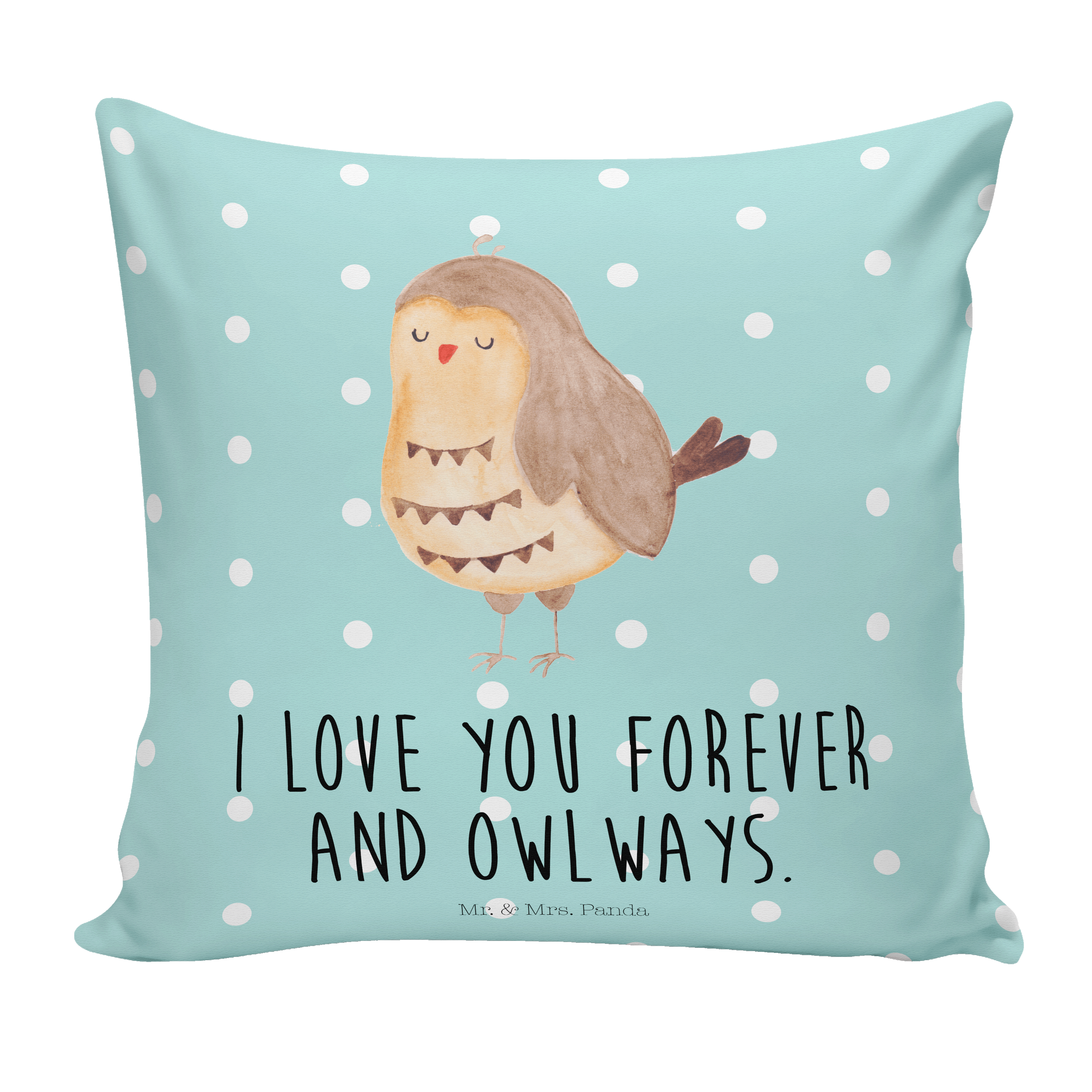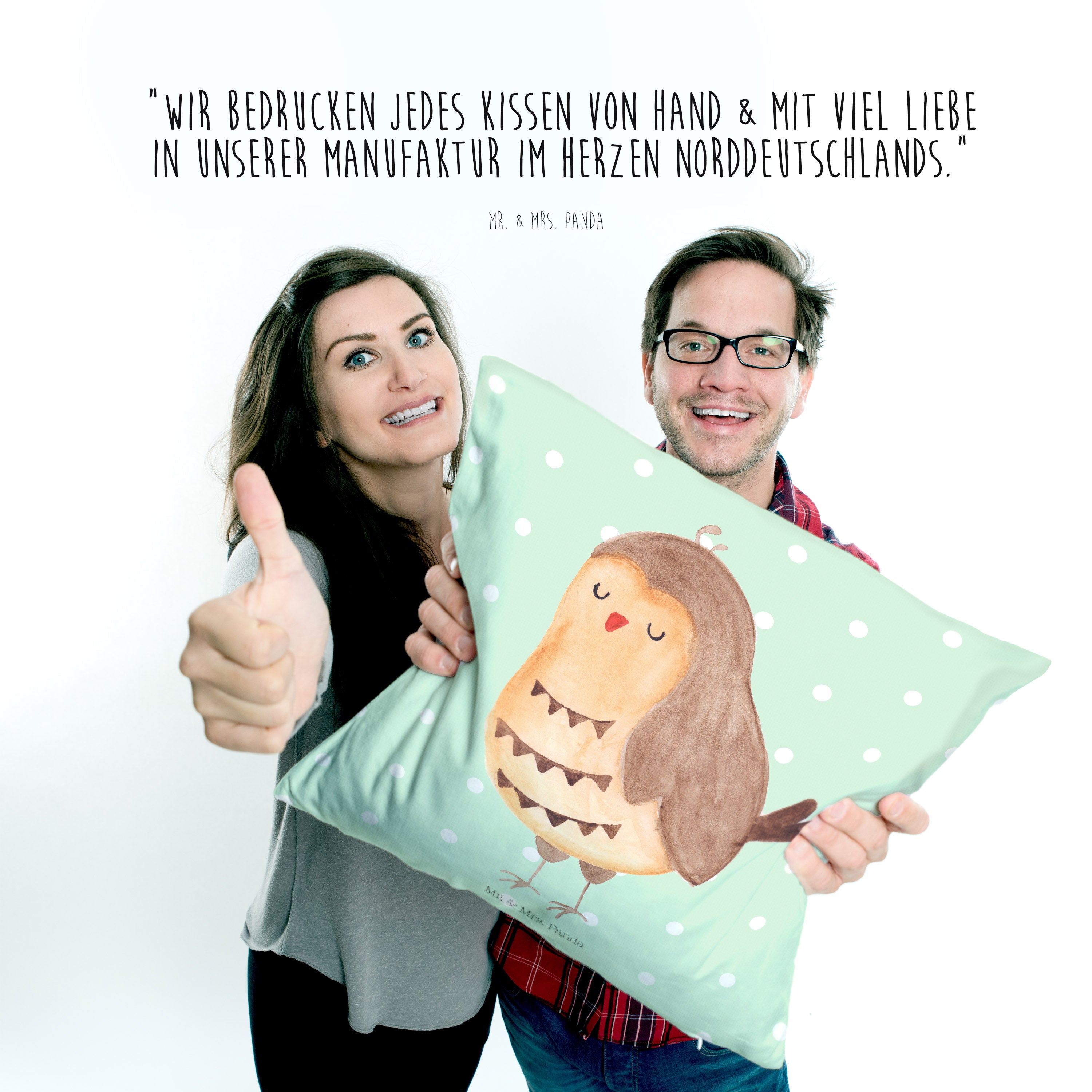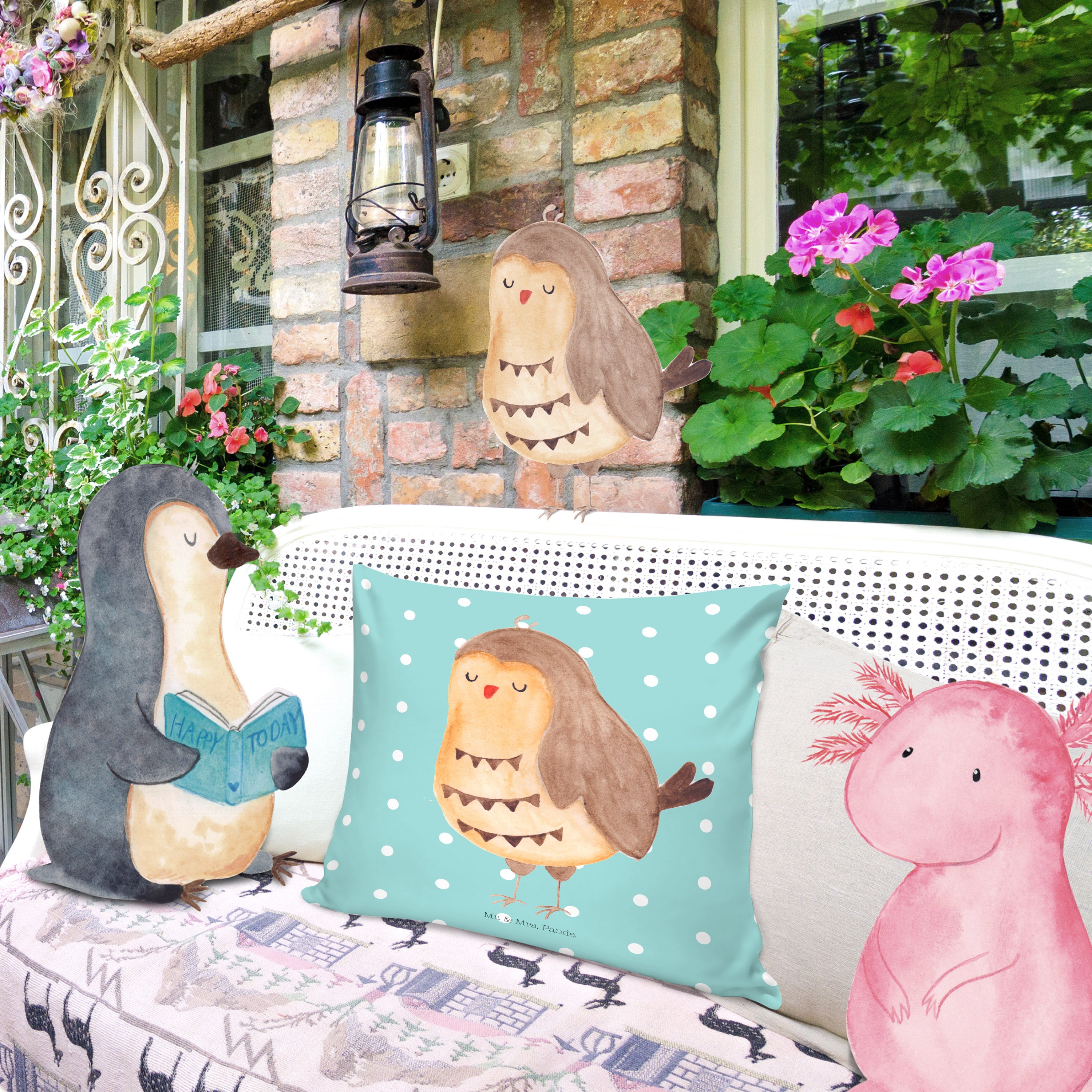 40x40 Kissen Eule Zufrieden - mit Spruch - Türkis Pastell