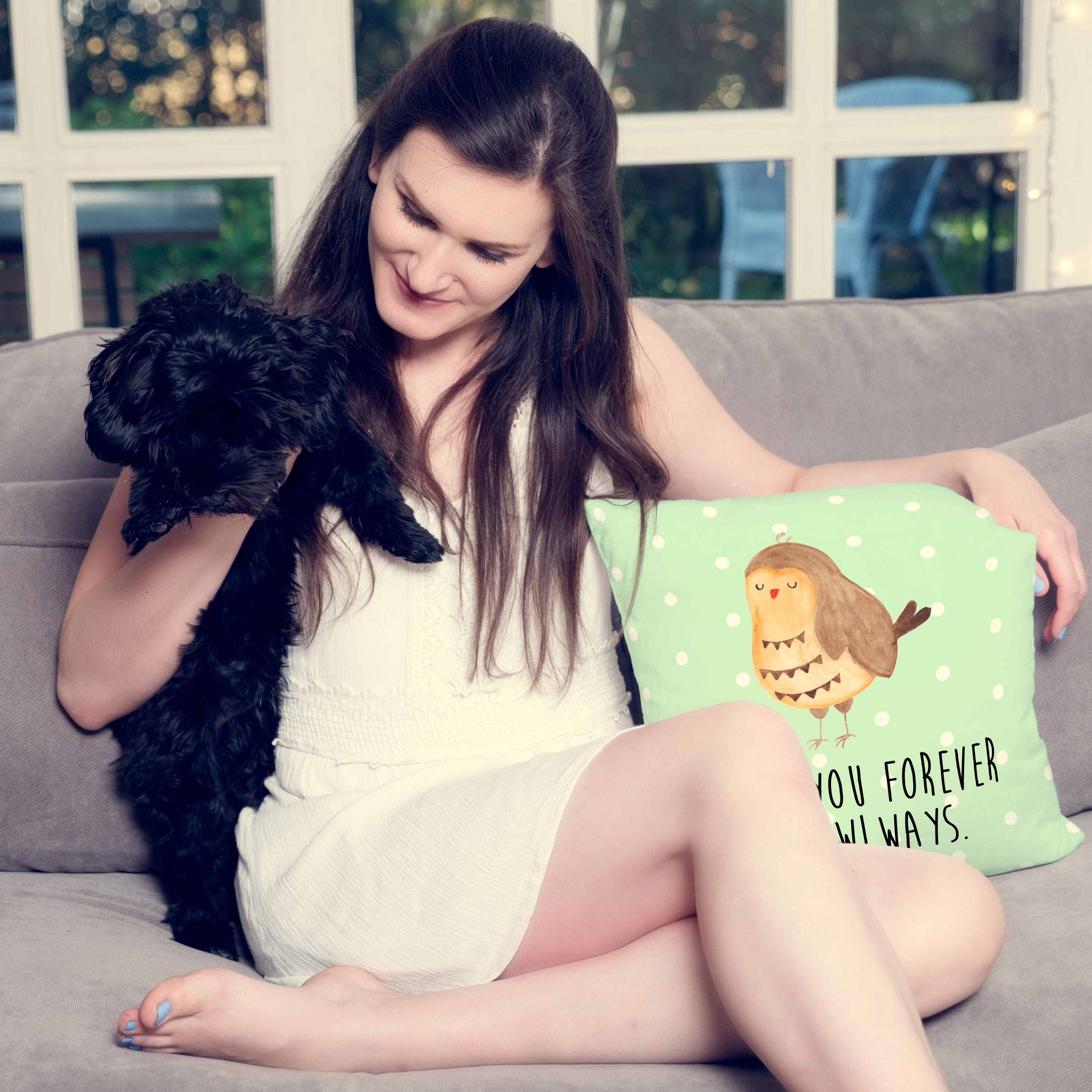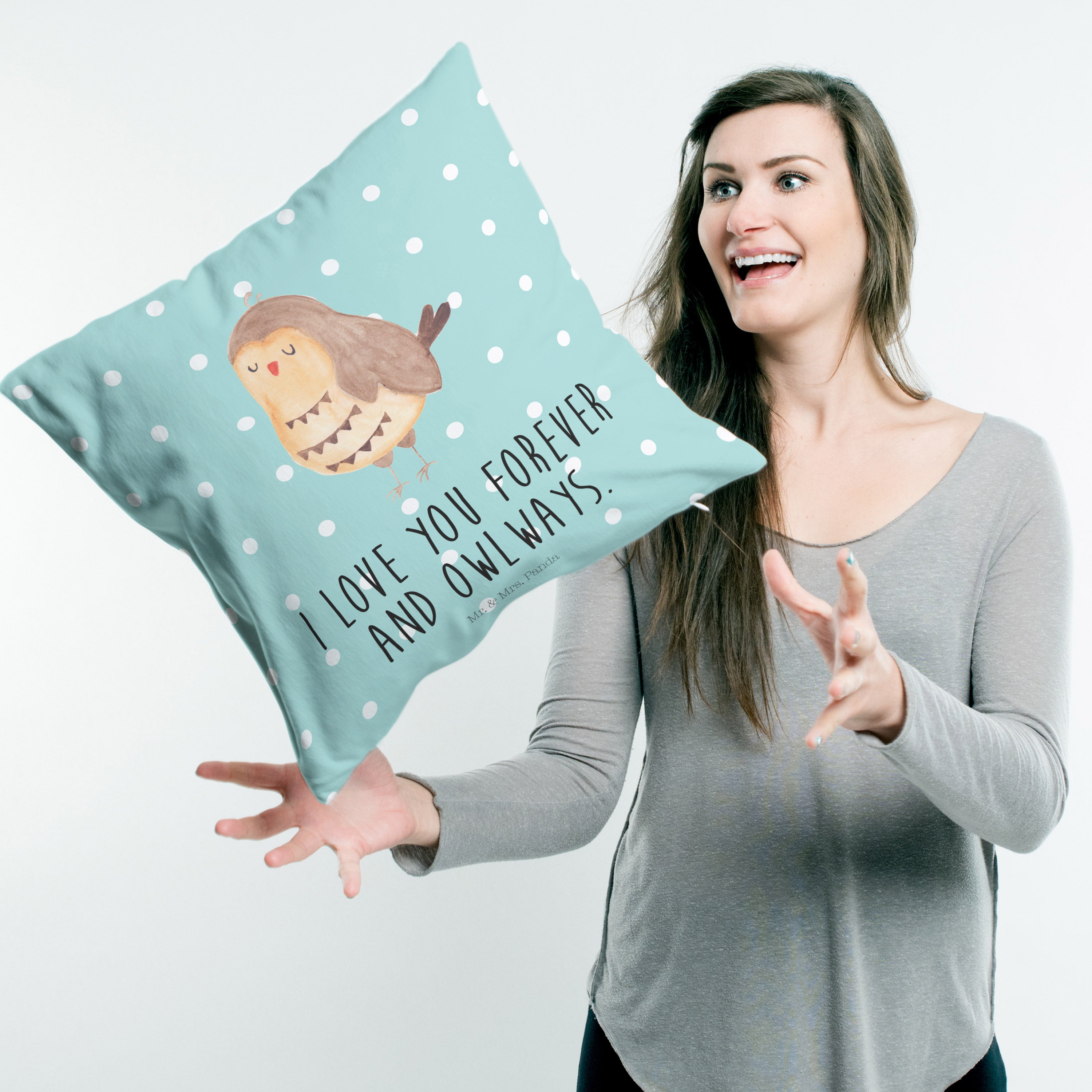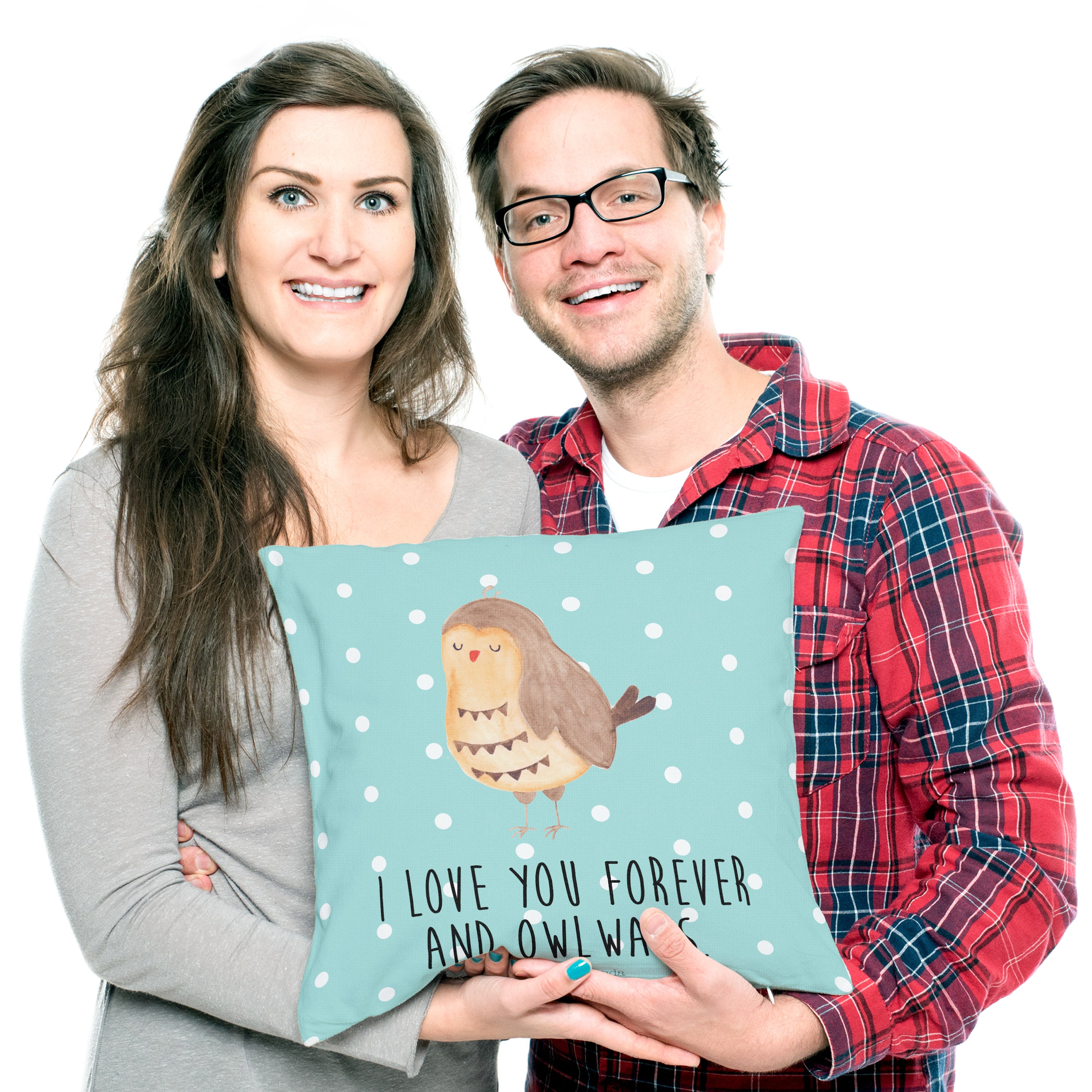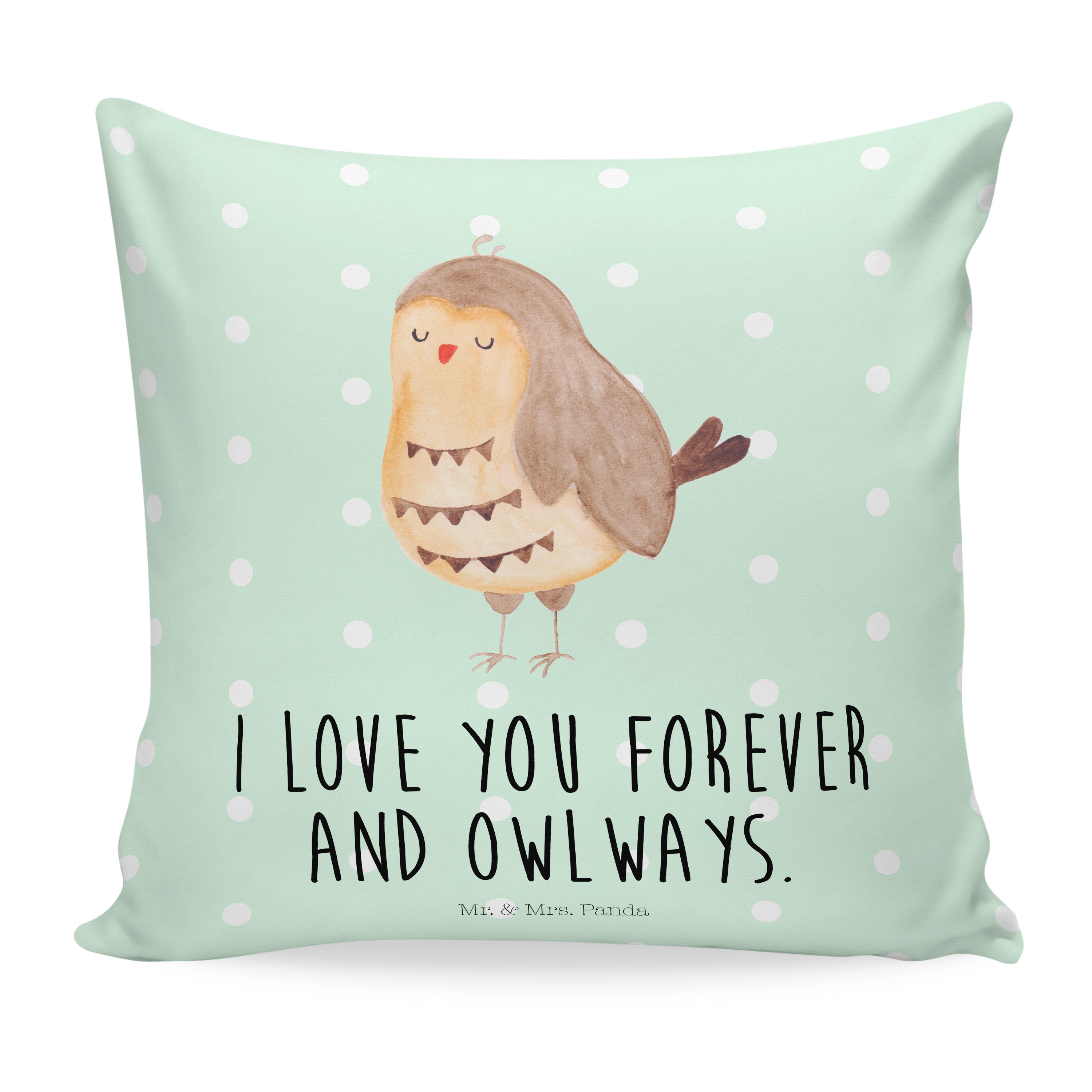 40x40 Kissen Eule Zufrieden - mit Spruch - Türkis Pastell