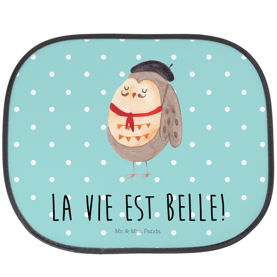 Auto Sonnenschutz Eule Französisch - mit Spruch - Türkis Pastell