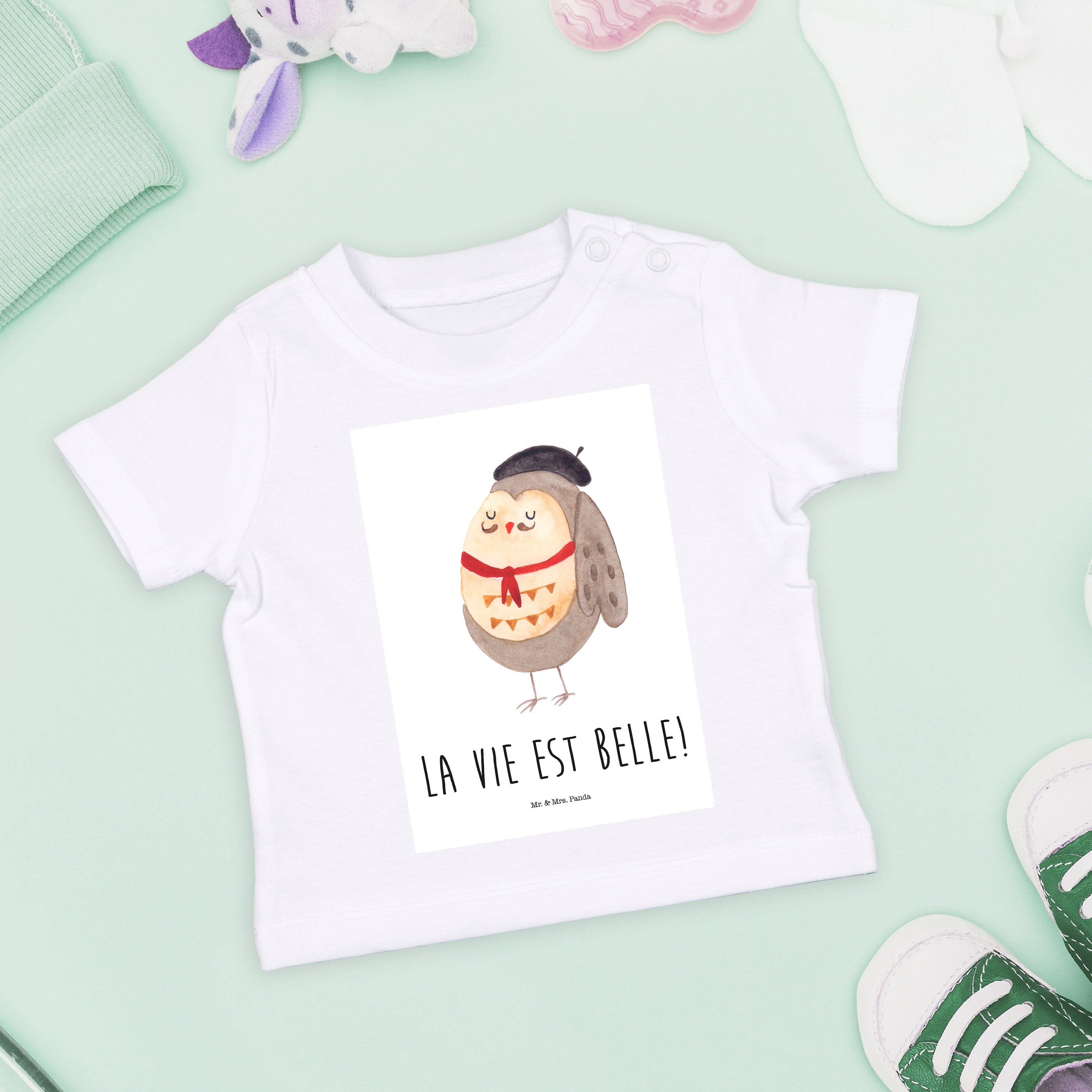 Organic Baby Shirt Eule Französisch - 6. - 12. Monat - mit Spruch