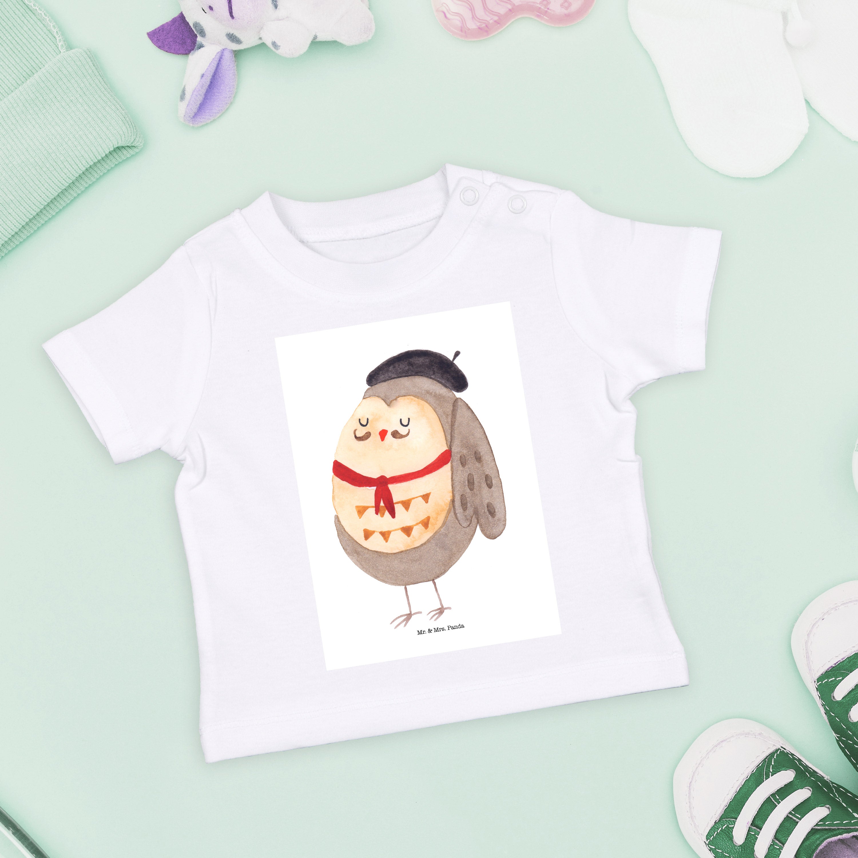 Entdecke Eule Französisch von Mr. & Mrs. Panda, ein niedliches Motiv, das dich lächeln lässt. Die Eule ist hier im französischen Look und präsentiert sich mit Hut, Fliege und Schnurrbart. Ihr Herz schlägt für Frankreich und sie bringt dir ein Stück des Landes in dein Zuhause oder Büro.