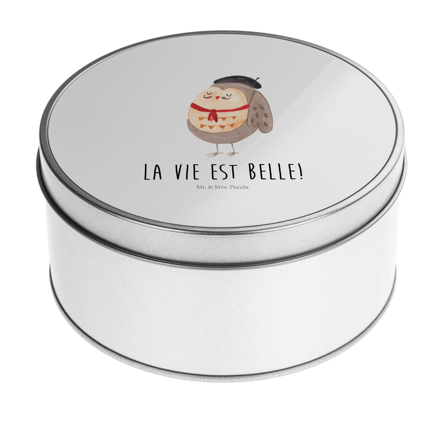 Blechdose rund Eule Französisch - mit Spruch - Weiß