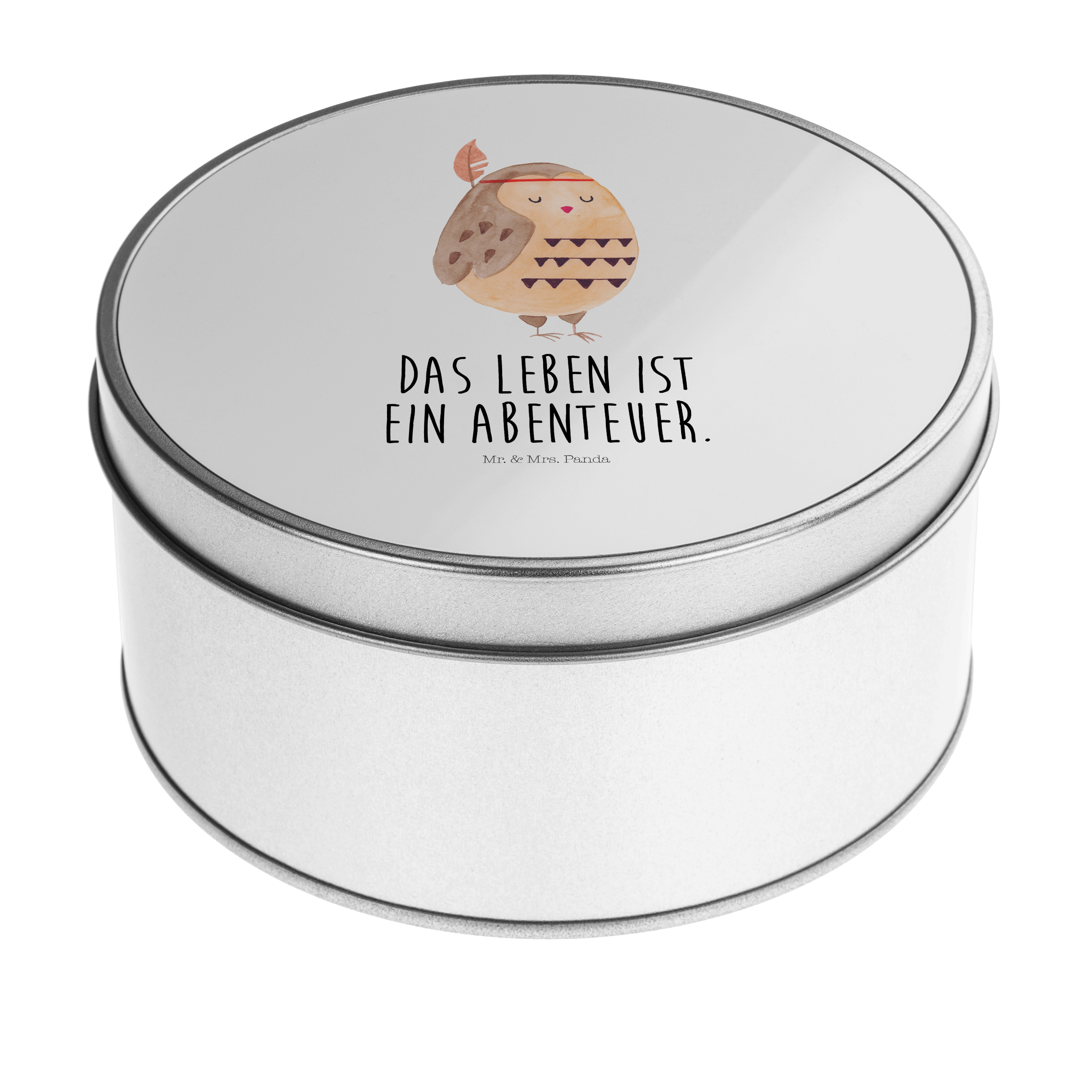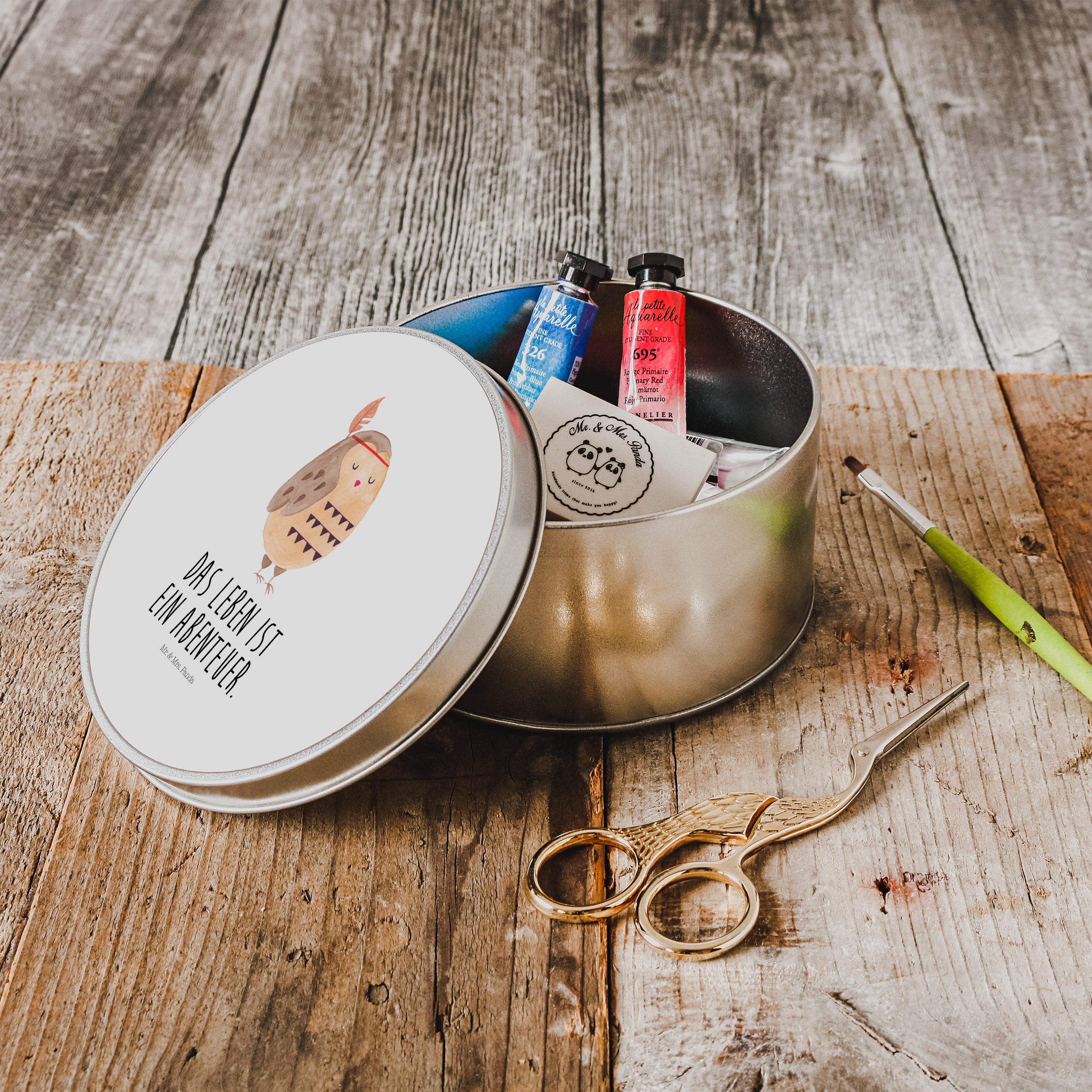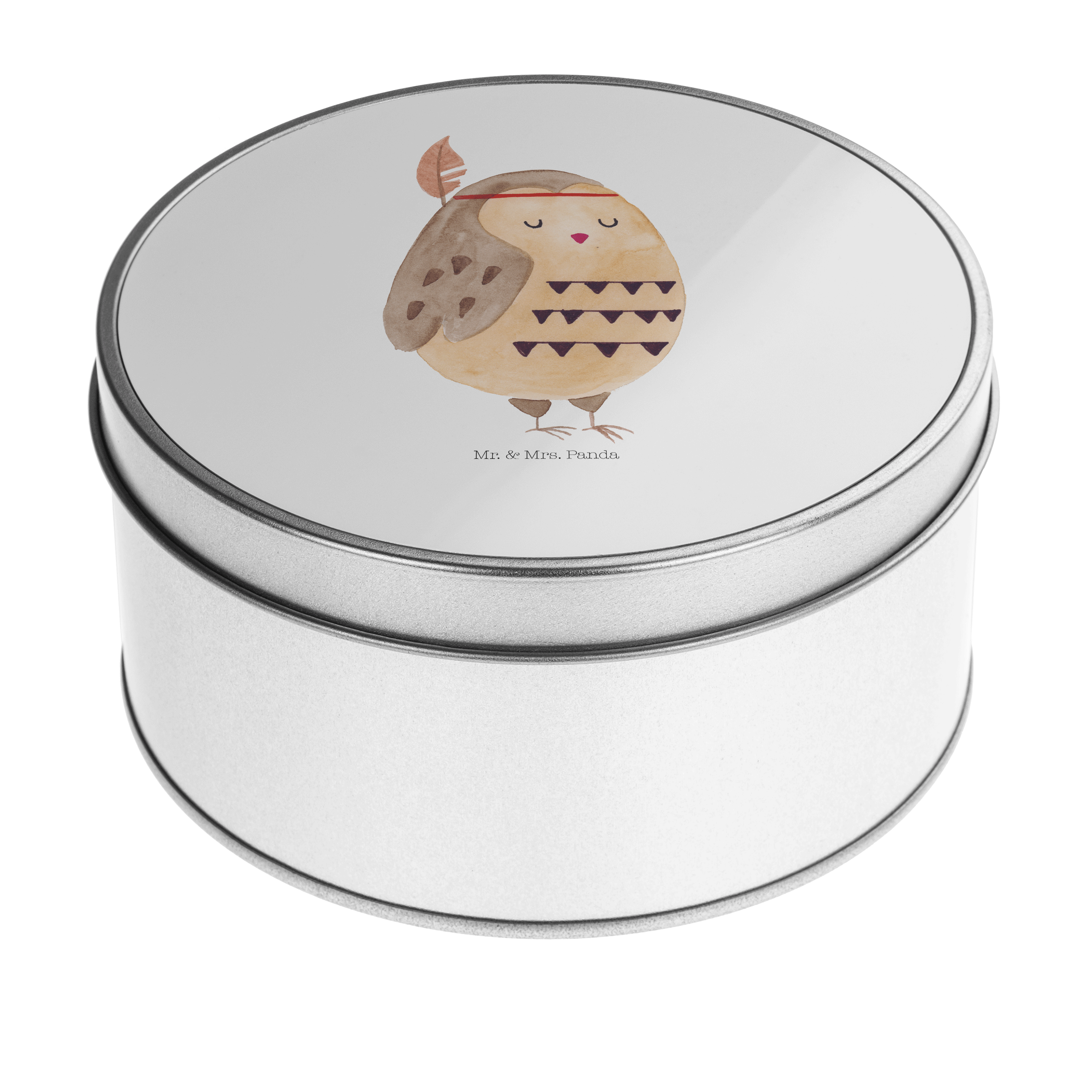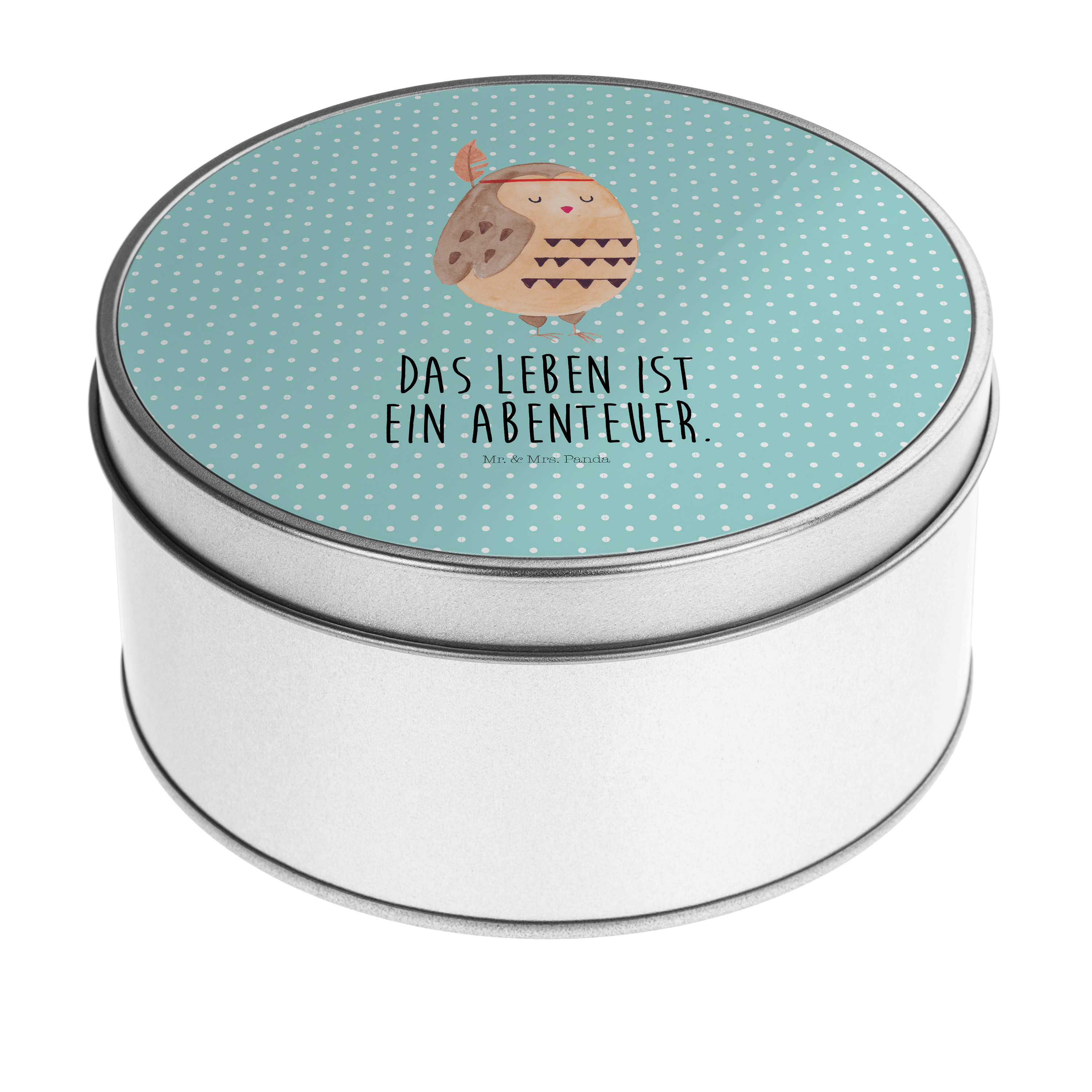 Blechdose rund Eule Federschmuck - mit Spruch - Türkis Pastell