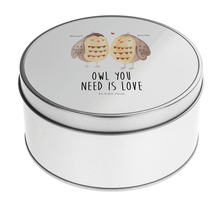 Blechdose rund Eule Liebe - mit Spruch - Weiß
