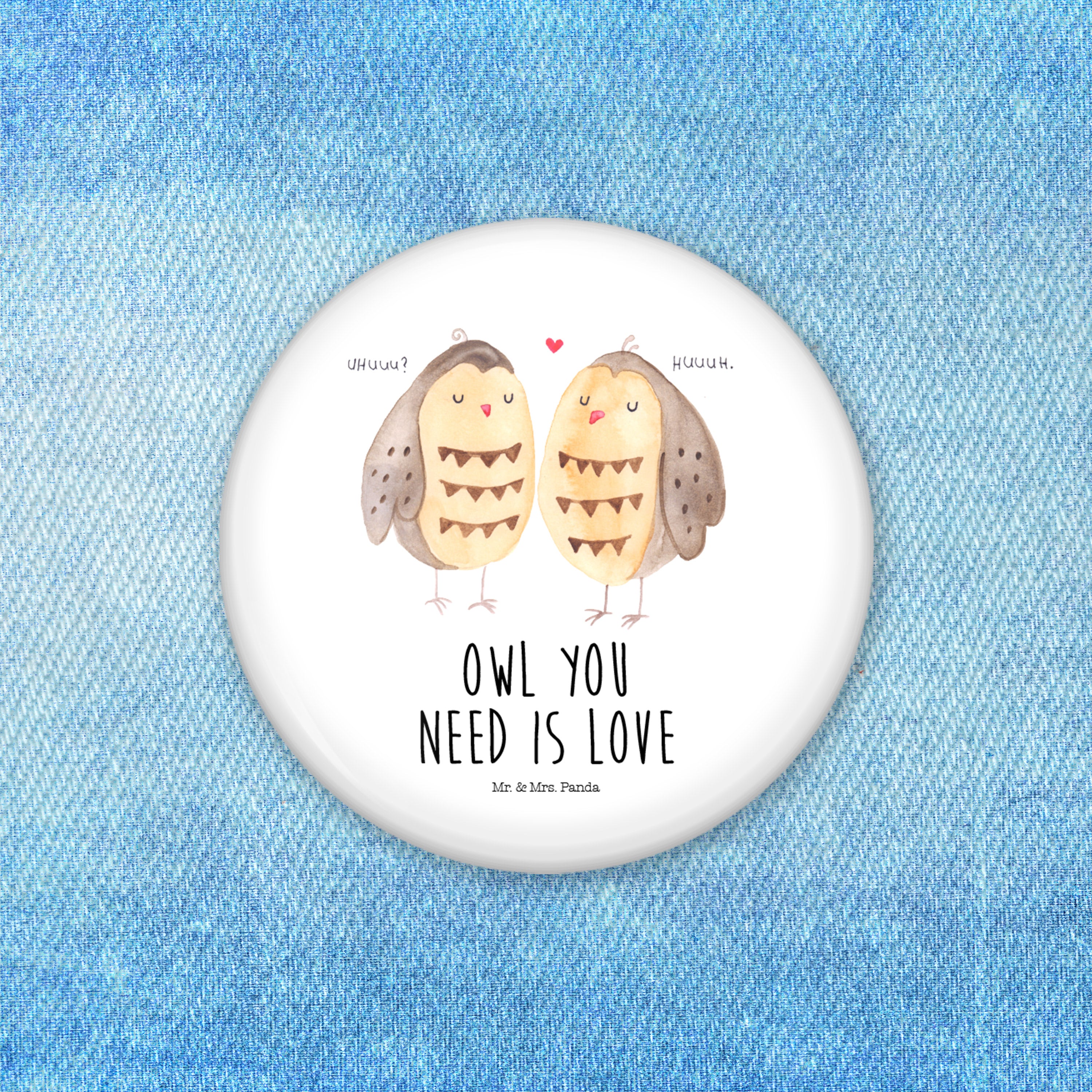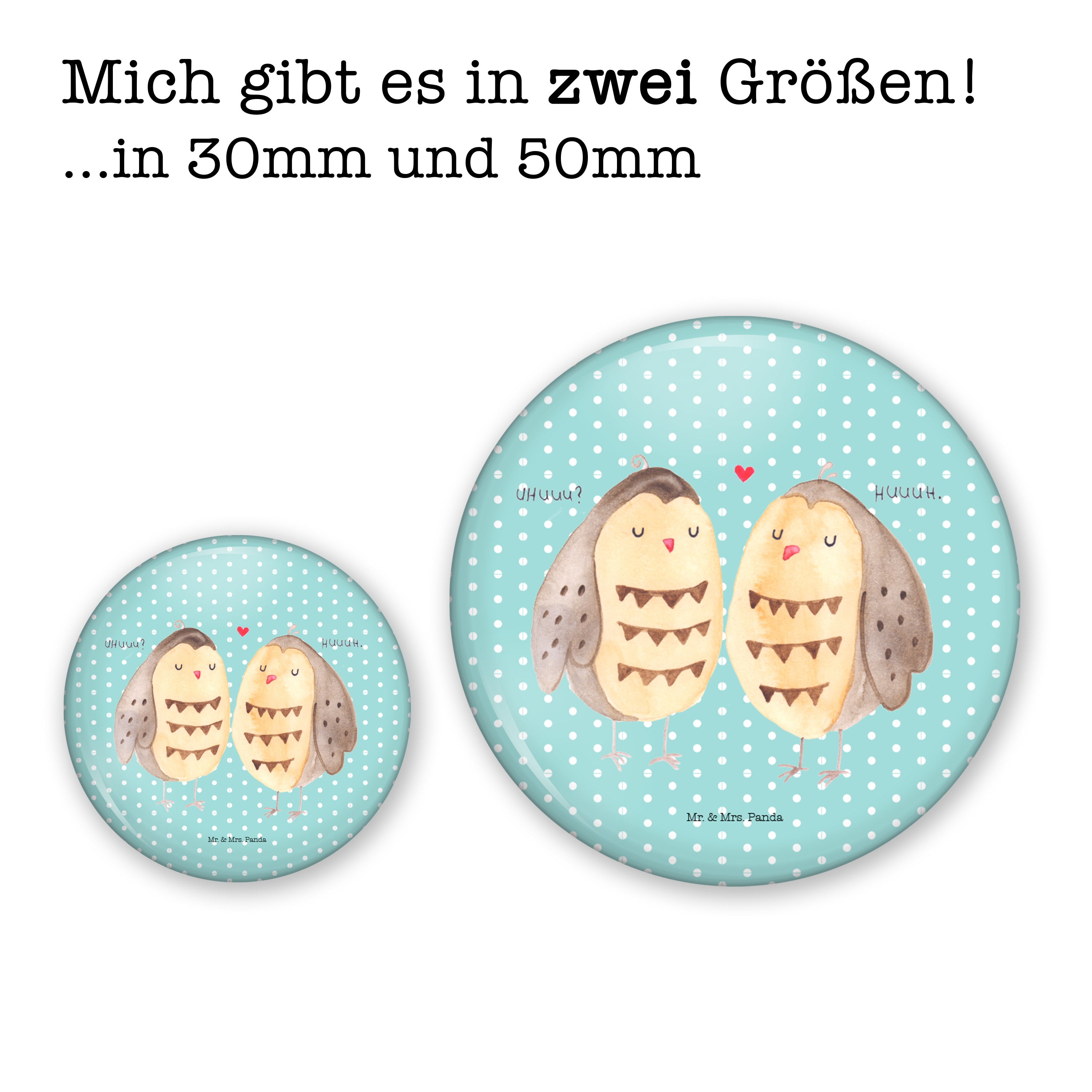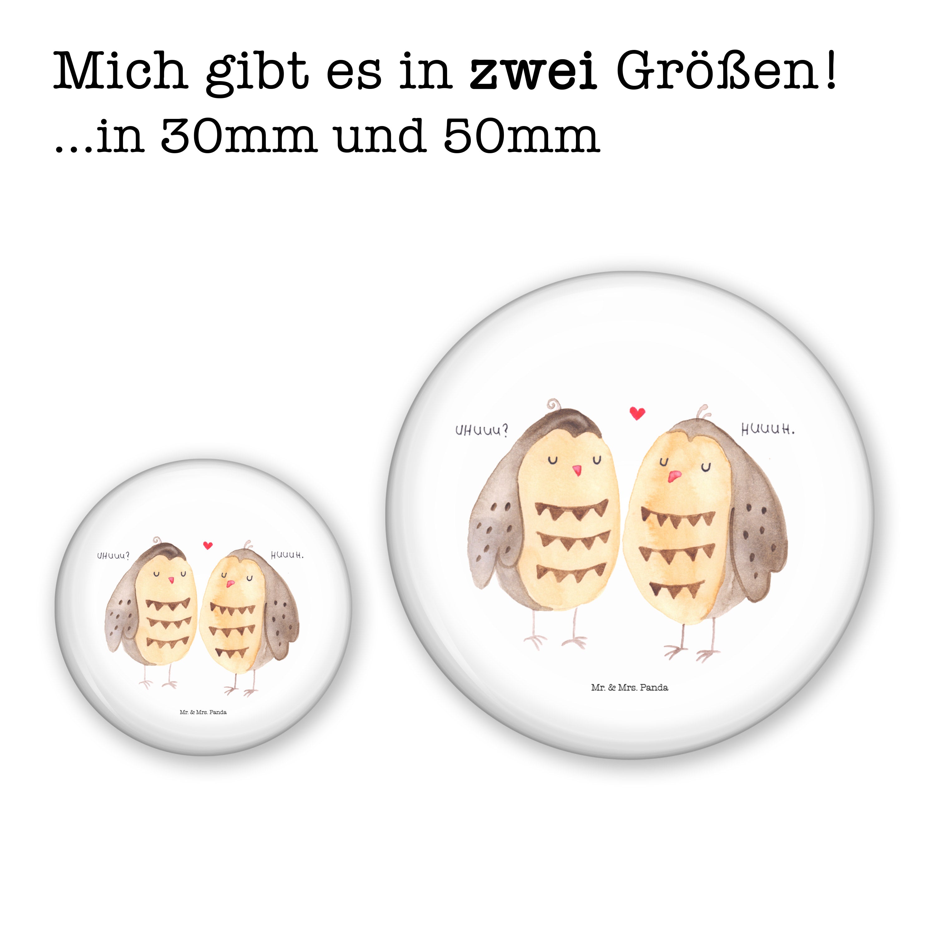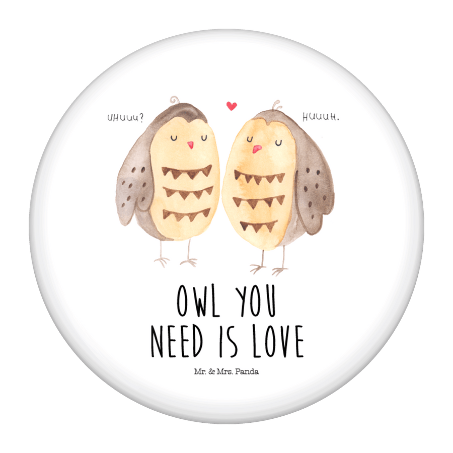 50mm Button Eule Liebe - mit Spruch - Weiß